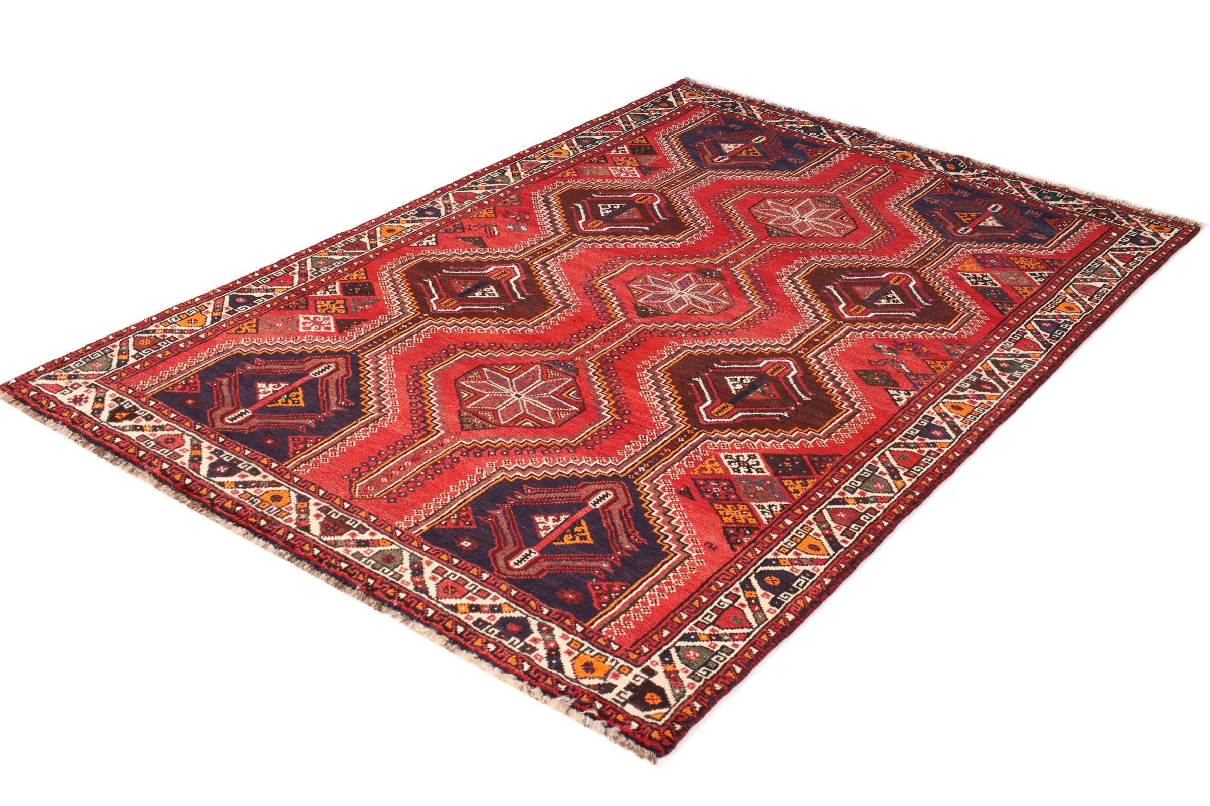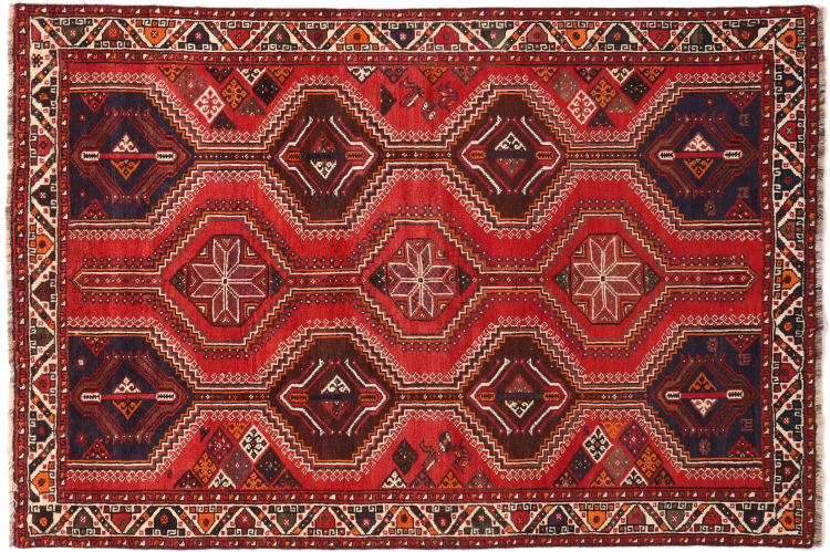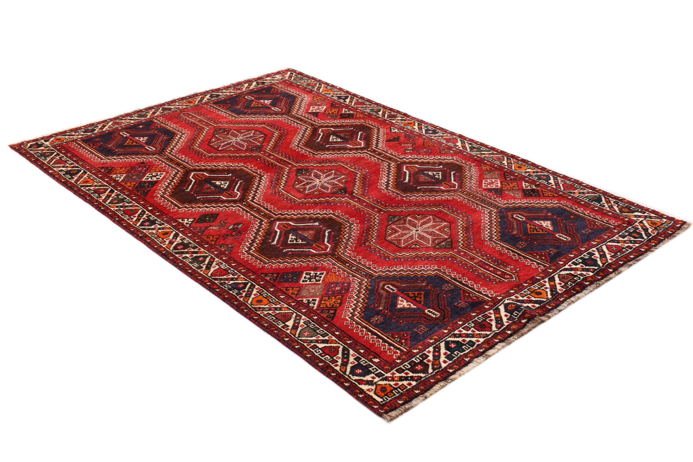 Dette Shiraz tæppe afspejler håndværk af nomader i Fars-provinsen. Bare dens enkle design, de smukke farver og den god kvalitet taler for ham, lige som dens lange liv. Dem som værdsætter persiske tæpper, vil elske en Shiraz.