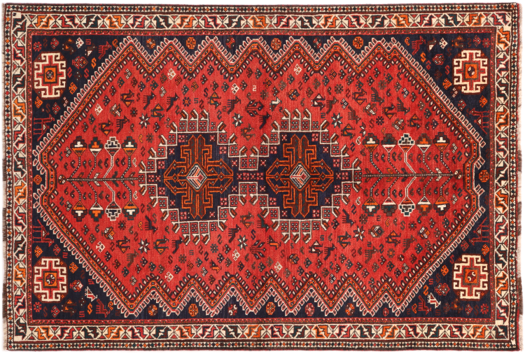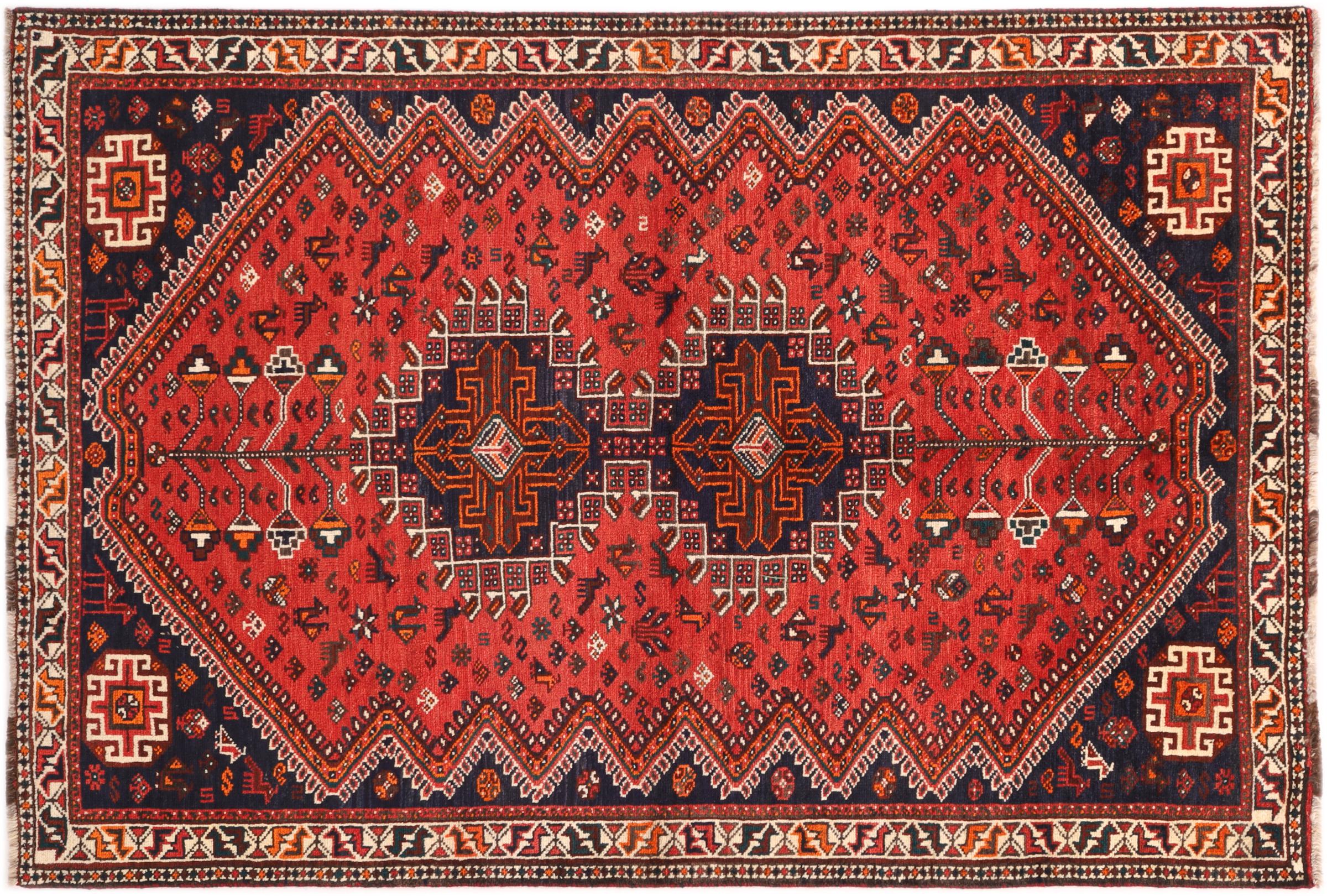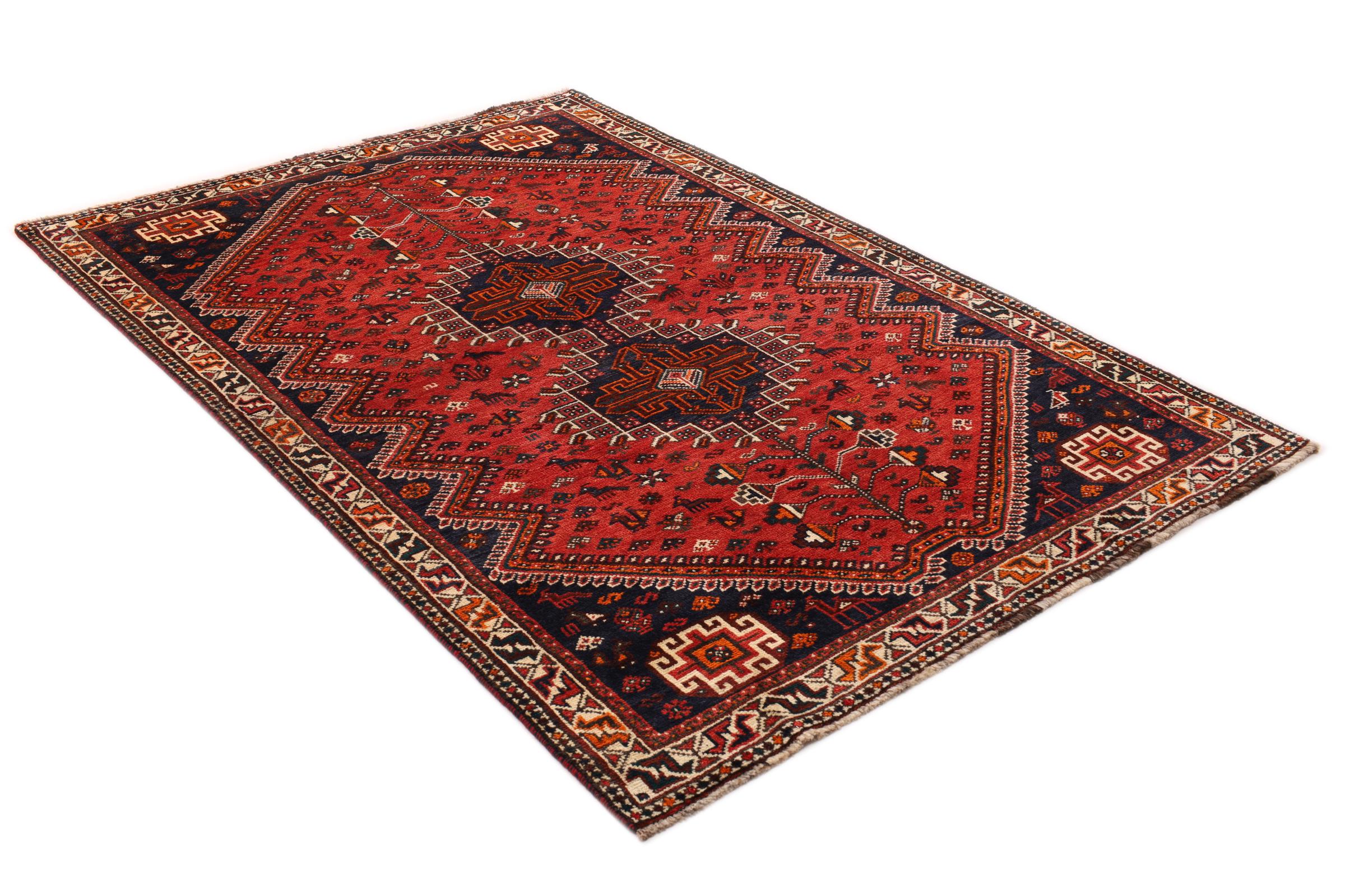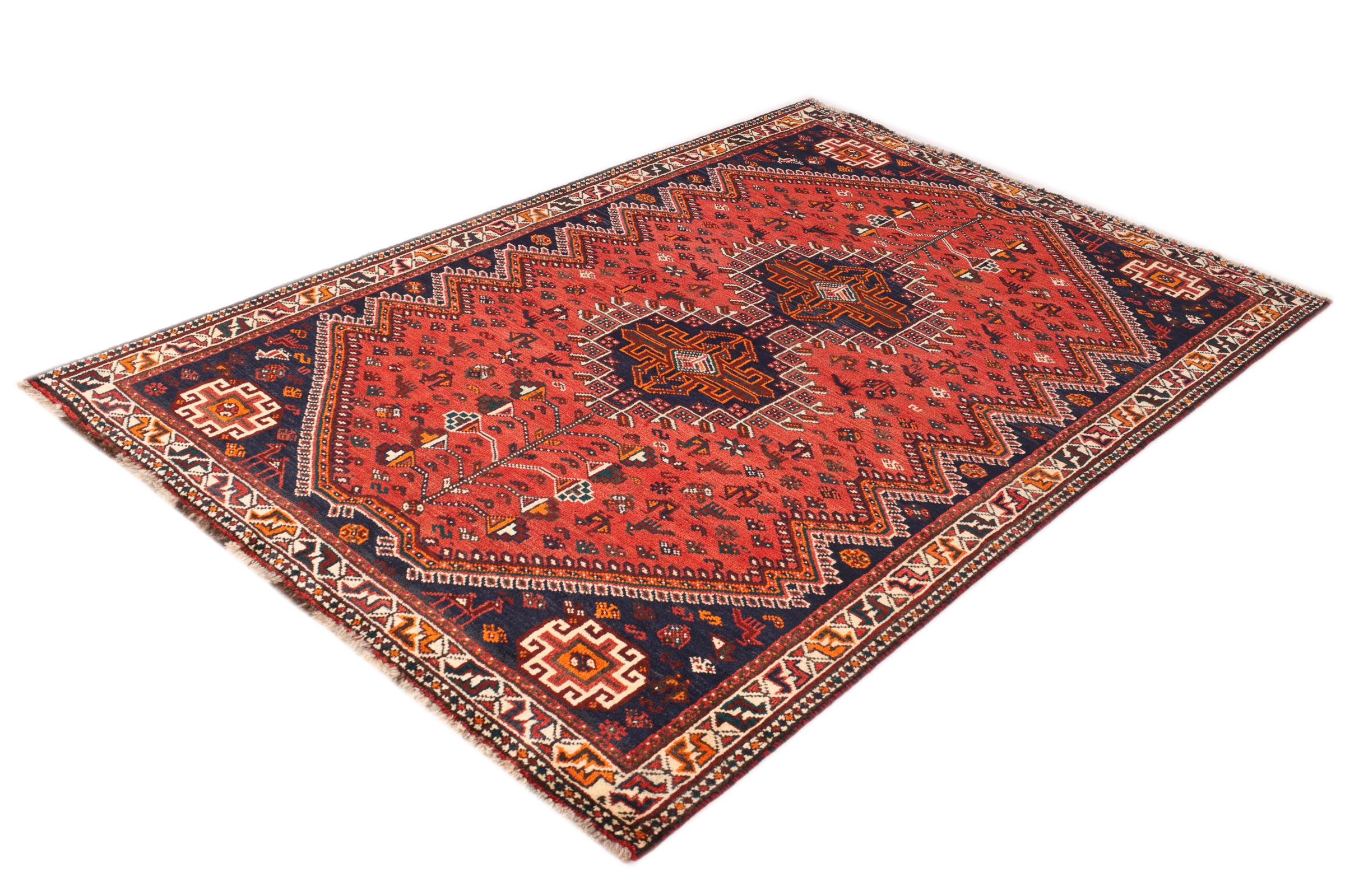 Dette Shiraz tæppe afspejler håndværk af nomader i Fars-provinsen. Bare dens enkle design, de smukke farver og den god kvalitet taler for ham, lige som dens lange liv. Dem som værdsætter persiske tæpper, vil elske en Shiraz.