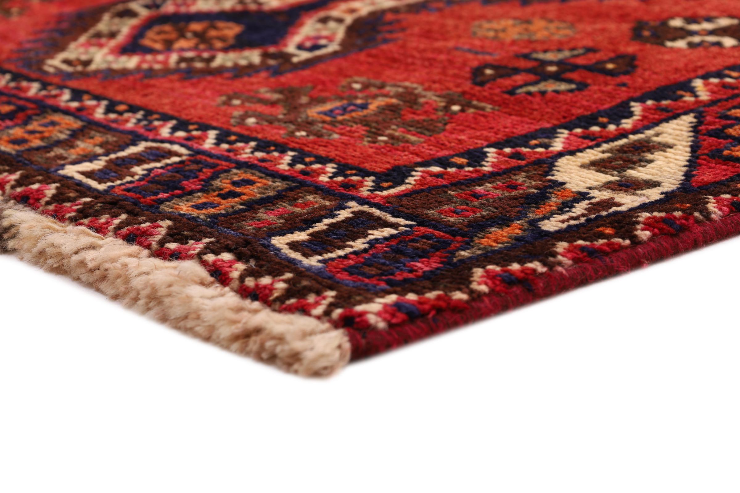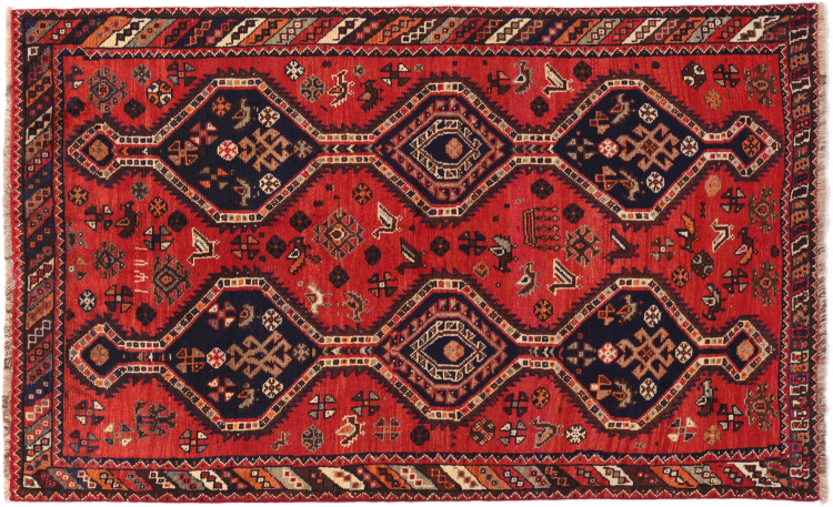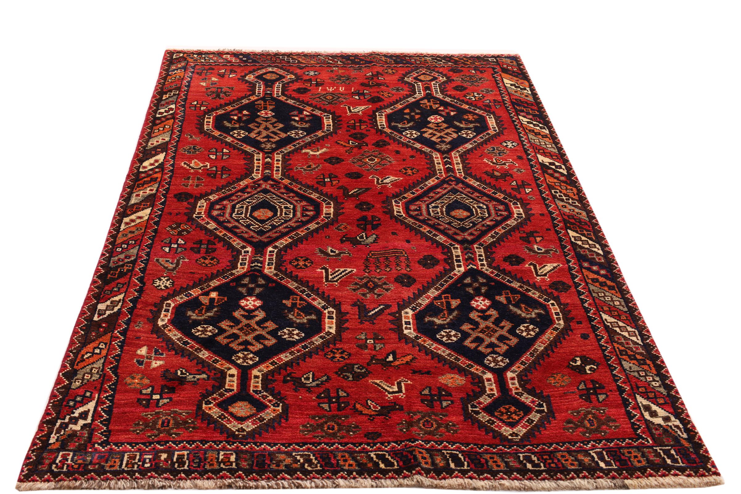 Dette Shiraz tæppe afspejler håndværk af nomader i Fars-provinsen. Bare dens enkle design, de smukke farver og den god kvalitet taler for ham, lige som dens lange liv. Dem som værdsætter persiske tæpper, vil elske en Shiraz.