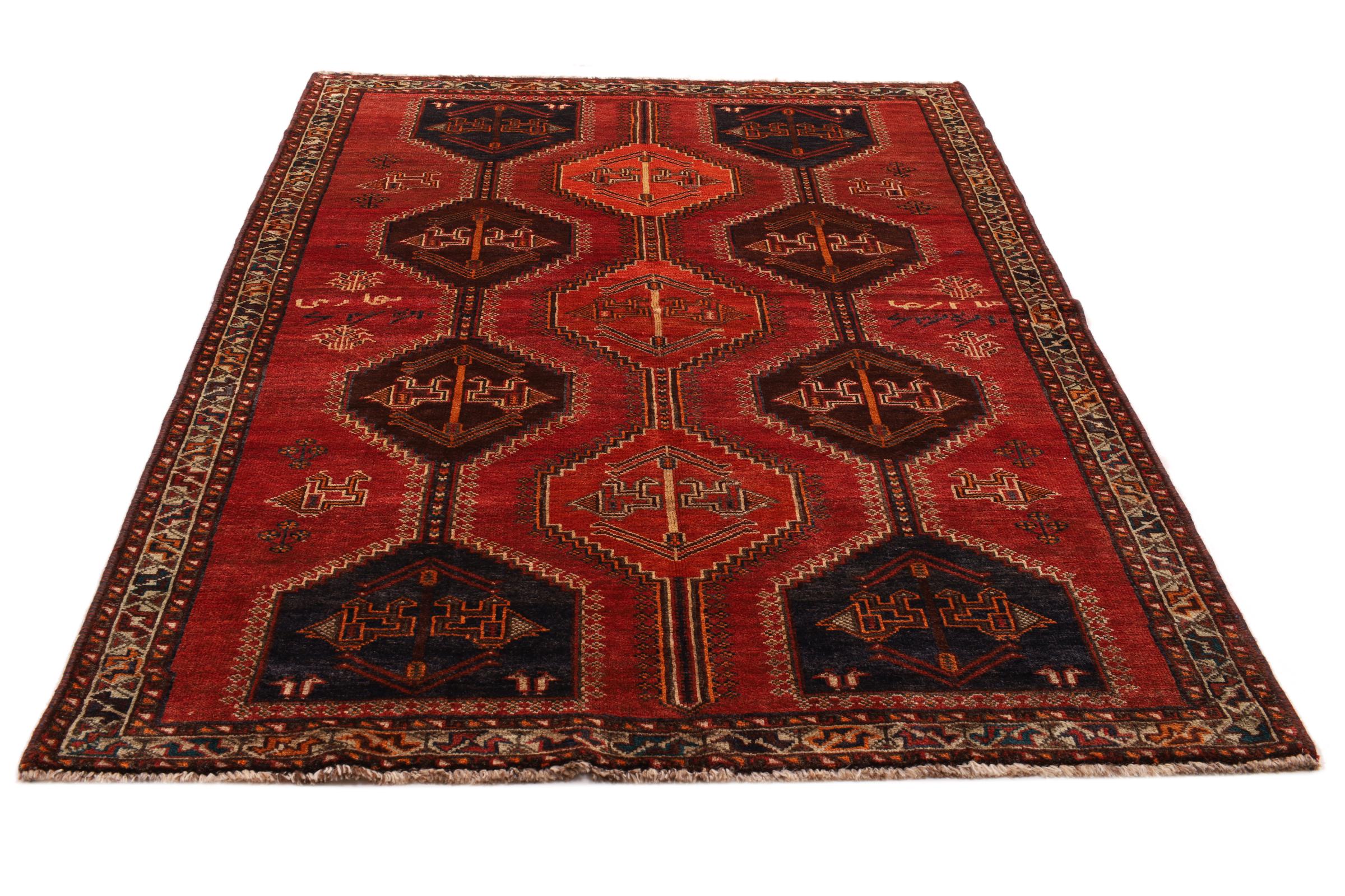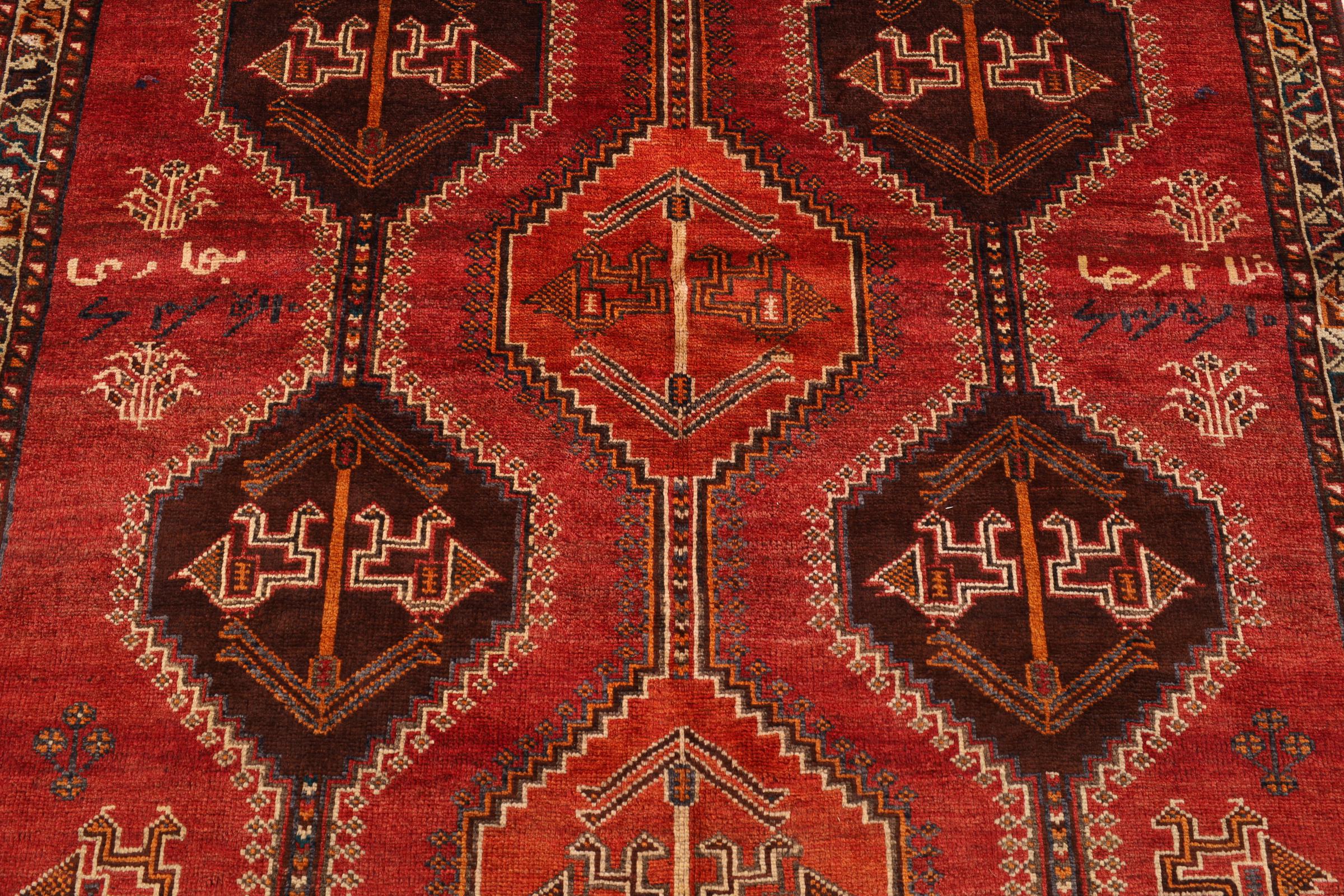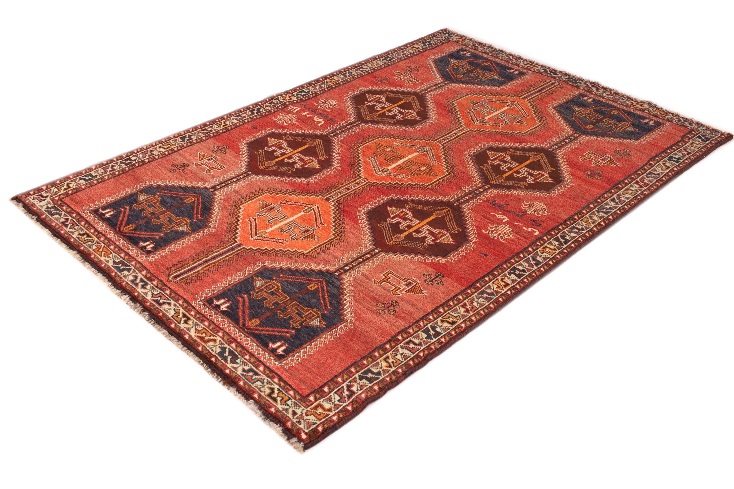 Dette Shiraz tæppe afspejler håndværk af nomader i Fars-provinsen. Bare dens enkle design, de smukke farver og den god kvalitet taler for ham, lige som dens lange liv. Dem som værdsætter persiske tæpper, vil elske en Shiraz.