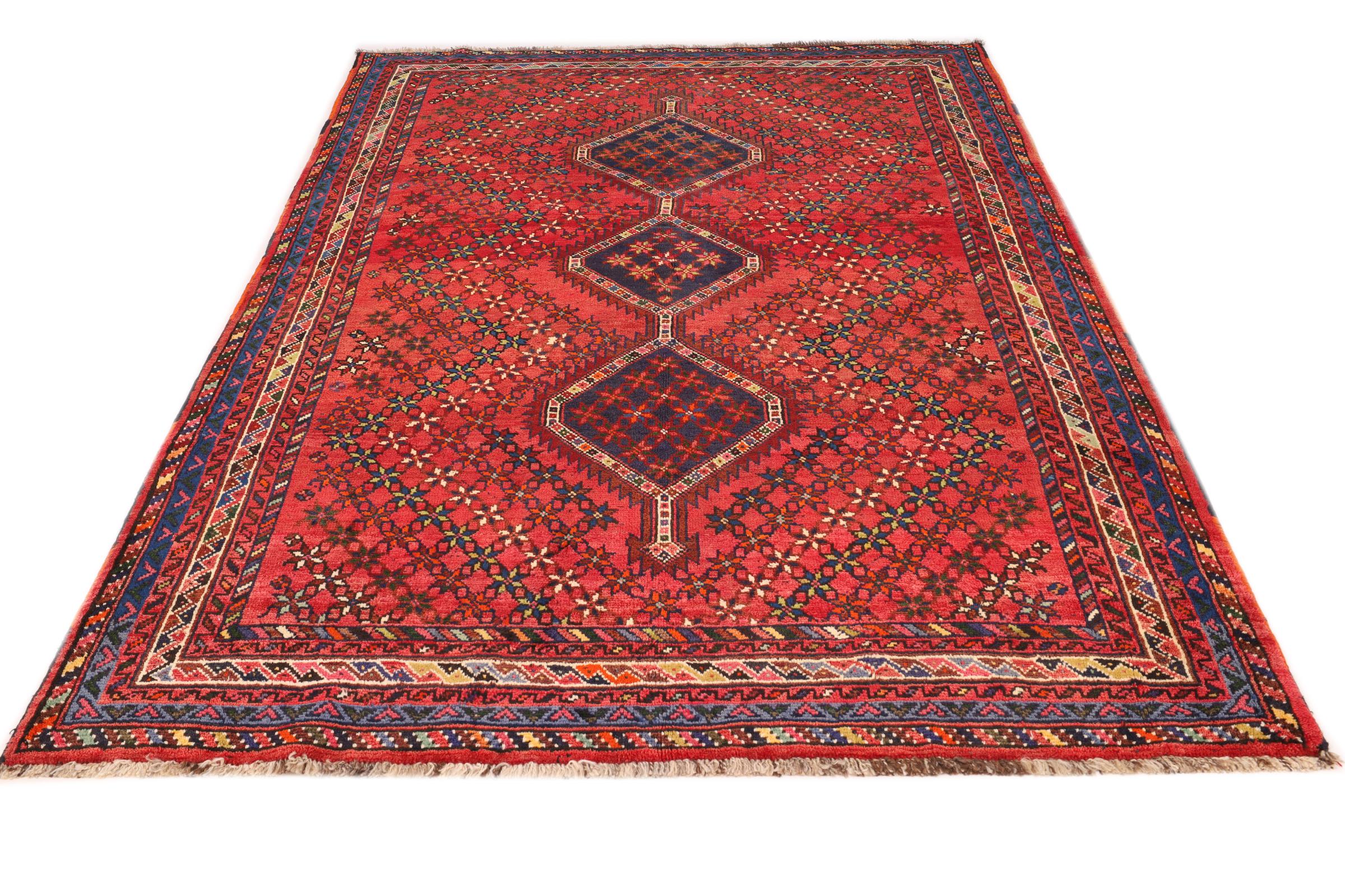 Dette Shiraz tæppe afspejler håndværk af nomader i Fars-provinsen. Bare dens enkle design, de smukke farver og den god kvalitet taler for ham, lige som dens lange liv. Dem som værdsætter persiske tæpper, vil elske en Shiraz.