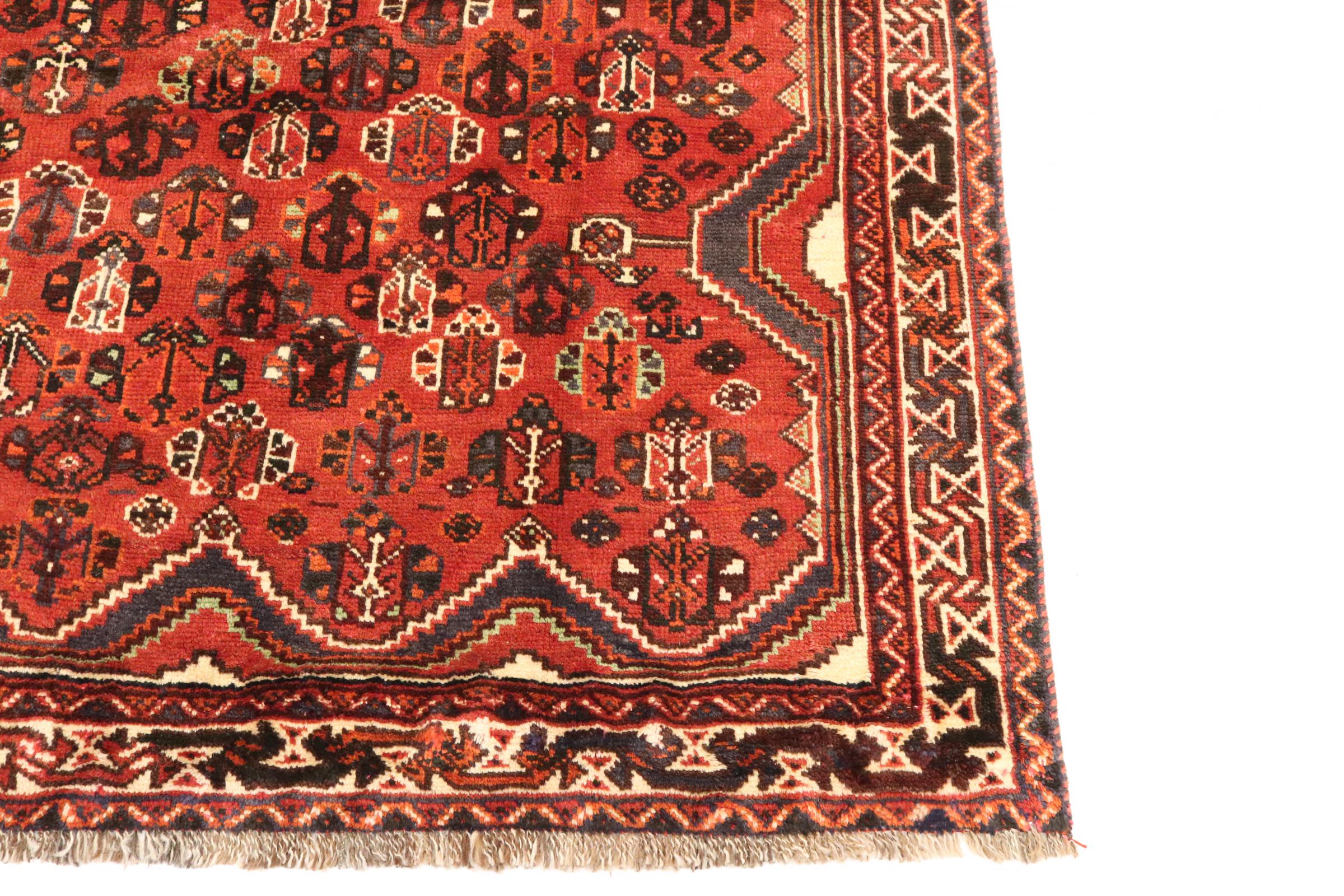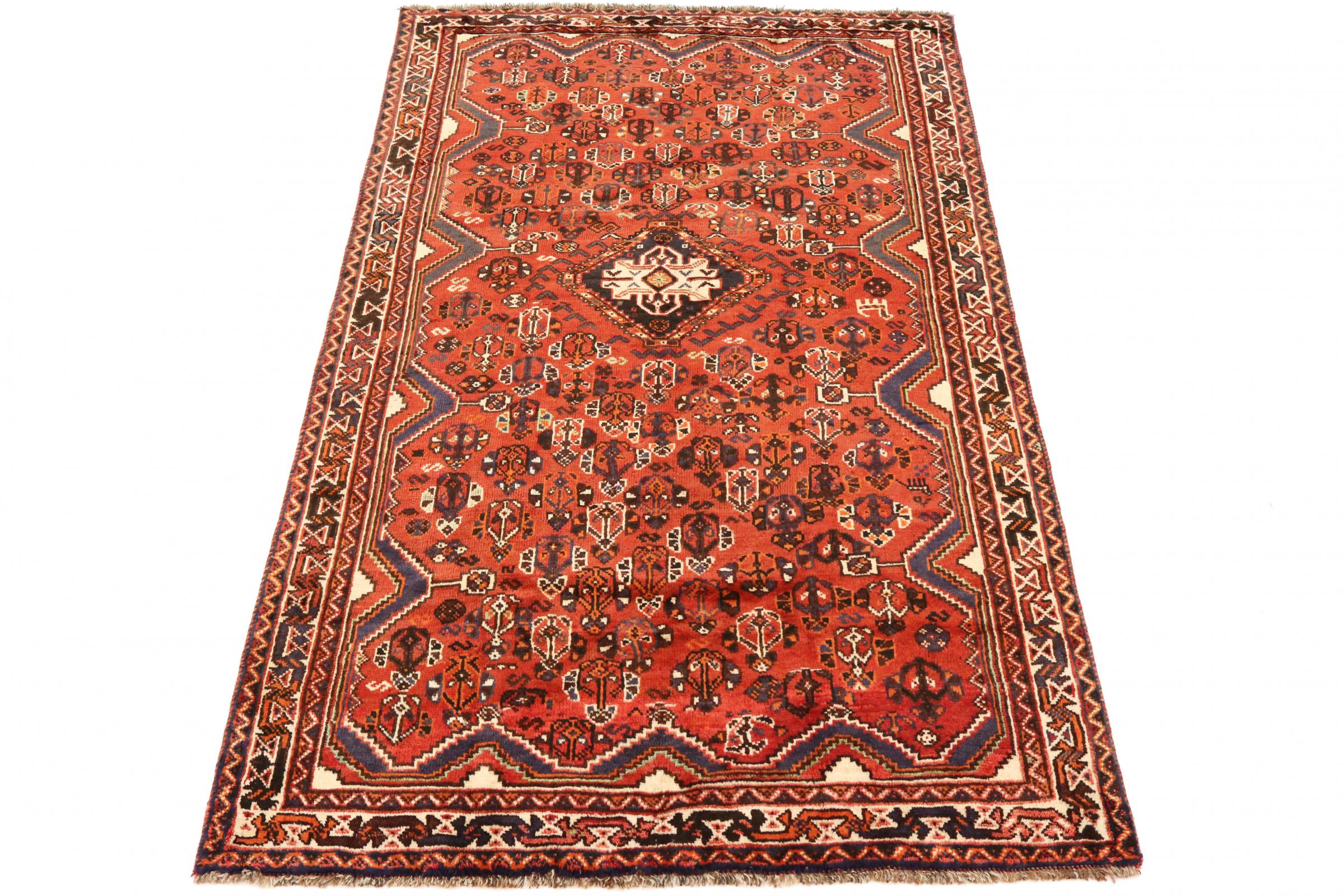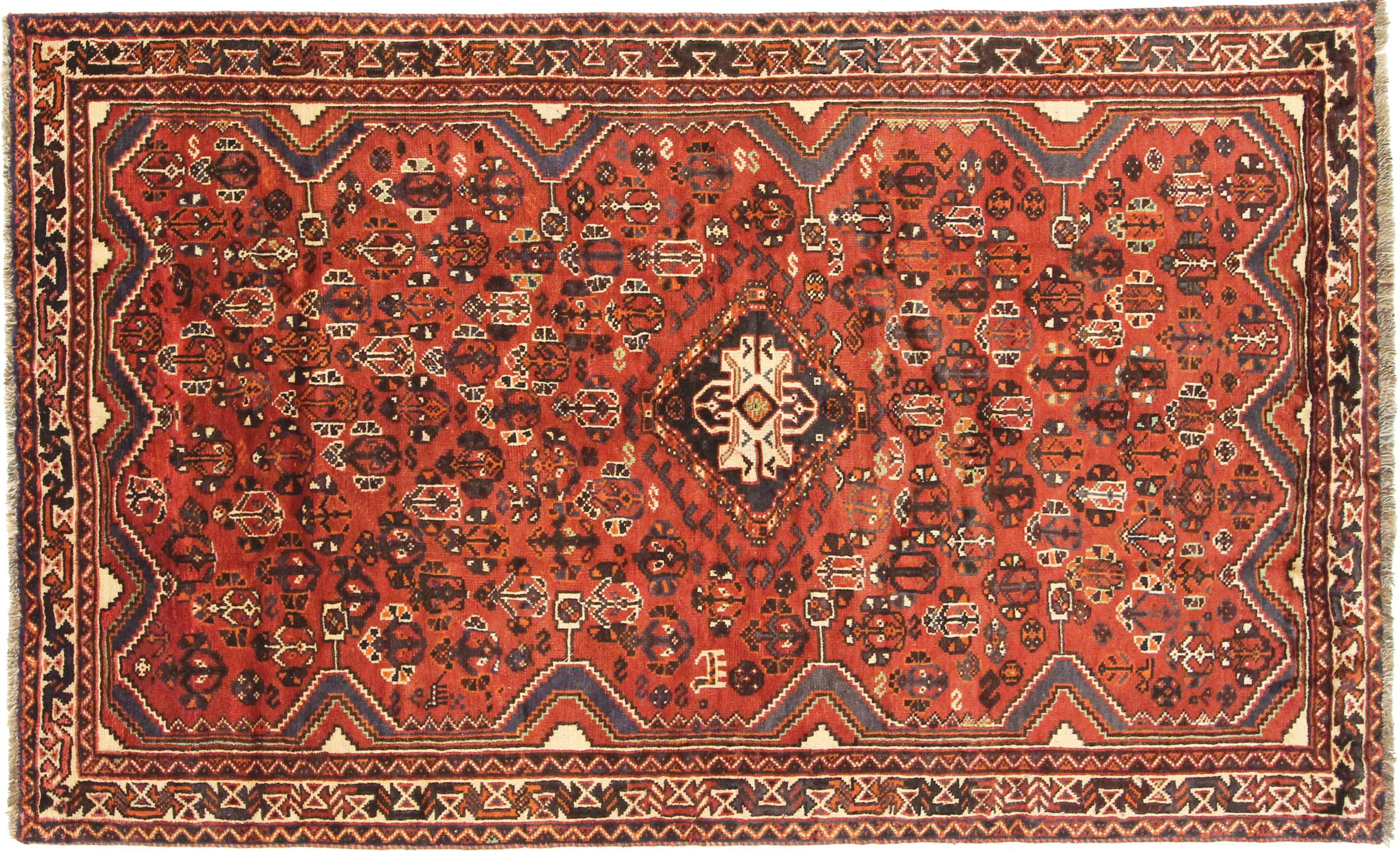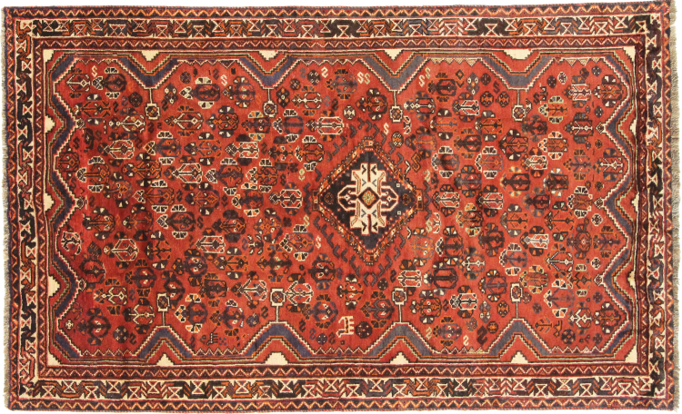 Dette Shiraz tæppe afspejler håndværk af nomader i Fars-provinsen. Bare dens enkle design, de smukke farver og den god kvalitet taler for ham, lige som dens lange liv. Dem som værdsætter persiske tæpper, vil elske en Shiraz.