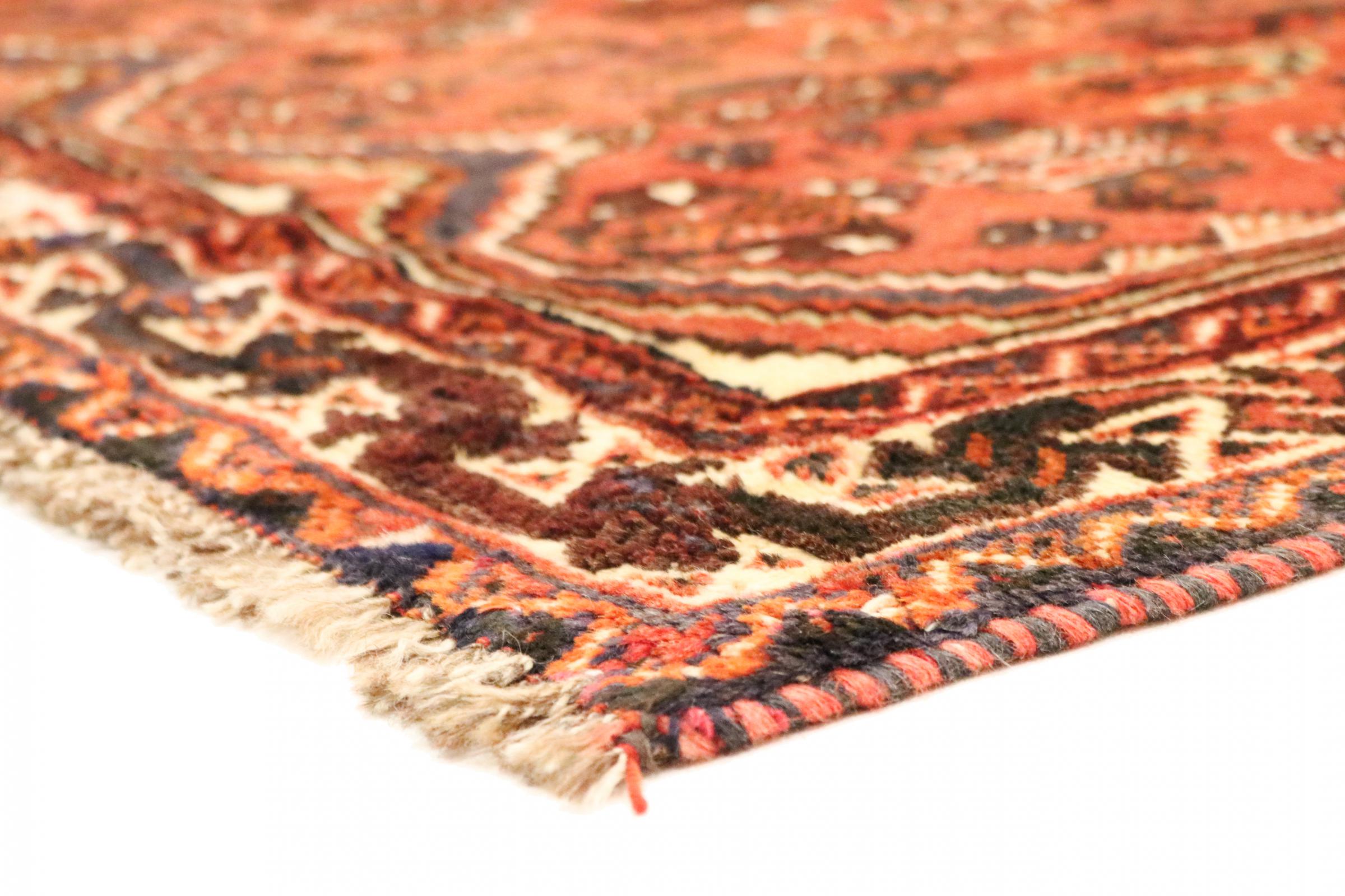 Dette tæppe hører til landsby- og nomadetæpper fra Iran, tidligere Persien. Denne type tæppe er håndknyttet i små byer og landsbyer i den gamle tradition. Nomader fremstiller også persiske tæpper under den åbne himmel. Tæpperne er knudt helt fra hovedet uden en skabelon. De er kendetegnet ved klassiske ornamenter, der er opstillet i lineære og geometriske mønstre. Takket være deres kulturelle og traditionelle oprindelse har disse tæpper en unik karakter, der udgør det gamle Persien.