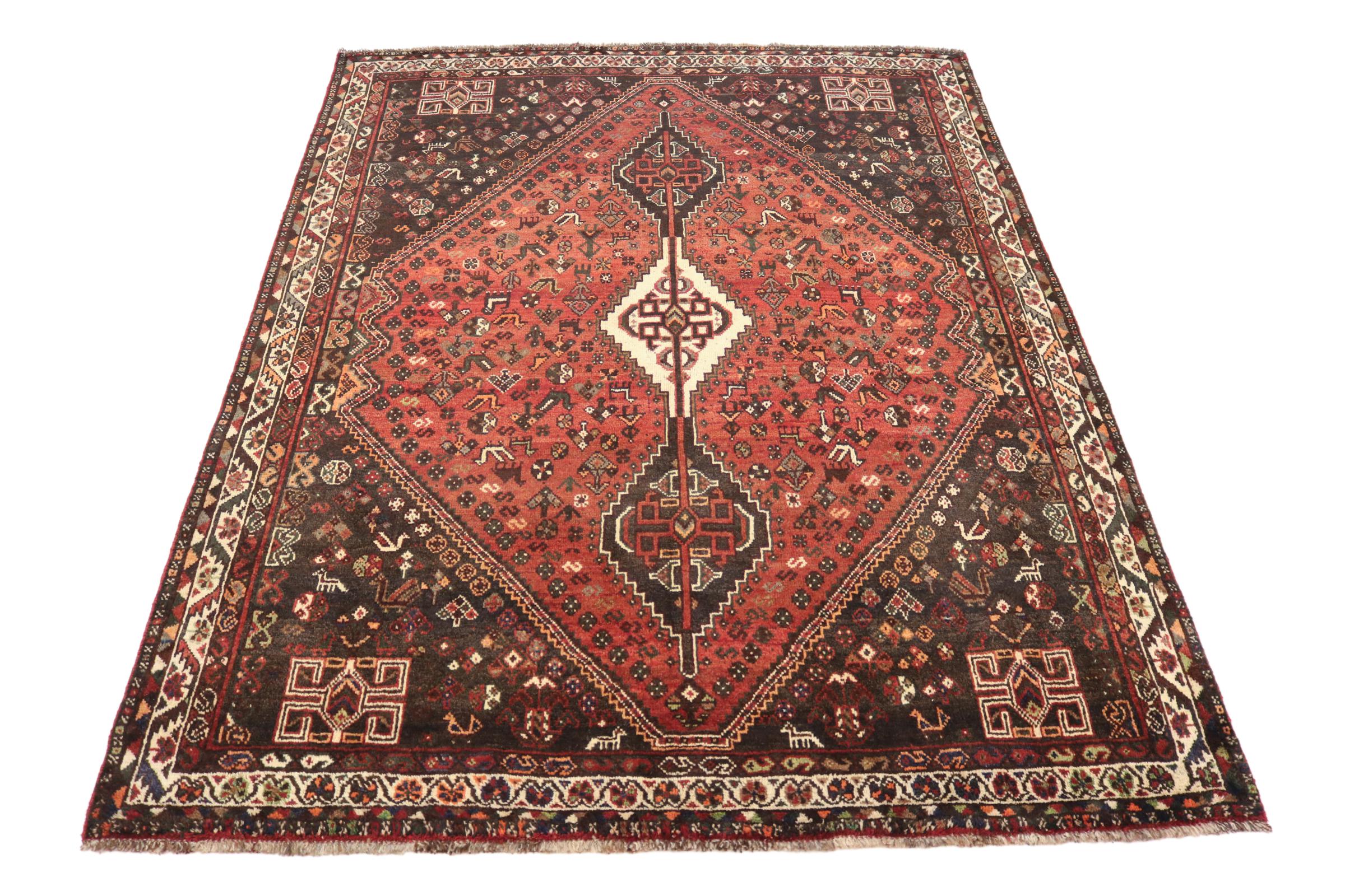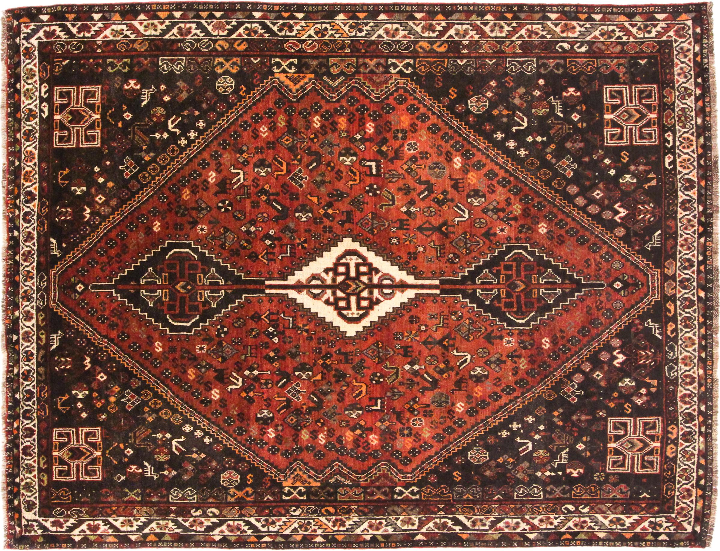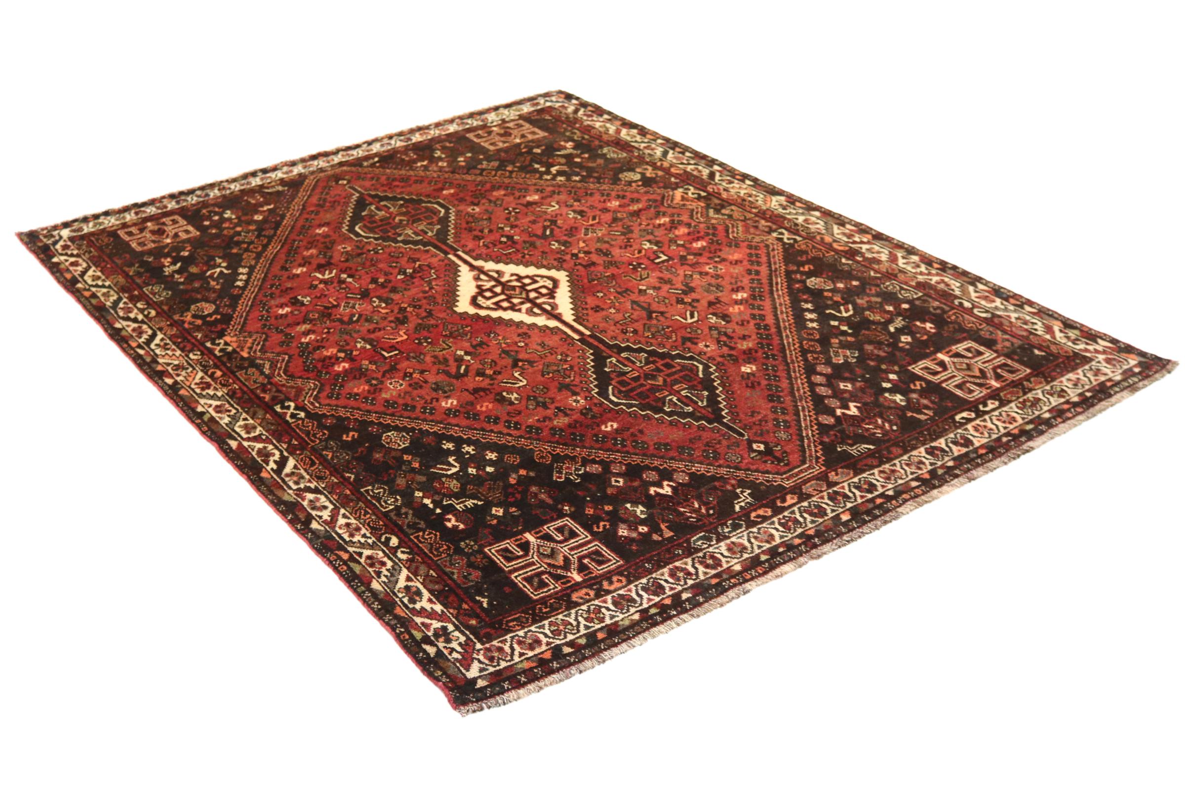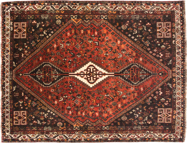 Dette Shiraz tæppe afspejler håndværk af nomader i Fars-provinsen. Bare dens enkle design, de smukke farver og den god kvalitet taler for ham, lige som dens lange liv. Dem som værdsætter persiske tæpper, vil elske en Shiraz.