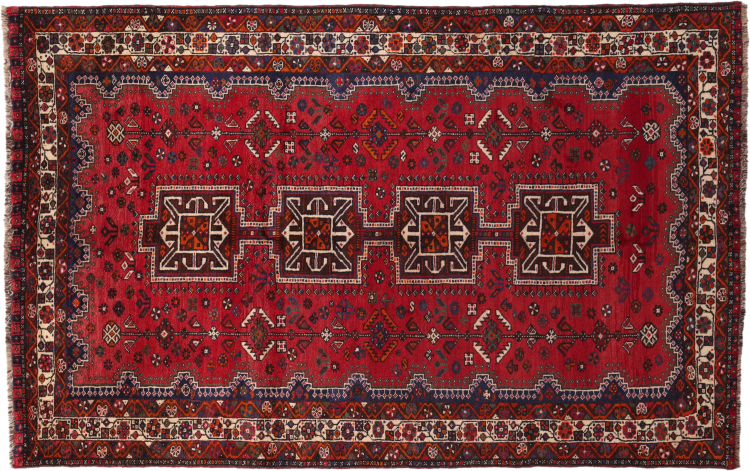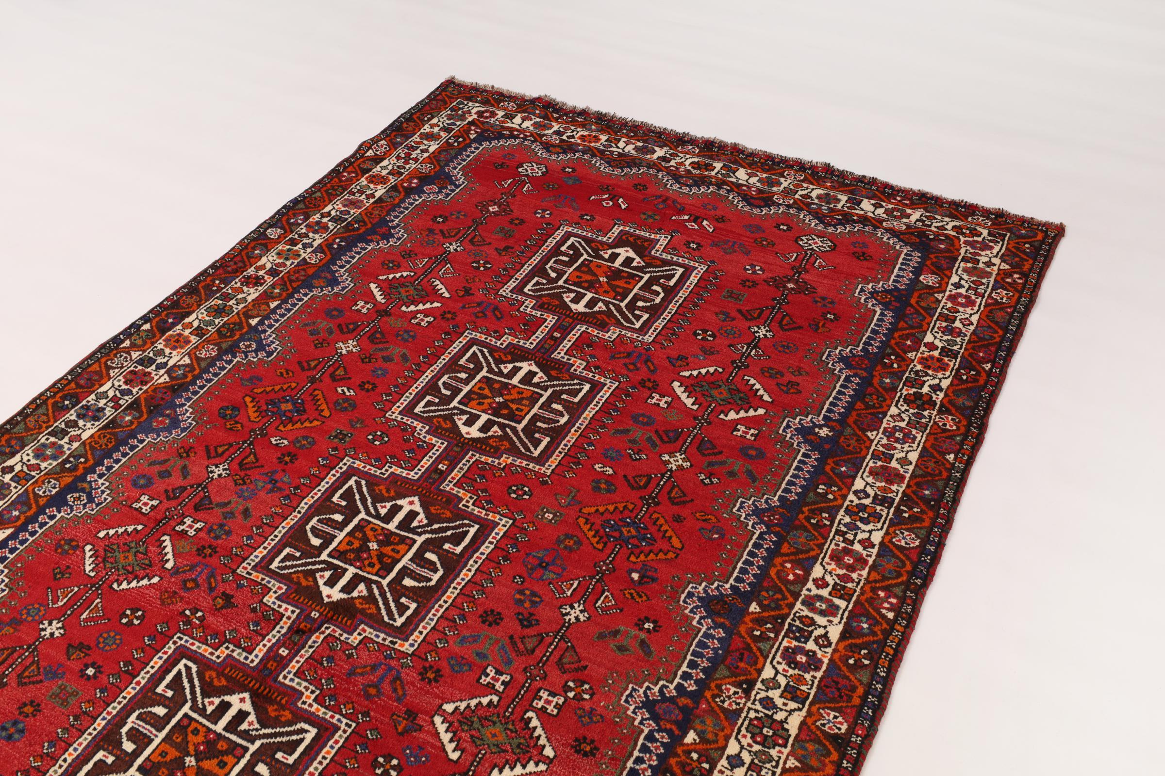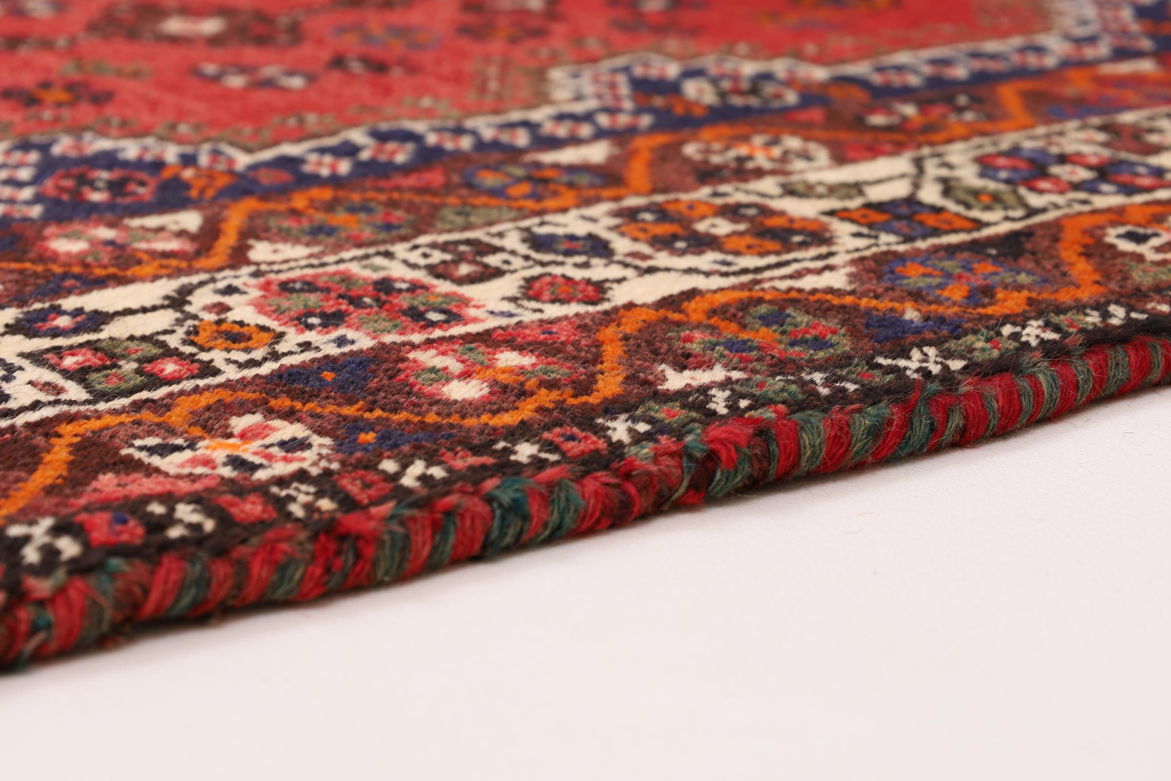 Dette Shiraz tæppe afspejler håndværk af nomader i Fars-provinsen. Bare dens enkle design, de smukke farver og den god kvalitet taler for ham, lige som dens lange liv. Dem som værdsætter persiske tæpper, vil elske en Shiraz.