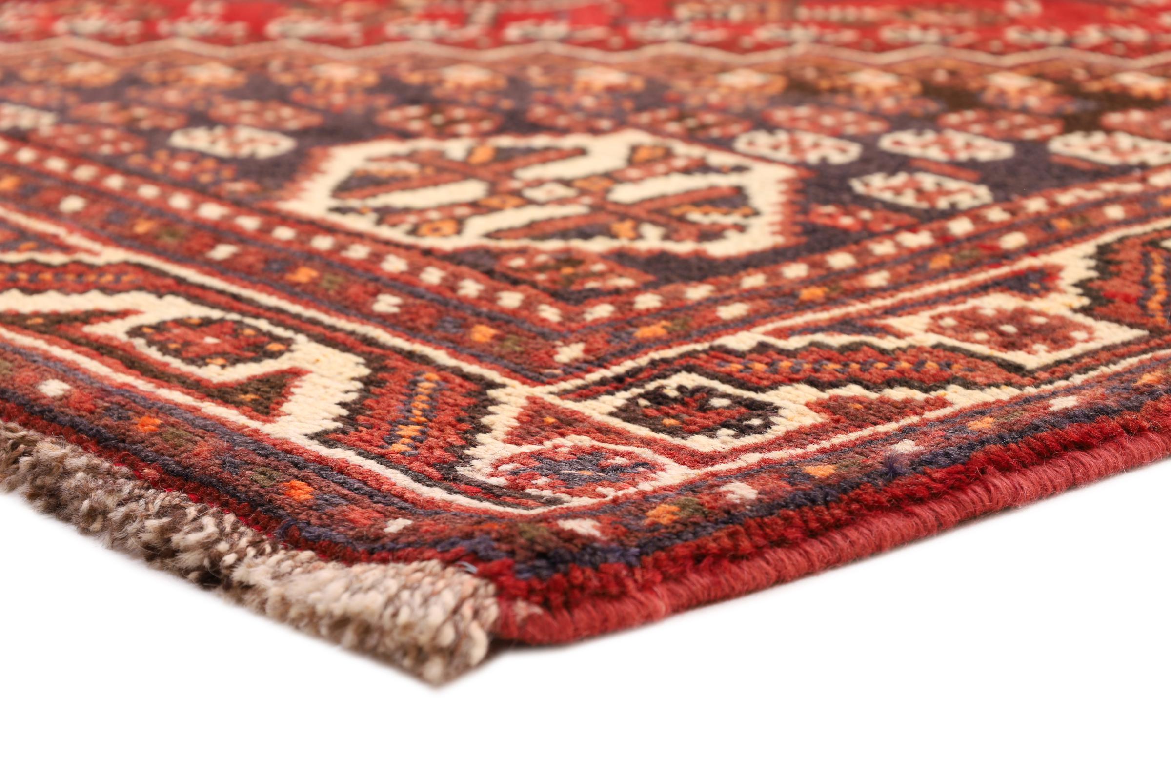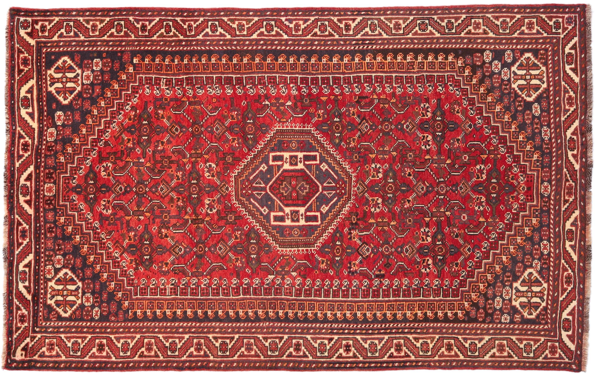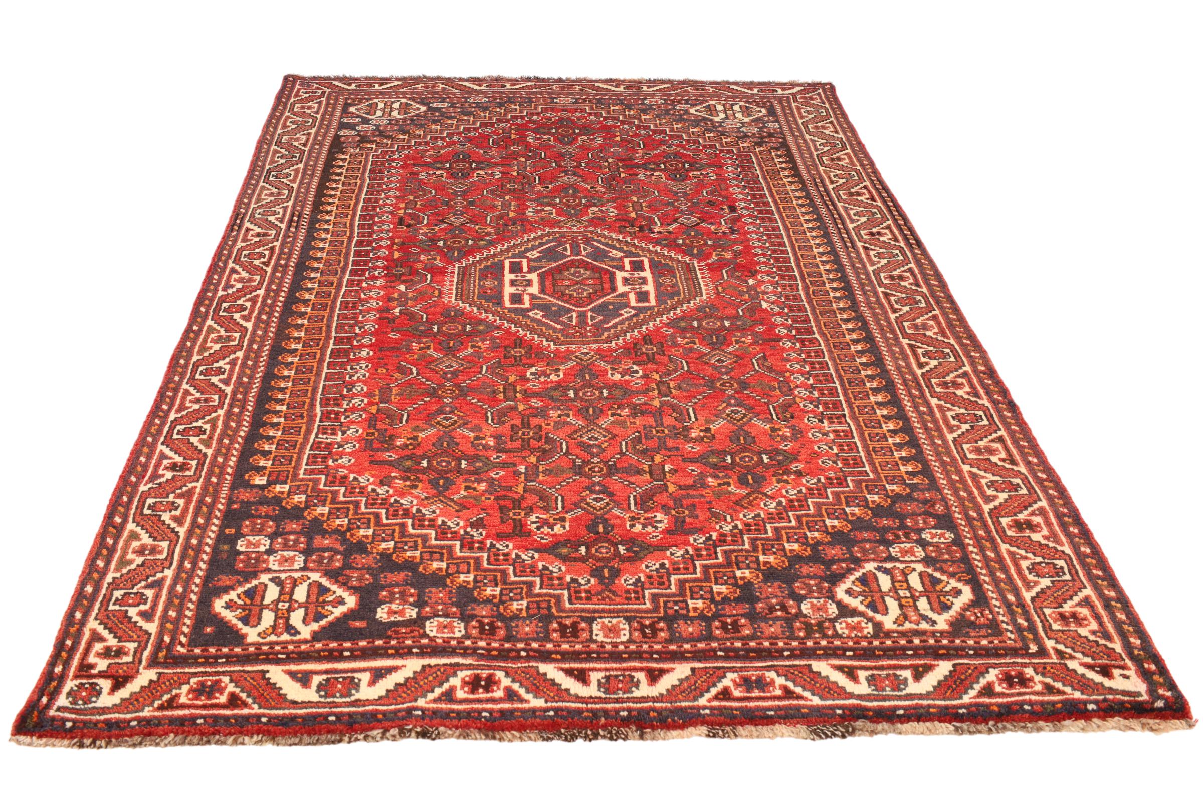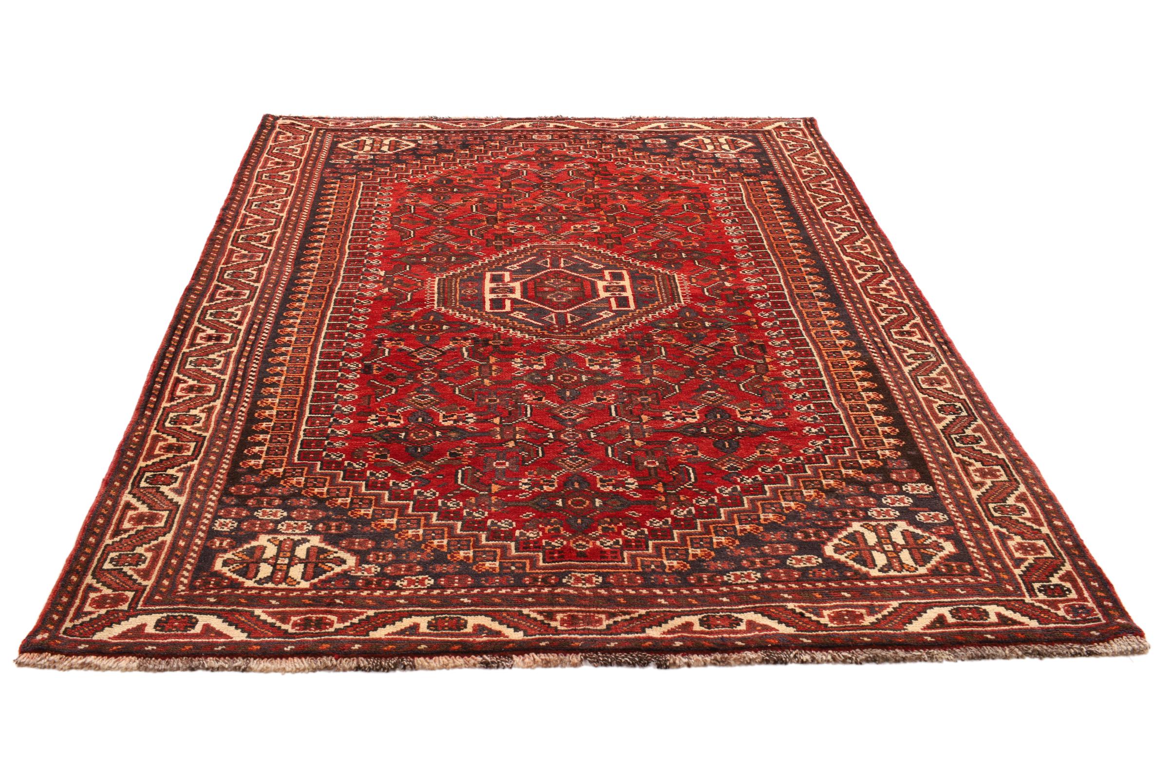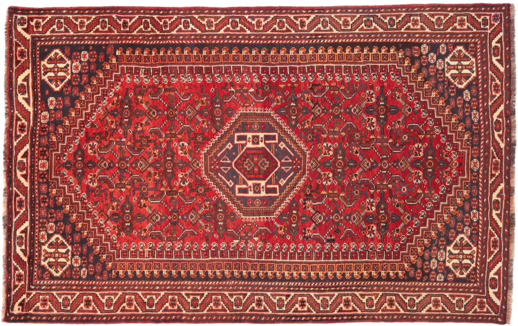 Dette Shiraz tæppe afspejler håndværk af nomader i Fars-provinsen. Bare dens enkle design, de smukke farver og den god kvalitet taler for ham, lige som dens lange liv. Dem som værdsætter persiske tæpper, vil elske en Shiraz.