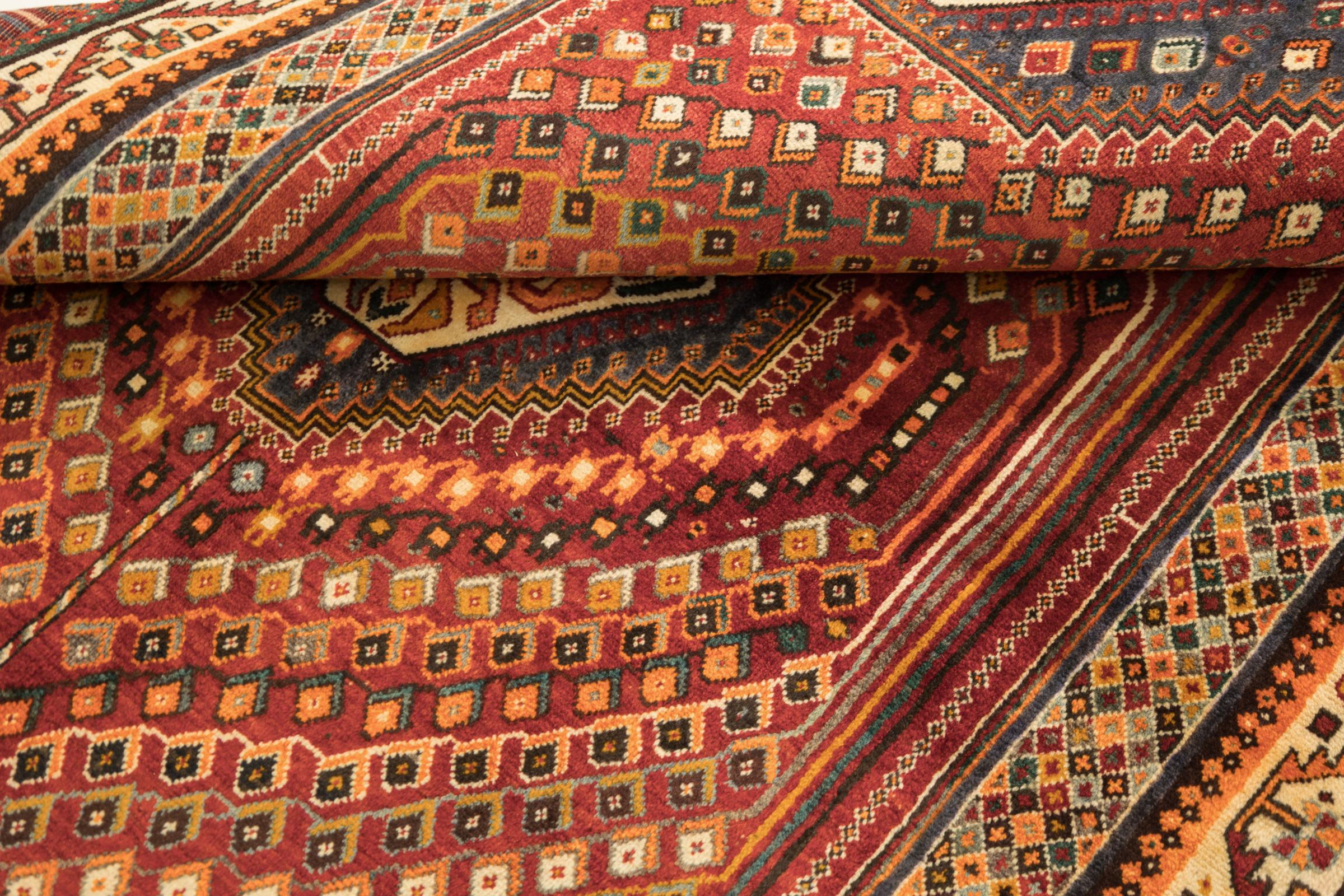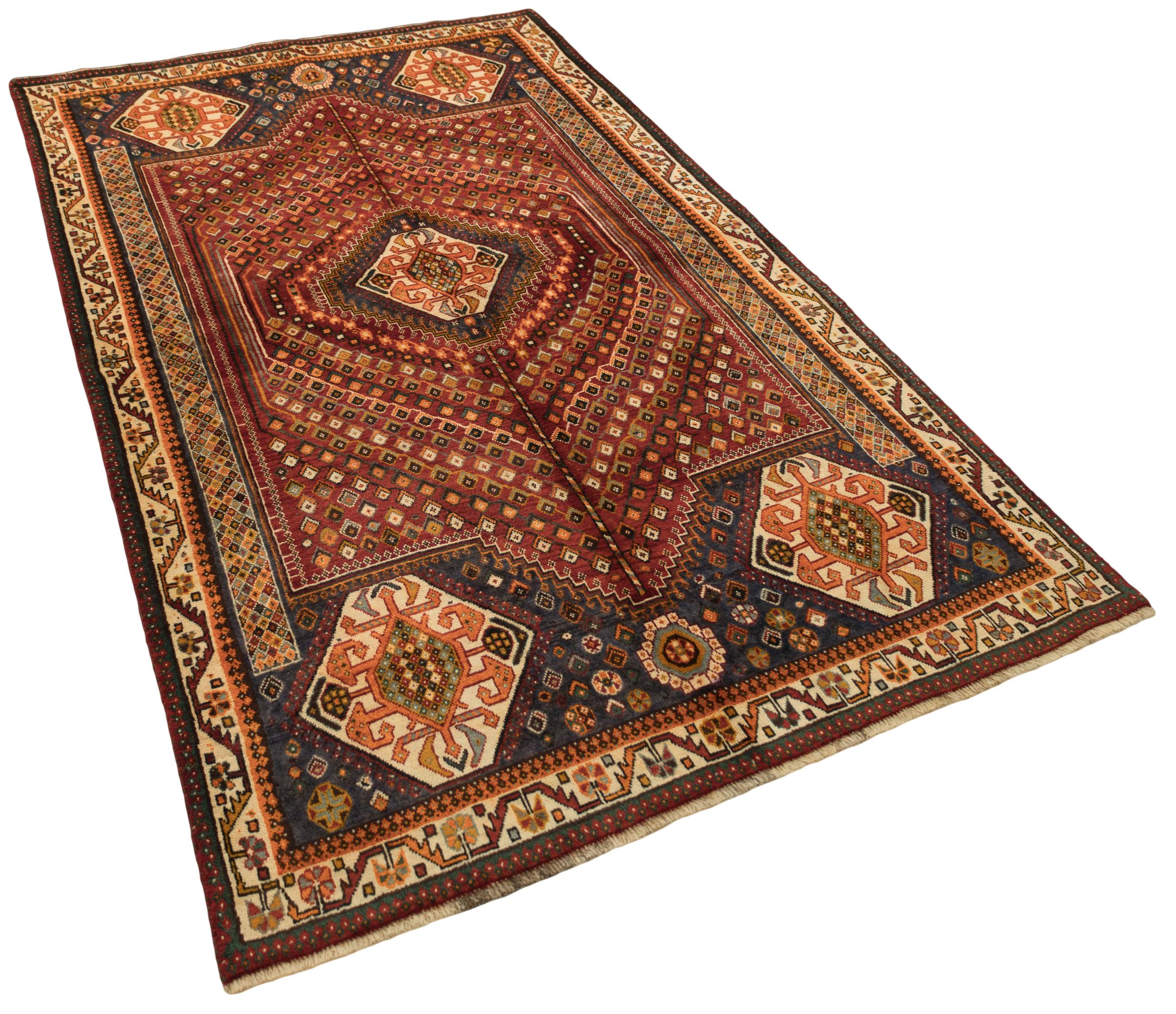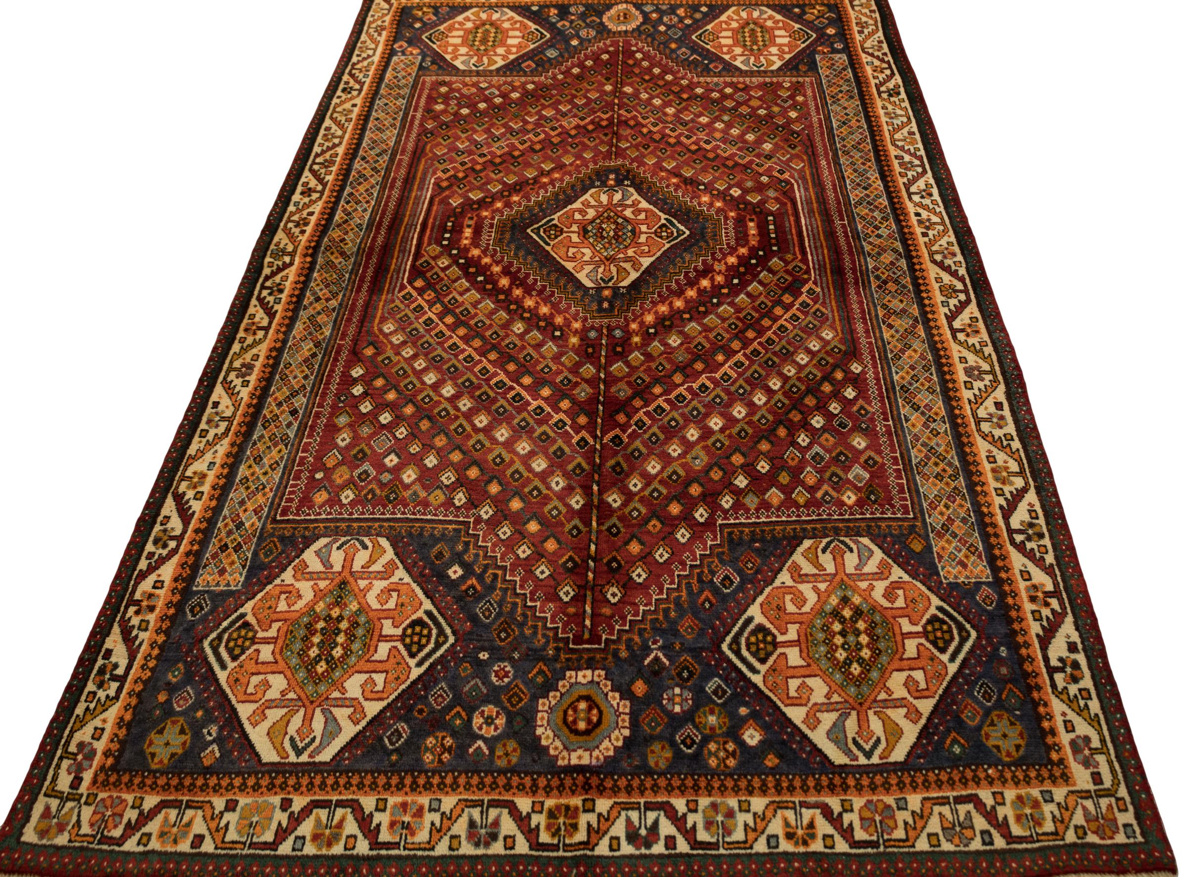 Dette Shiraz tæppe afspejler håndværk af nomader i Fars-provinsen. Bare dens enkle design, de smukke farver og den god kvalitet taler for ham, lige som dens lange liv. Dem som værdsætter persiske tæpper, vil elske en Shiraz.