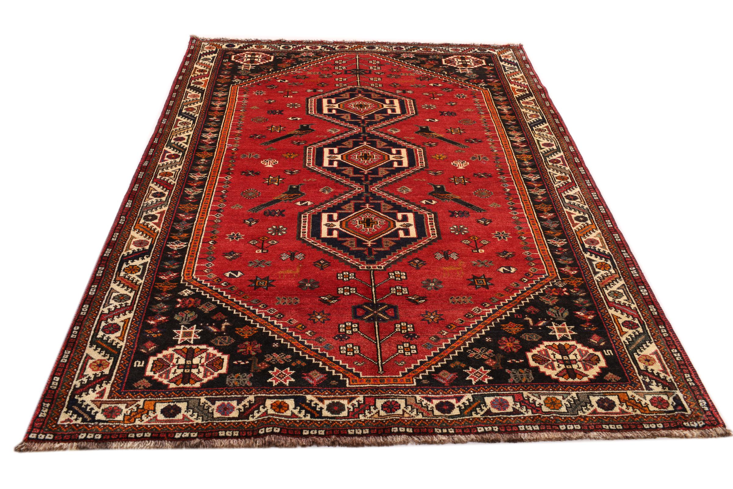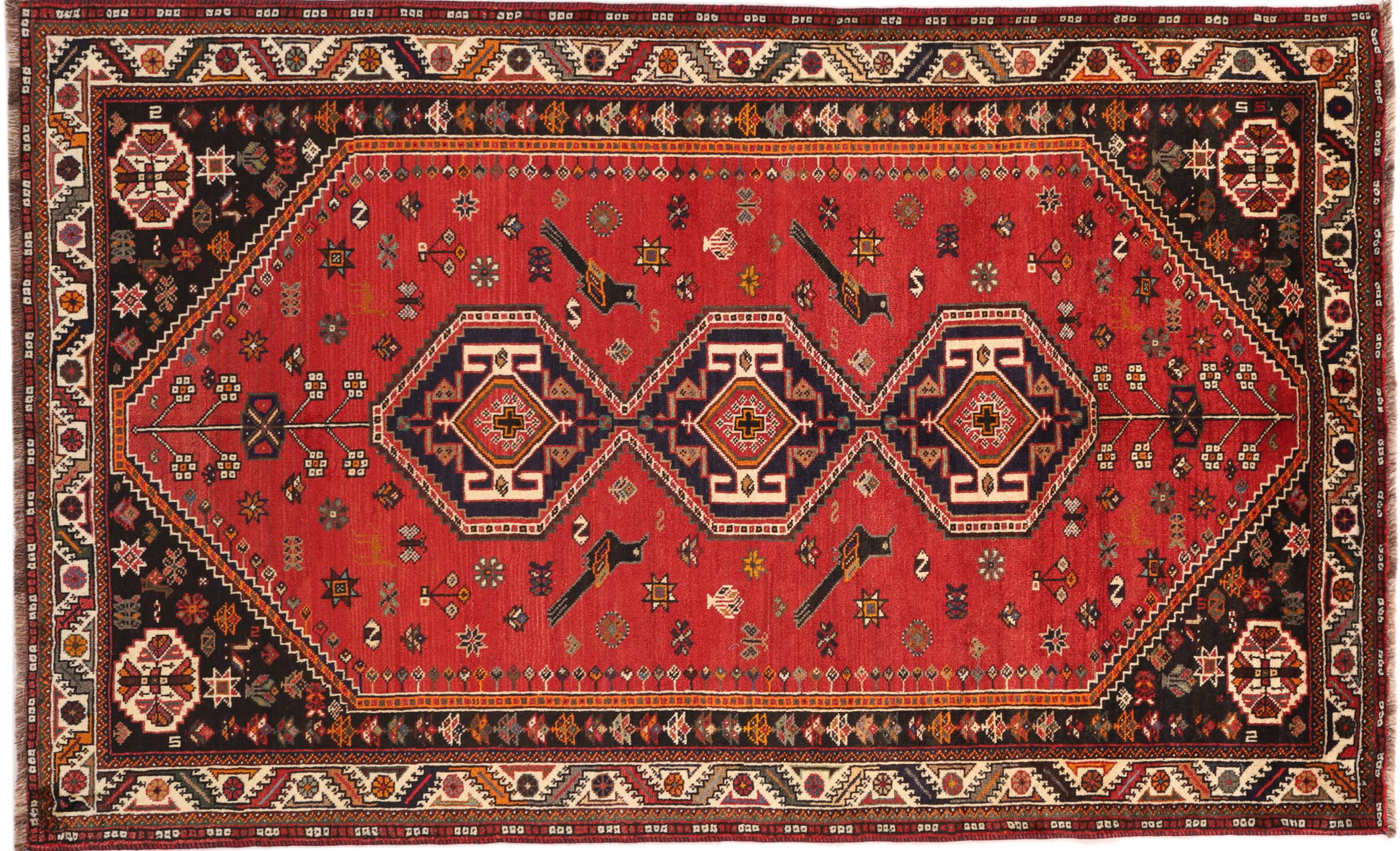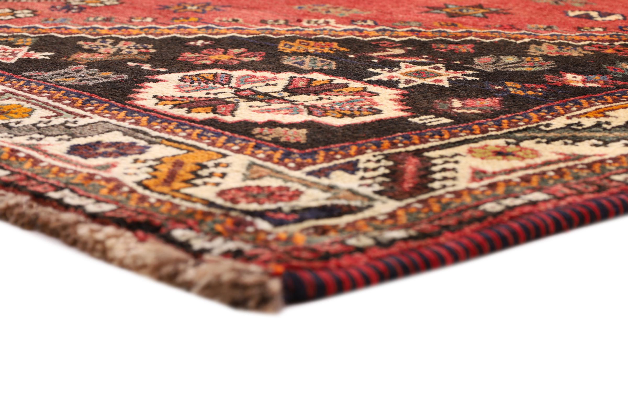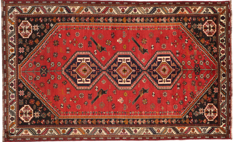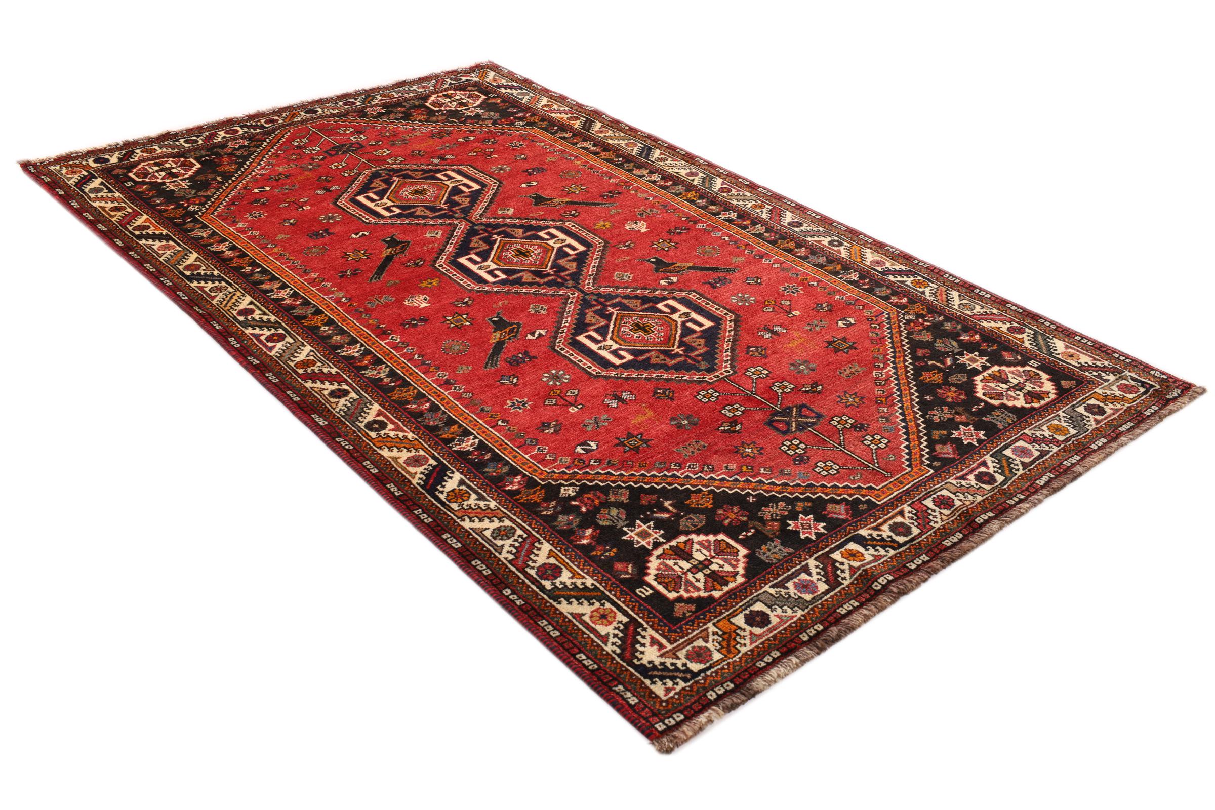 Dette Shiraz tæppe afspejler håndværk af nomader i Fars-provinsen. Bare dens enkle design, de smukke farver og den god kvalitet taler for ham, lige som dens lange liv. Dem som værdsætter persiske tæpper, vil elske en Shiraz.