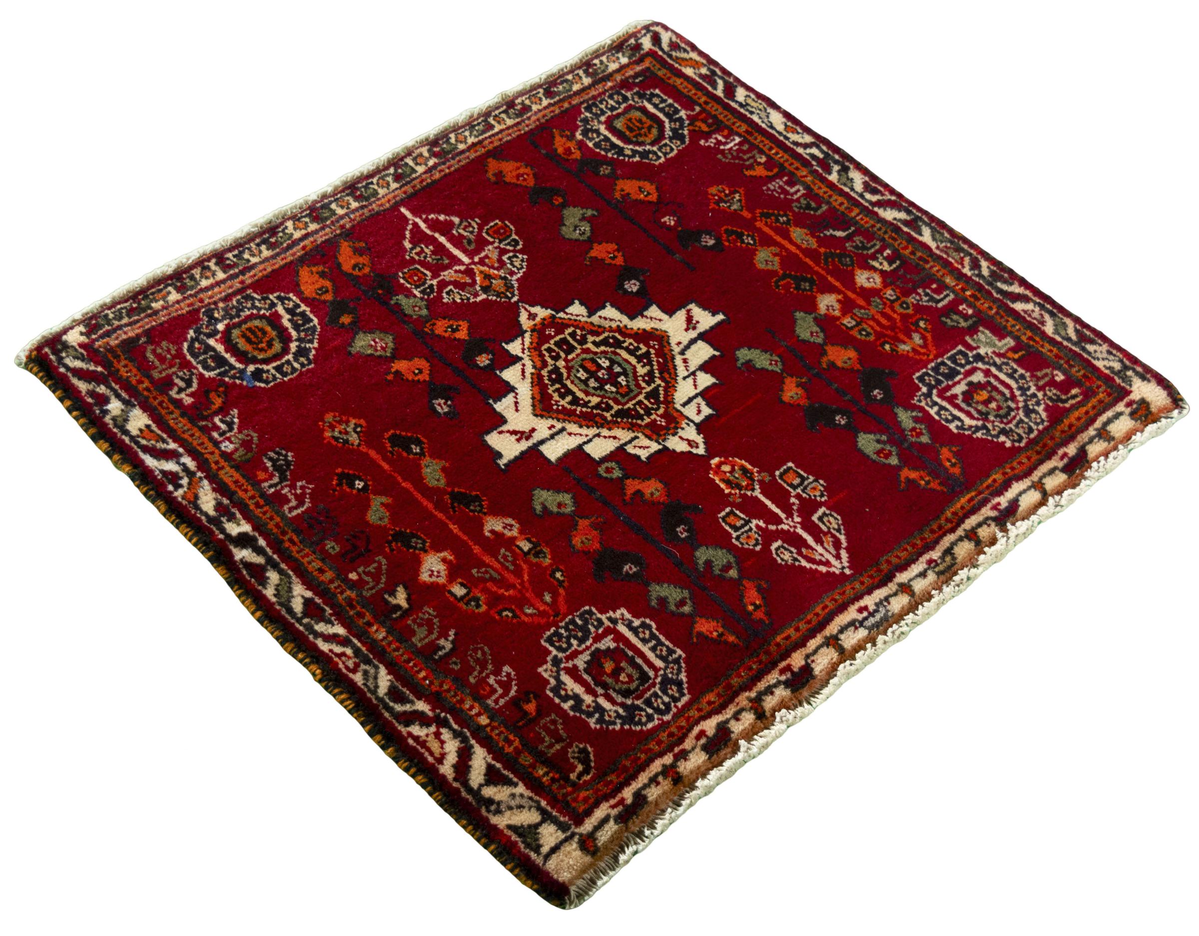 Tæppe-nr.: 285572003670014 Størrelse: 54x63 cm Tykkelse: ca. 10 mm Knuder: 96 000 - 120 000 / m² Forarbejdelse: Knyttet i hånden Luv: Håndspunden uld Kæde: Bomuld Oprindelse: Persien / Iran Alder: Ny Vægt: ca. 1 kg Antal på lager: Unik - Kun 1 tilbage på lager