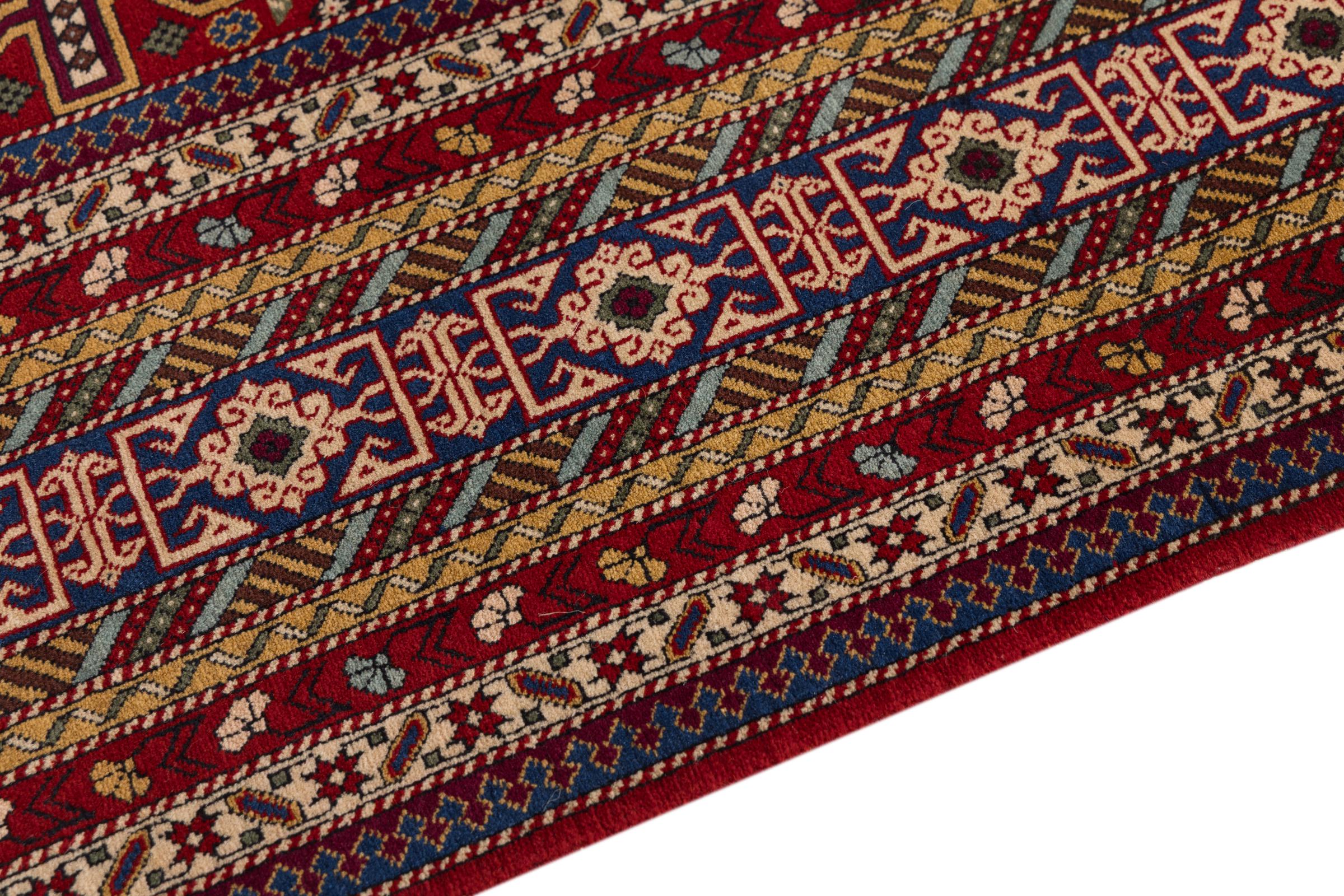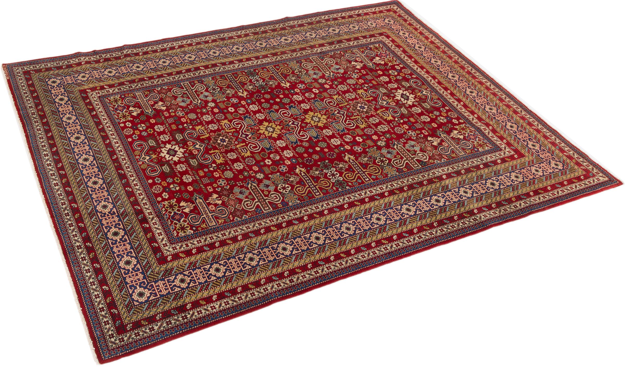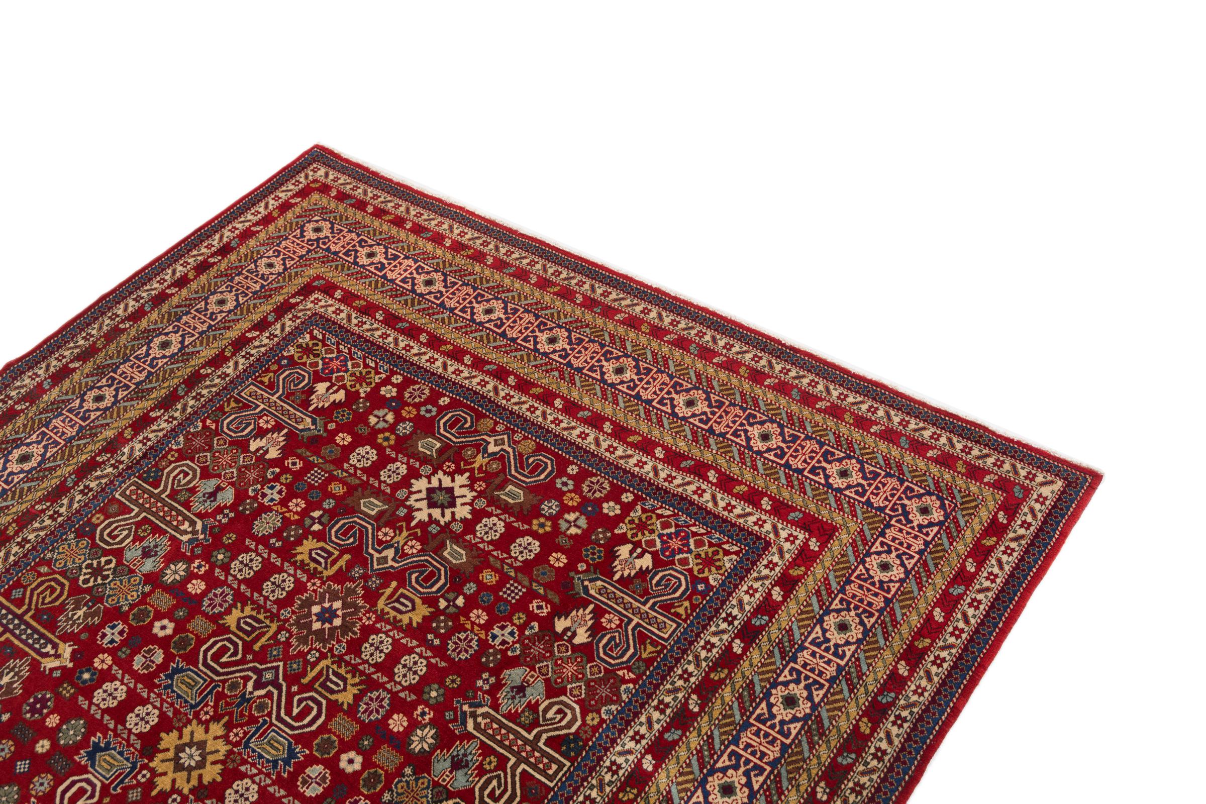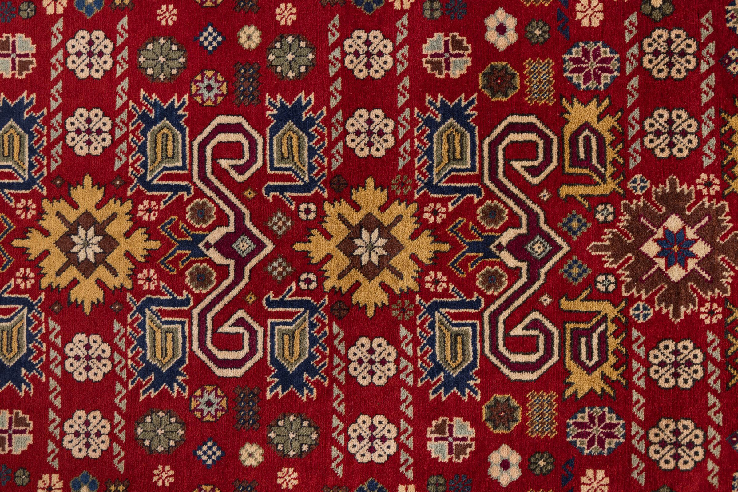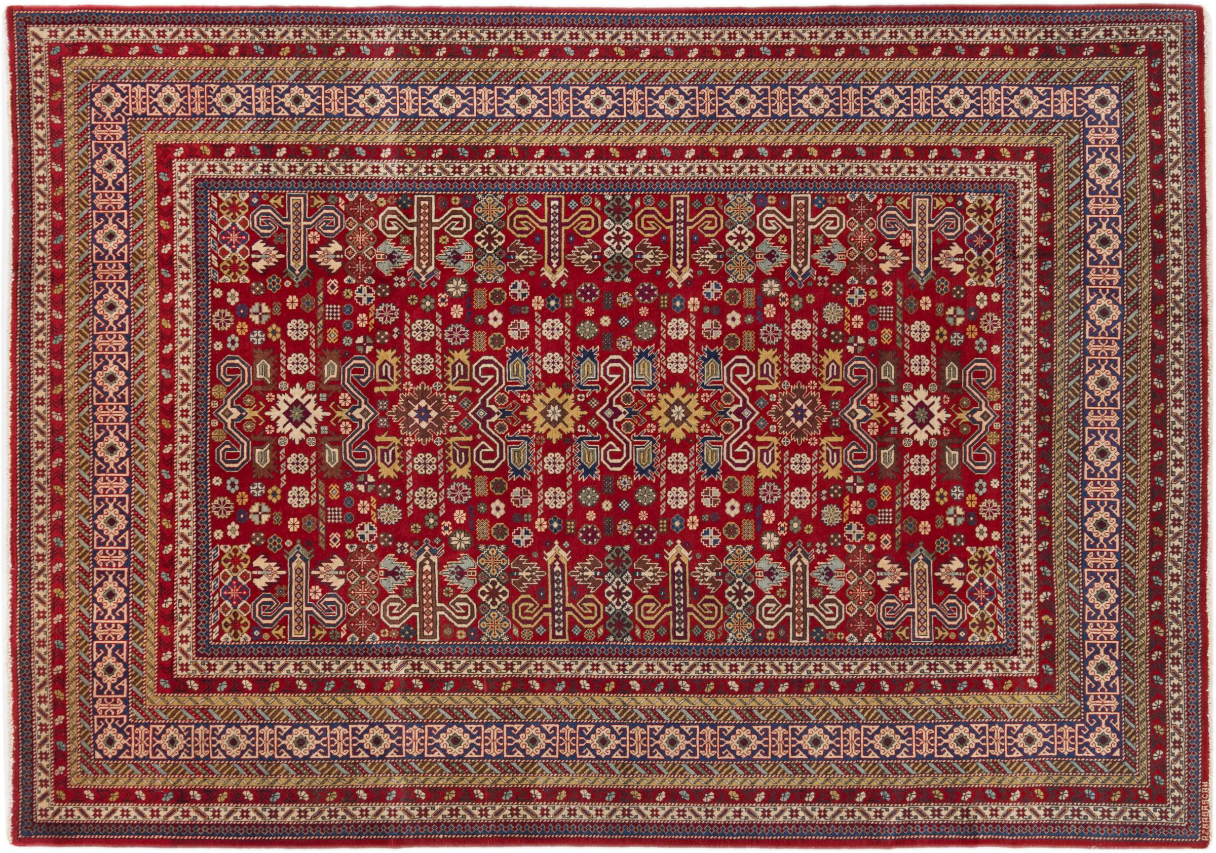 Denne håndknyttede Shirvan er en meget robust tæppe fra det østlige Kaukasus, der med sine pragtfulde farver og smukke dekorative elementer forkæler øjnene. Takket være dens tætte vævning, at levetiden er meget lang.