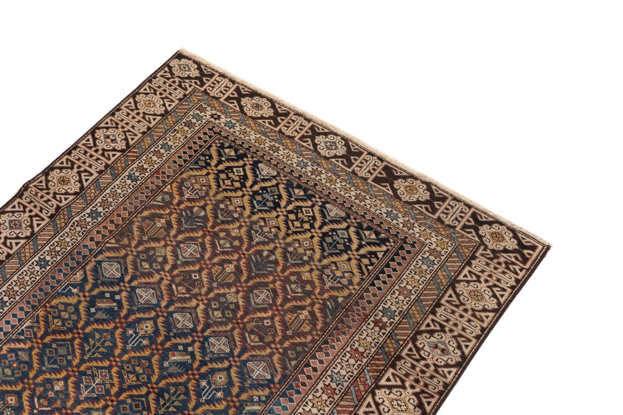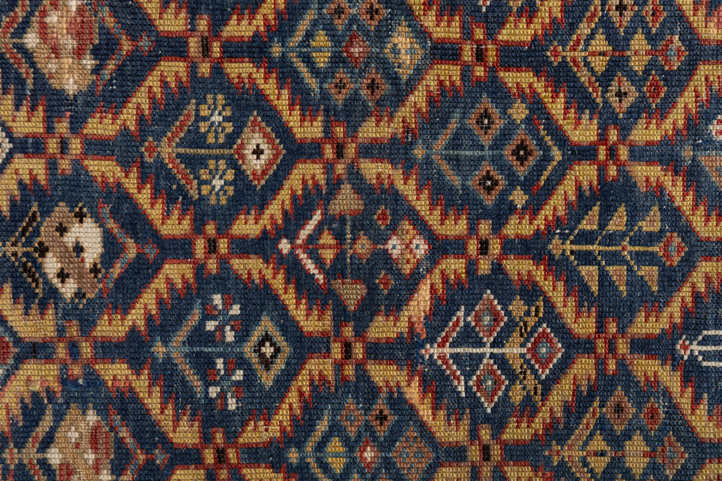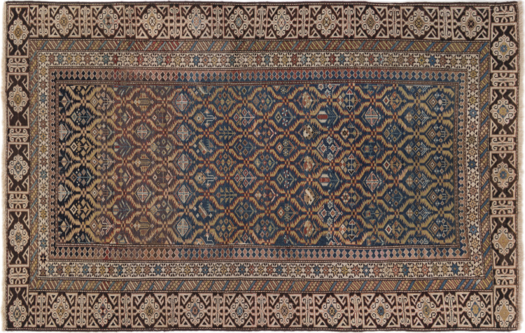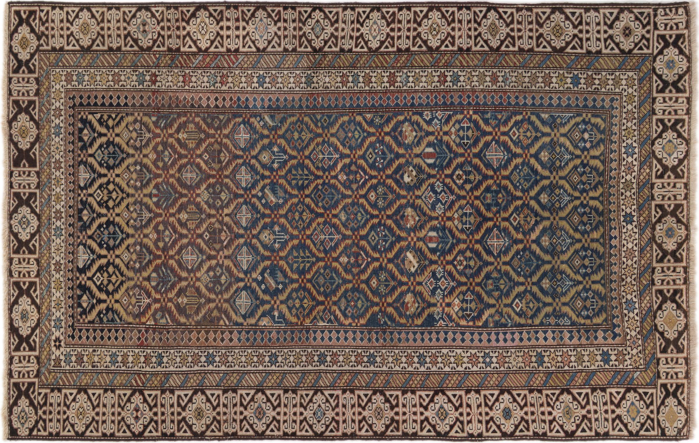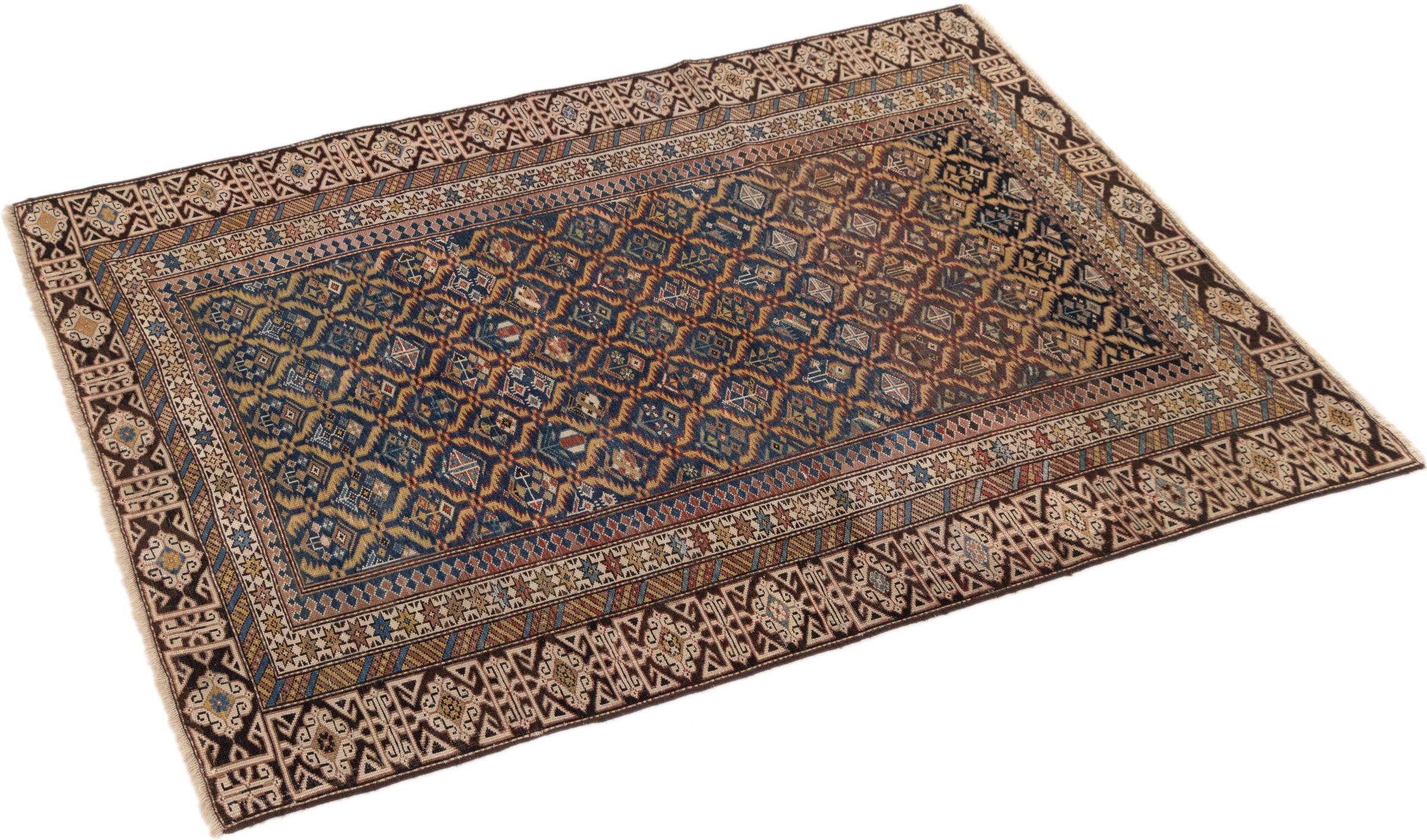Denne håndknyttede Shirvan er en meget robust tæppe fra det østlige Kaukasus, der med sine pragtfulde farver og smukke dekorative elementer forkæler øjnene. Takket være dens tætte vævning, at levetiden er meget lang.