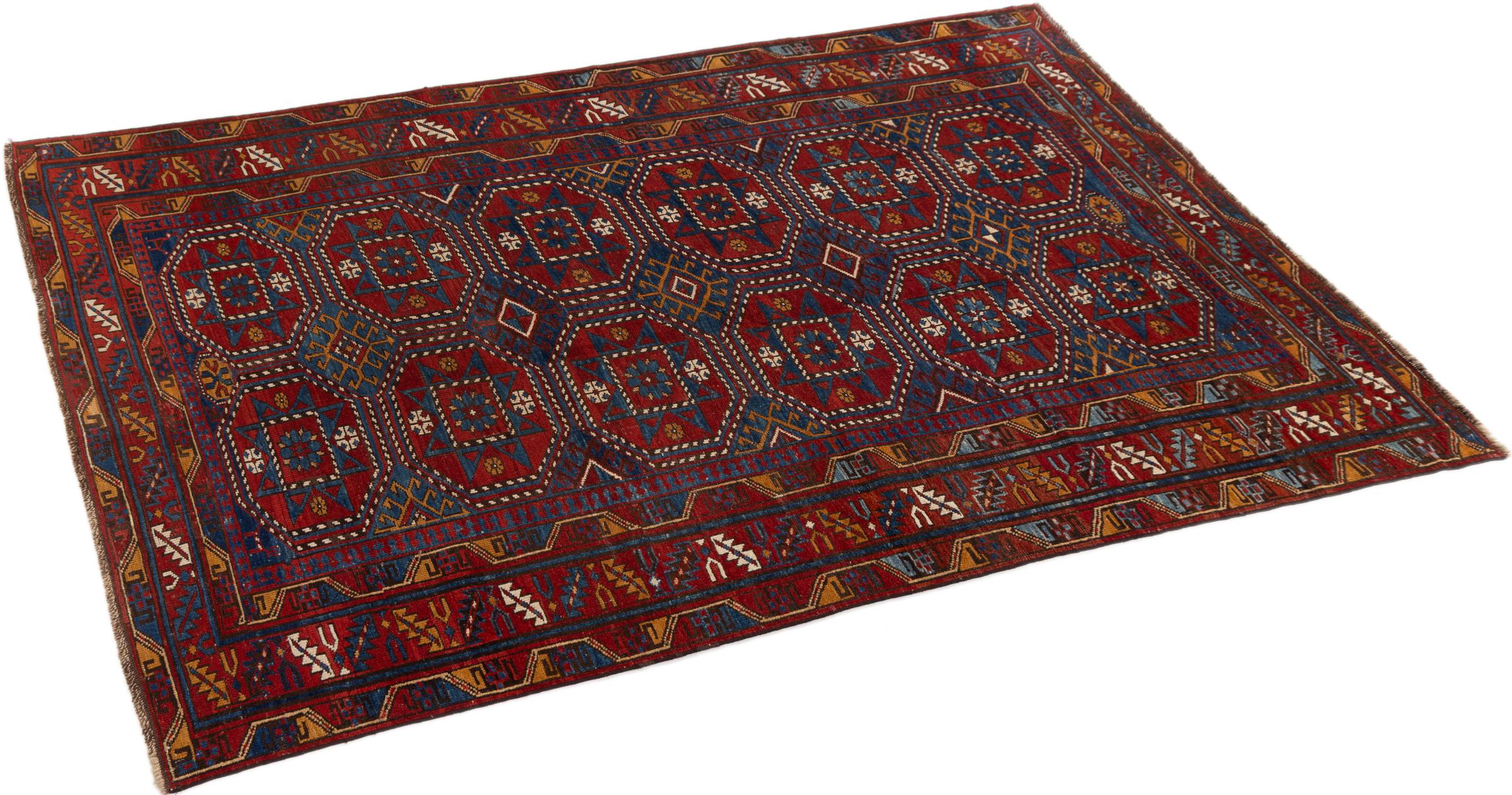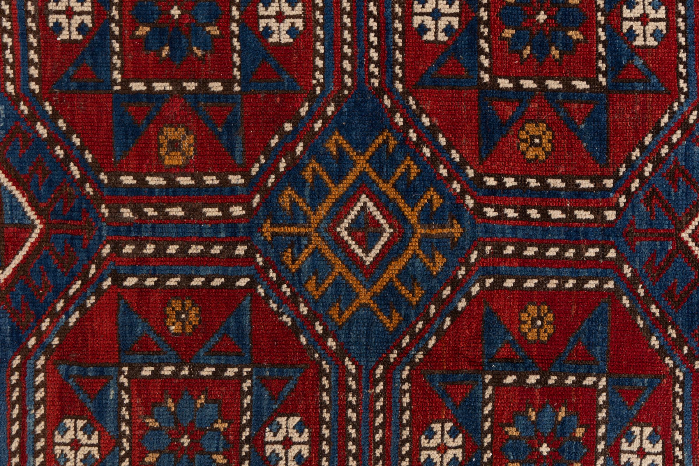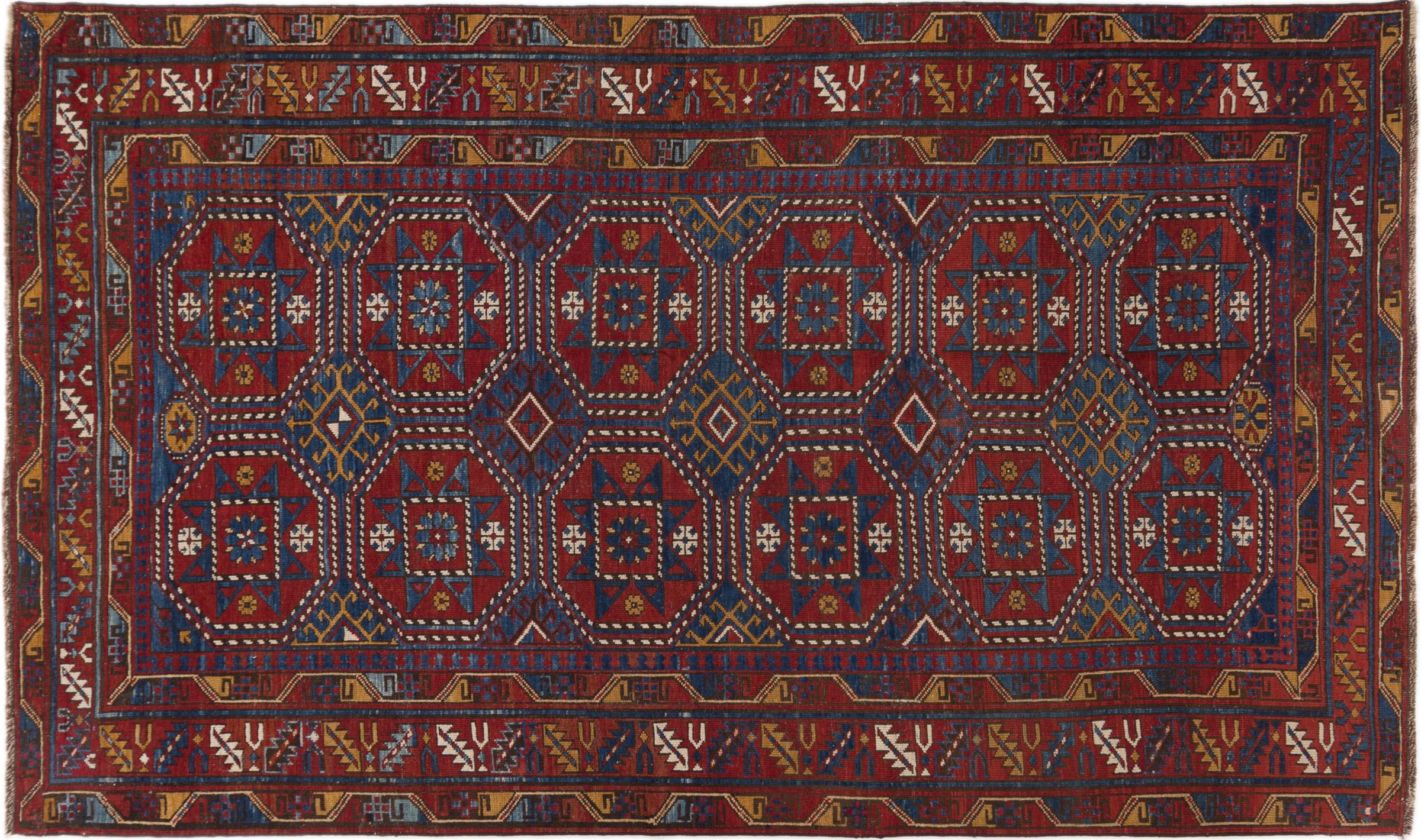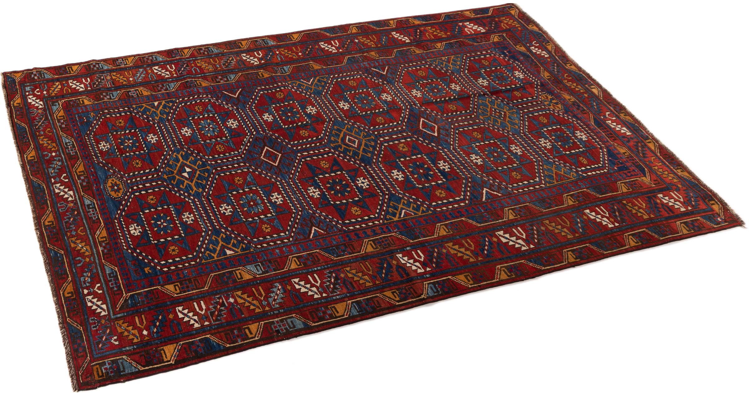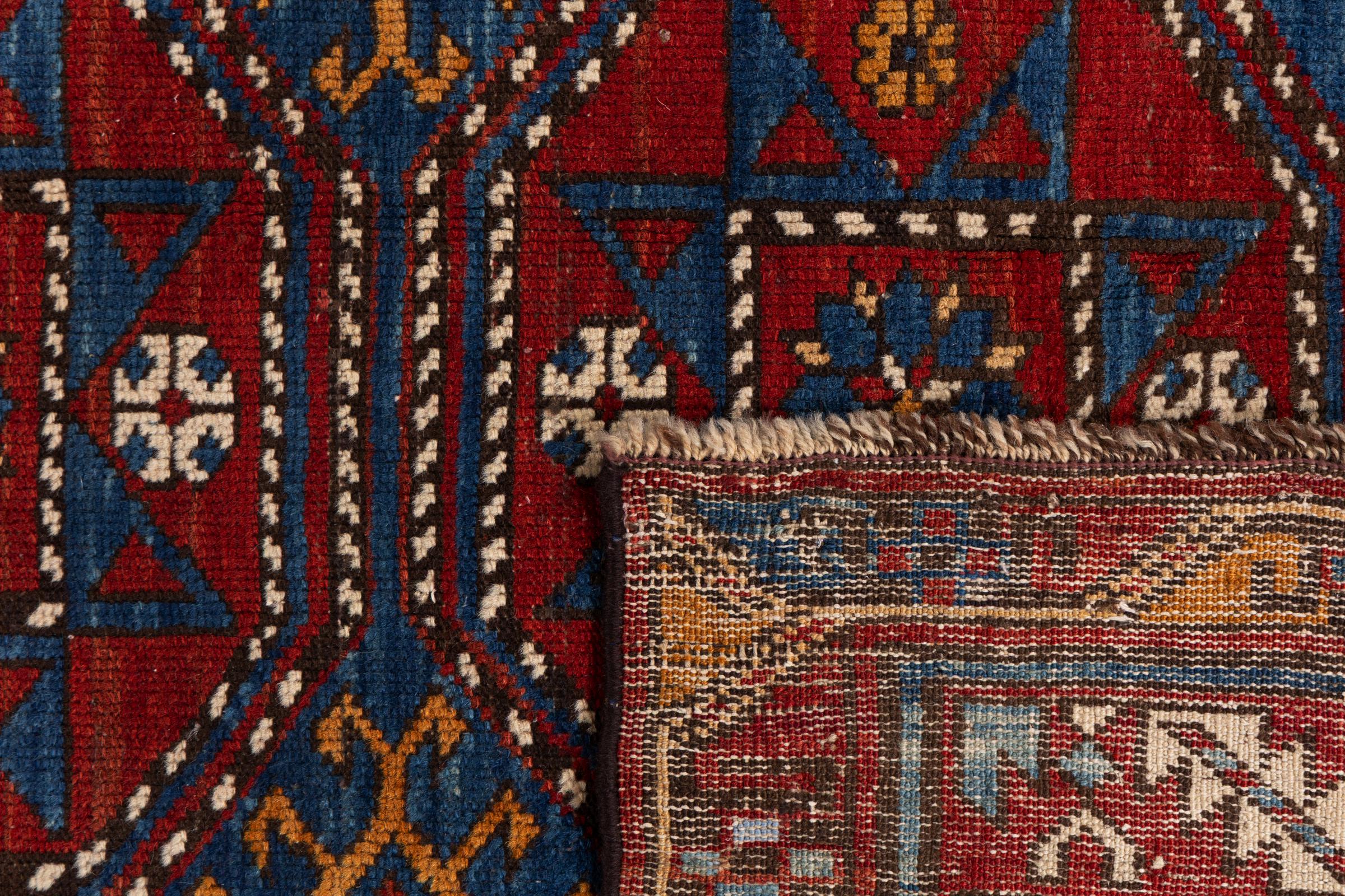 Tæppe-nr.: 299015001145 Størrelse: 228x132 cm Tykkelse: ca. 12 mm Knuder: 200 000 - 250 000 / m² Forarbejdelse: Knyttet i hånden Luv: Håndspunden uld Kæde: Uld Tilstand / Bevaring Perfekt Oprindelse: Azerbaijan / Rusland Alder: Antik, ældre end 80 år Vægt: ca. 9 kg Også kendt som Afghan Shirvan, Kaukasisch Antal på lager: Unik - Kun 1 tilbage på lager
