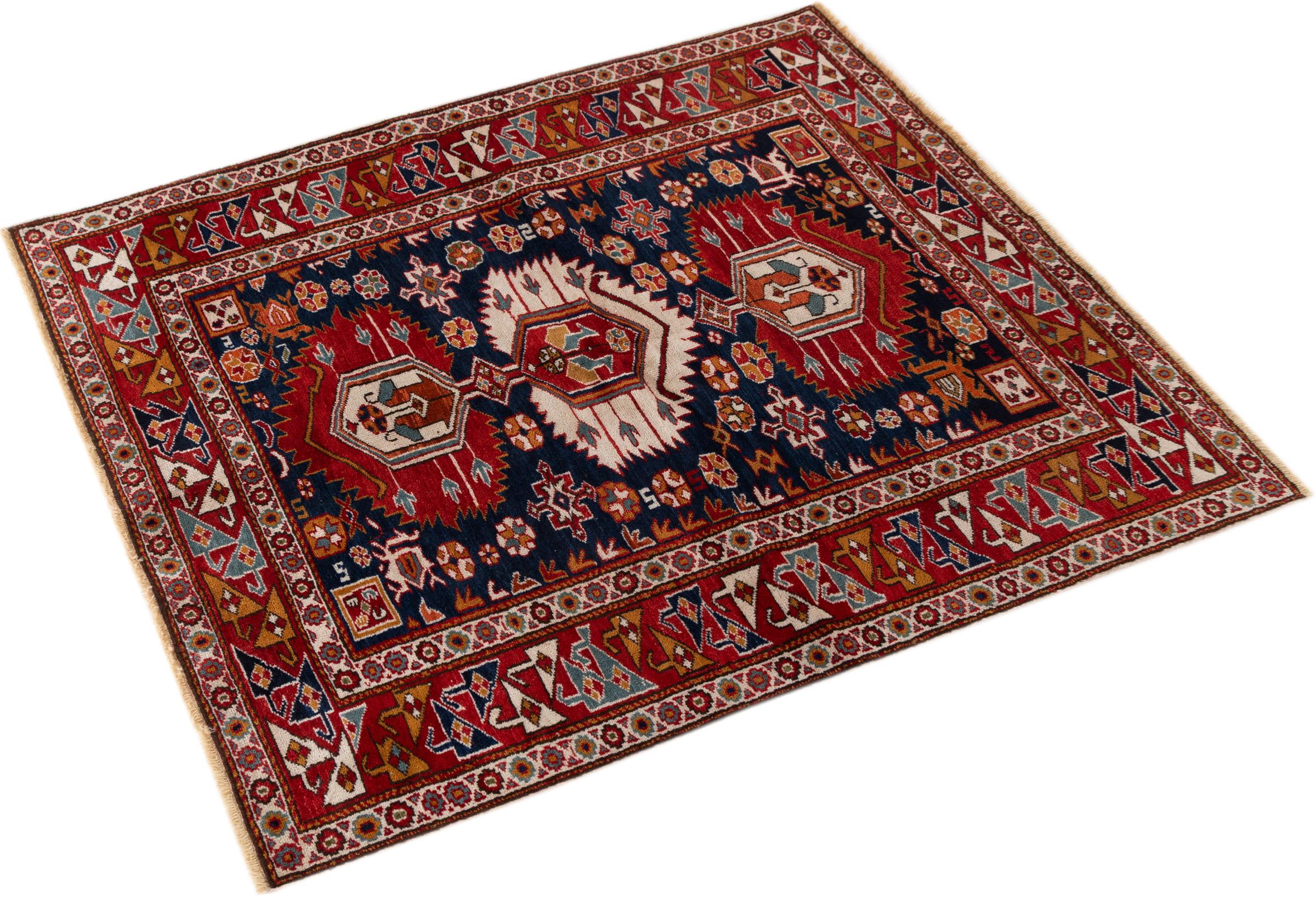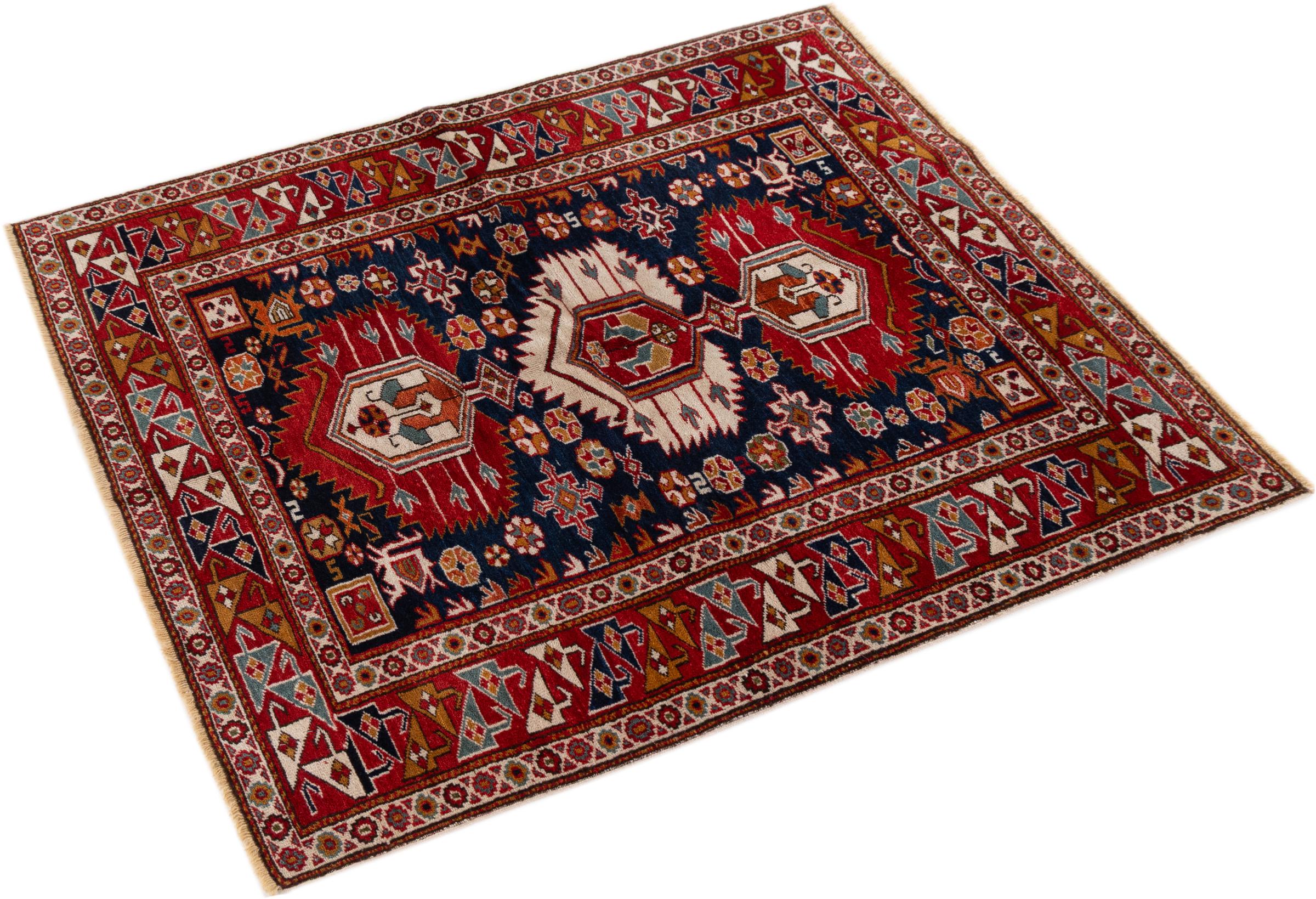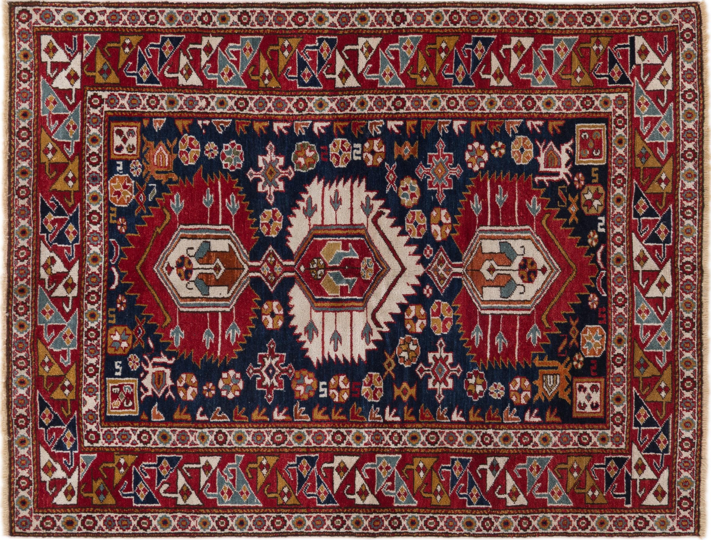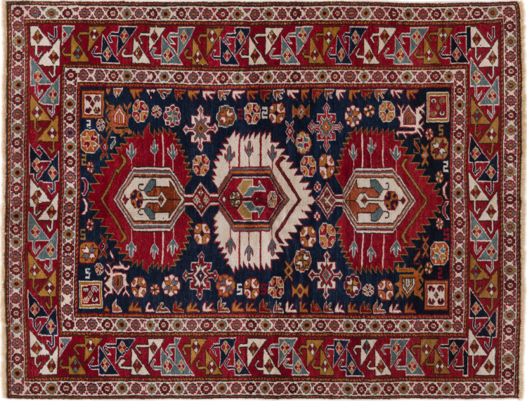 Tæppe-nr.: 298933007055 Størrelse: 128x101 cm Tykkelse: ca. 12 mm Knuder: 600 000 / m² Forarbejdelse: Knyttet i hånden Luv: Håndspunden uld Kæde: Bomuld Oprindelse: Azerbaijan / Rusland Alder: gammel/semi-antik, ældre end 50 år Vægt: ca. 4 kg Også kendt som Afghan Shirvan, Kaukasisch Antal på lager: Unik - Kun 1 tilbage på lager