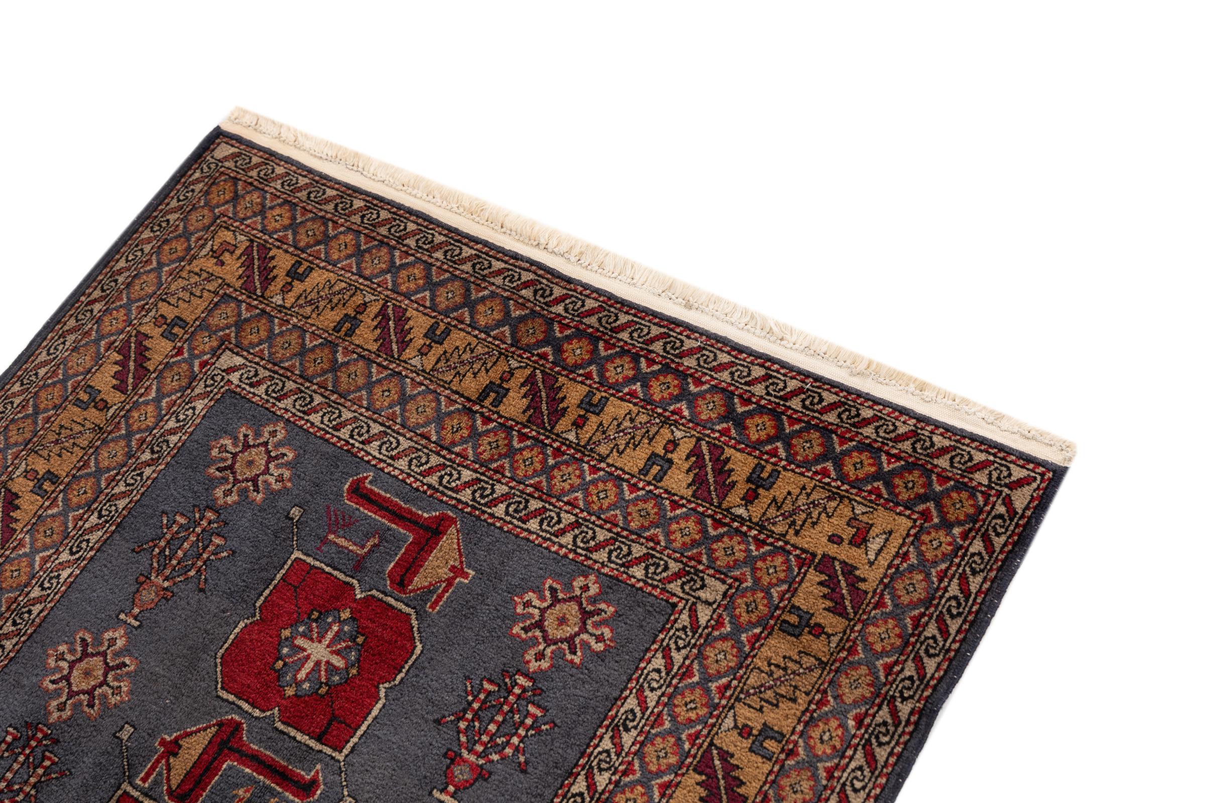 Denne håndknyttede Shirvan er en meget robust tæppe fra det østlige Kaukasus, der med sine pragtfulde farver og smukke dekorative elementer forkæler øjnene. Takket være dens tætte vævning, at levetiden er meget lang.