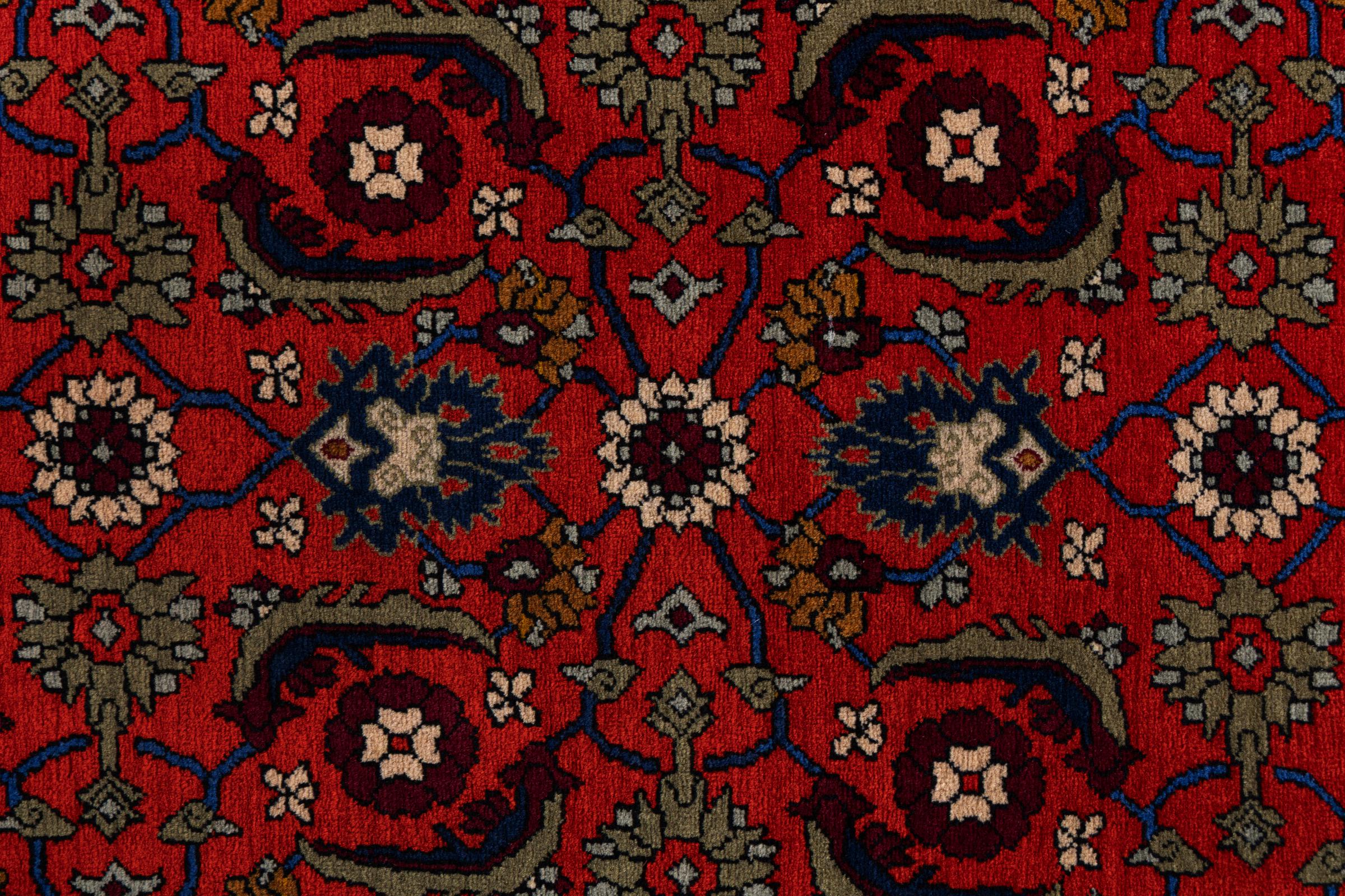 Dette tæppe består af håndspundet fåruld af højeste kvalitet. Især i Iran (tidligere Persien), Afghanistan og Pakistan spindes uld med hånden, før tæppet faktisk knuses. Uld har bevist sig som et naturligt og ekstremt slidstærkt materiale gennem århundreder. Det har blandt andet snavsafvisende og varmeisolerende egenskaber. Samtidig er uld uforlignelig blød og bringer en naturlig glans.