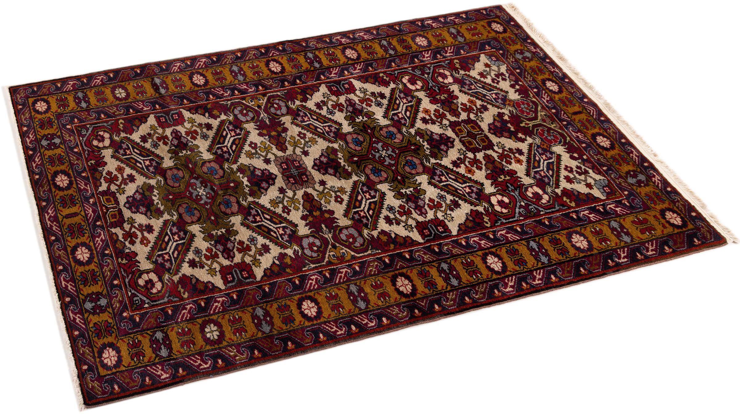 Dette tæppe består af håndspundet fåruld af højeste kvalitet. Især i Iran (tidligere Persien), Afghanistan og Pakistan spindes uld med hånden, før tæppet faktisk knuses. Uld har bevist sig som et naturligt og ekstremt slidstærkt materiale gennem århundreder. Det har blandt andet snavsafvisende og varmeisolerende egenskaber. Samtidig er uld uforlignelig blød og bringer en naturlig glans.