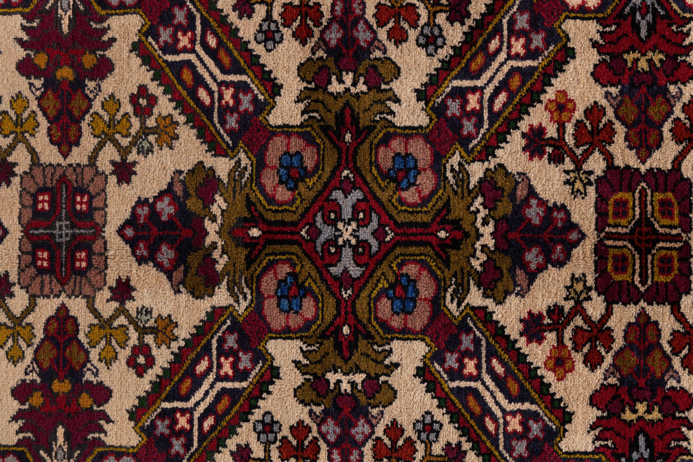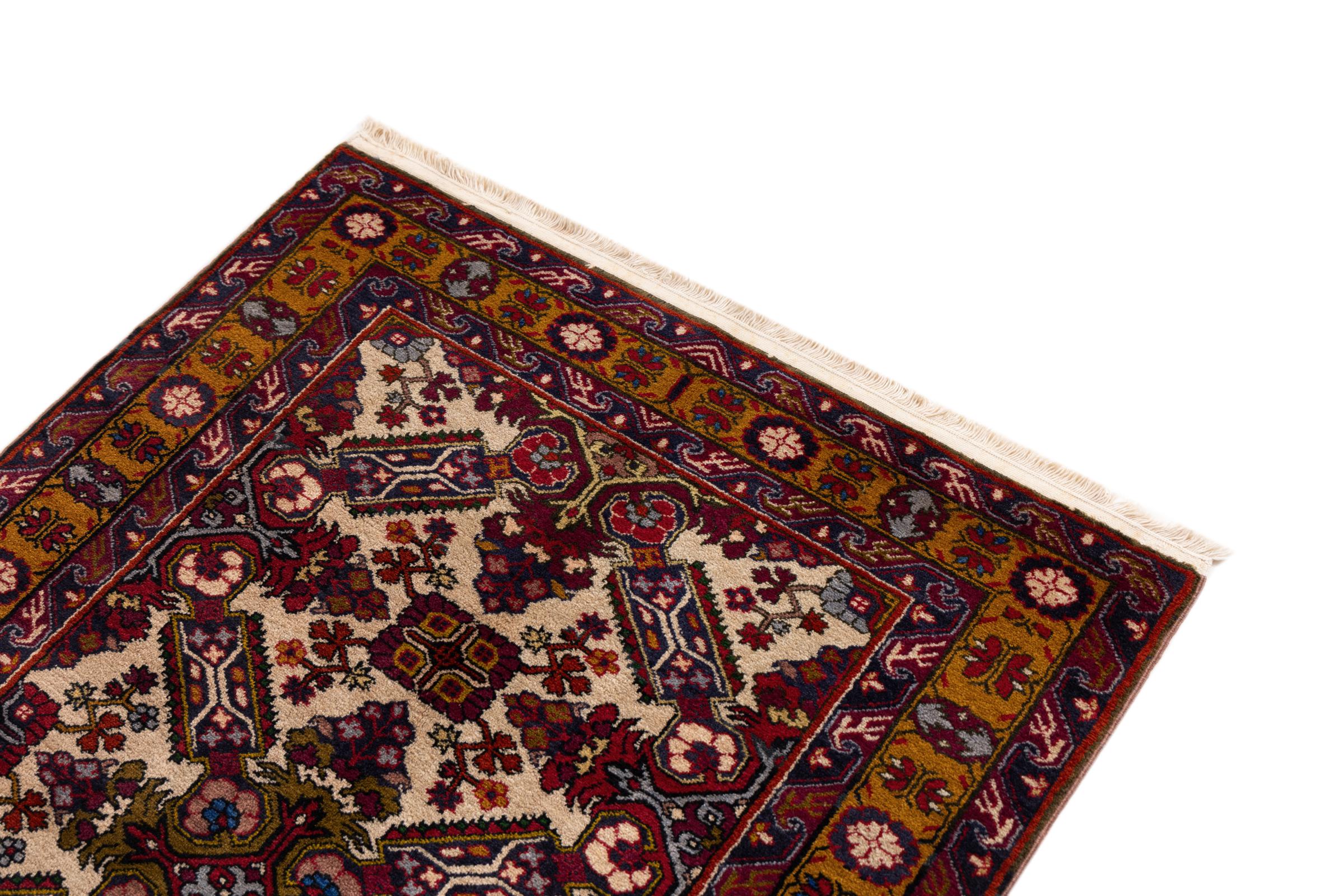 Denne håndknyttede Shirvan er en meget robust tæppe fra det østlige Kaukasus, der med sine pragtfulde farver og smukke dekorative elementer forkæler øjnene. Takket være dens tætte vævning, at levetiden er meget lang.