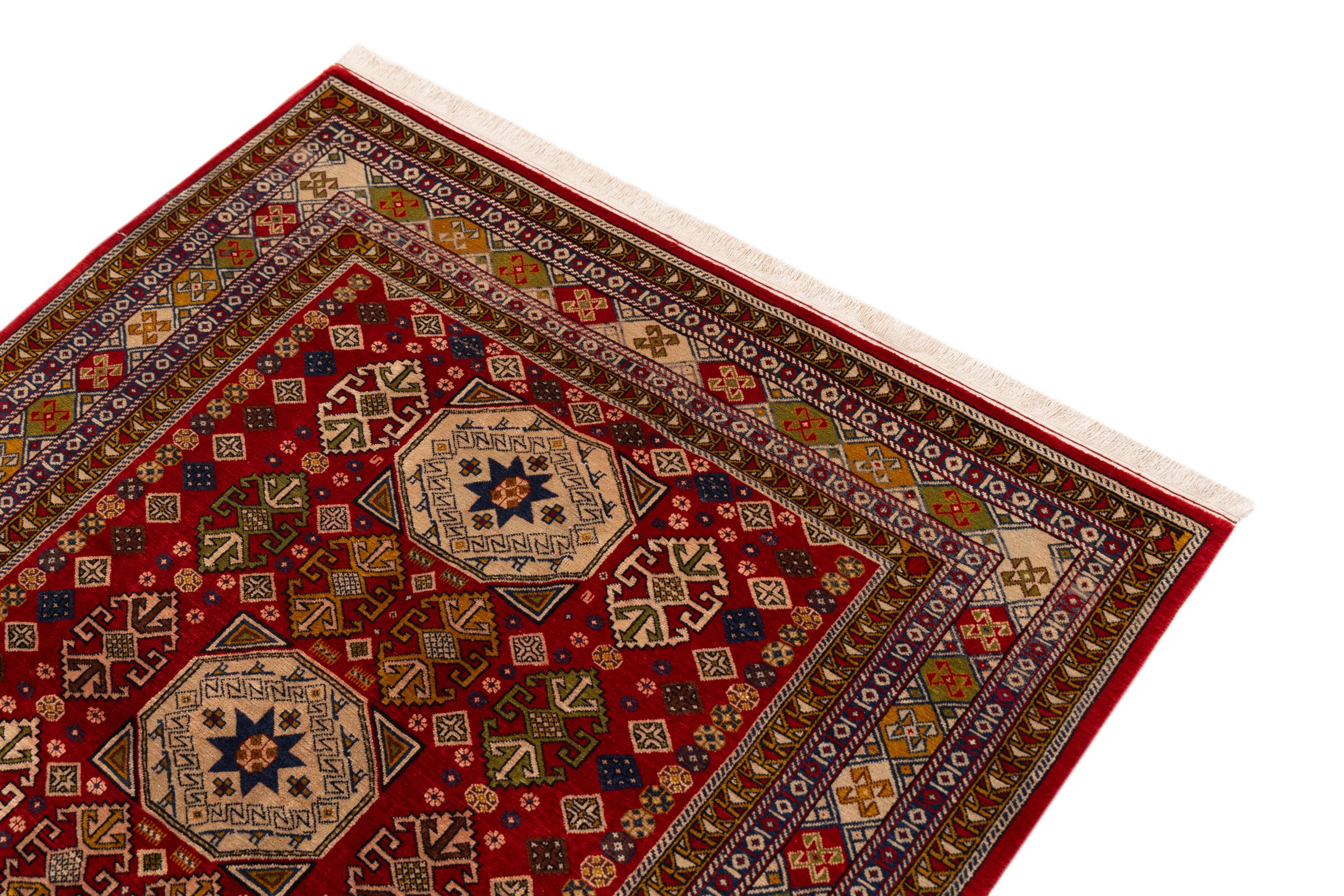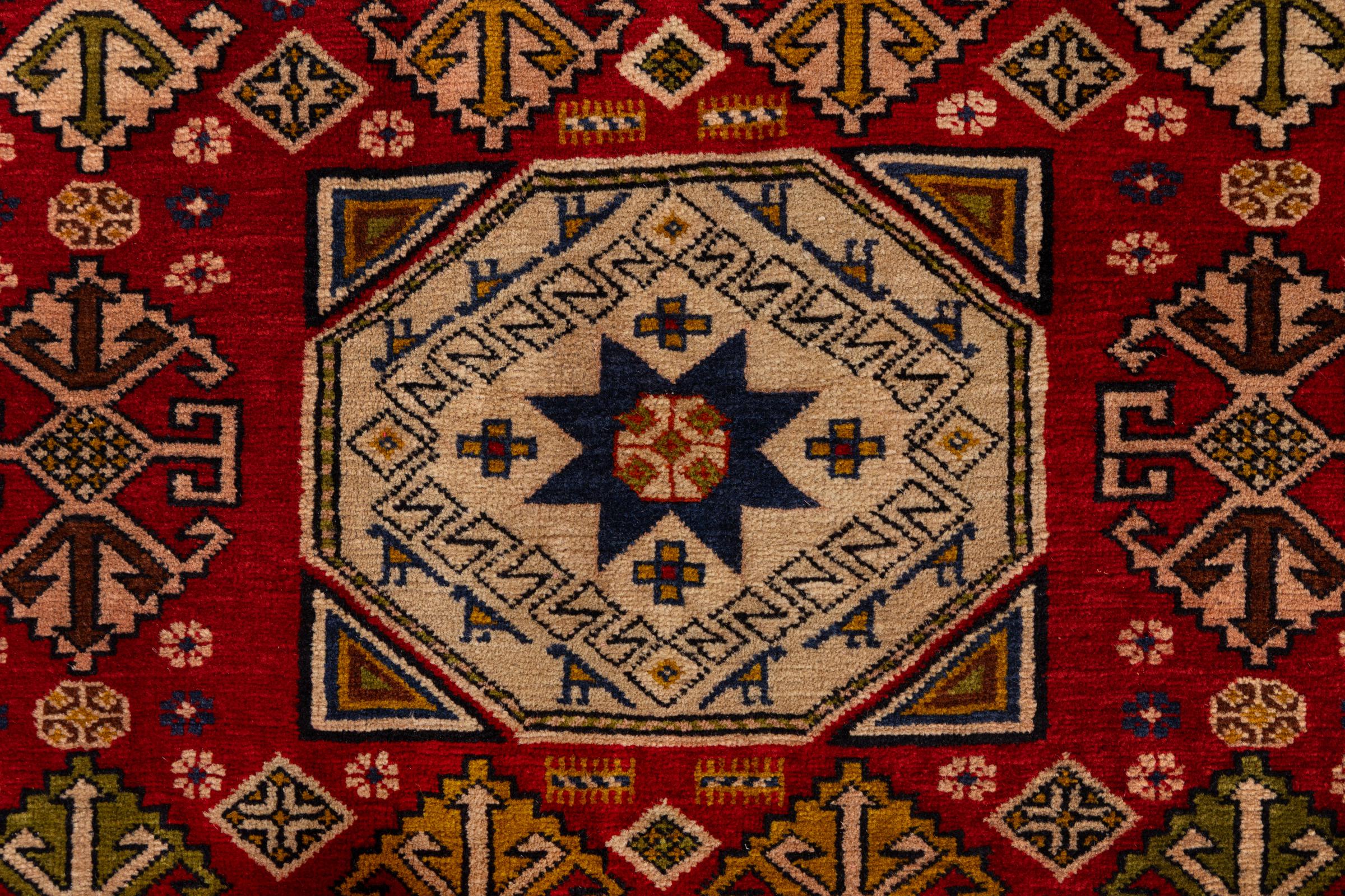 Tæppe-nr.: 29892500257 Størrelse: 193x130 cm Tykkelse: ca. 12 mm Knuder: 200 000 - 250 000 / m² Forarbejdelse: Knyttet i hånden Luv: Håndspunden uld Kæde: Bomuld Oprindelse: Azerbaijan / Rusland Alder: gammel/semi-antik, ældre end 50 år Vægt: ca. 8 kg Også kendt som Afghan Shirvan, Kaukasisch Antal på lager: Unik - Kun 1 tilbage på lager