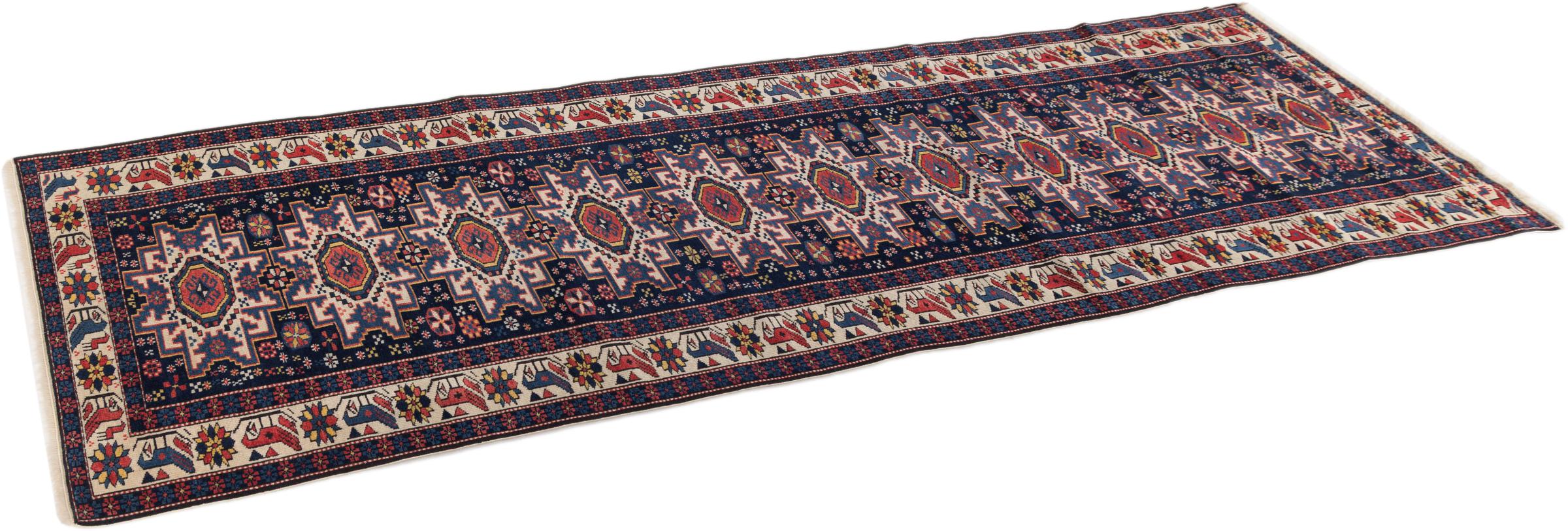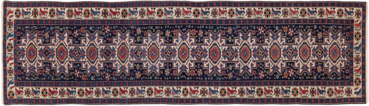 Tæppe-nr.: 298389001901 Størrelse: 290x82 cm Tykkelse: ca. 12 mm Knuder: 440 000 - 490 000 / m² Forarbejdelse: Knyttet i hånden Luv: Håndspunden uld Kæde: Uld Oprindelse: Azerbaijan / Rusland Alder: gammel/semi-antik, ældre end 50 år Vægt: ca. 7 kg Også kendt som Afghan Shirvan, Kaukasisch Antal på lager: Unik - Kun 1 tilbage på lager
