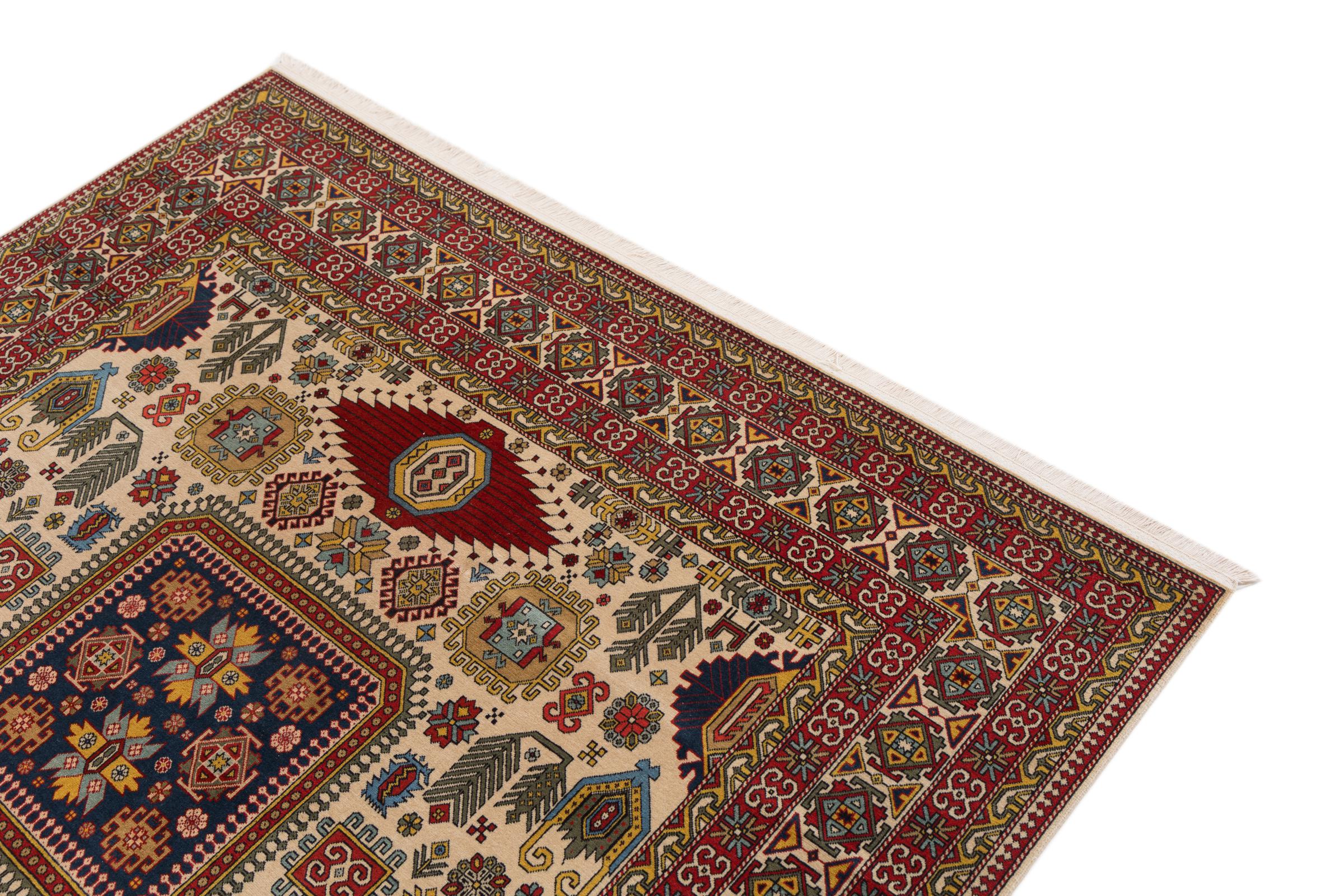 Denne håndknyttede Shirvan er en meget robust tæppe fra det østlige Kaukasus, der med sine pragtfulde farver og smukke dekorative elementer forkæler øjnene. Takket være dens tætte vævning, at levetiden er meget lang.
