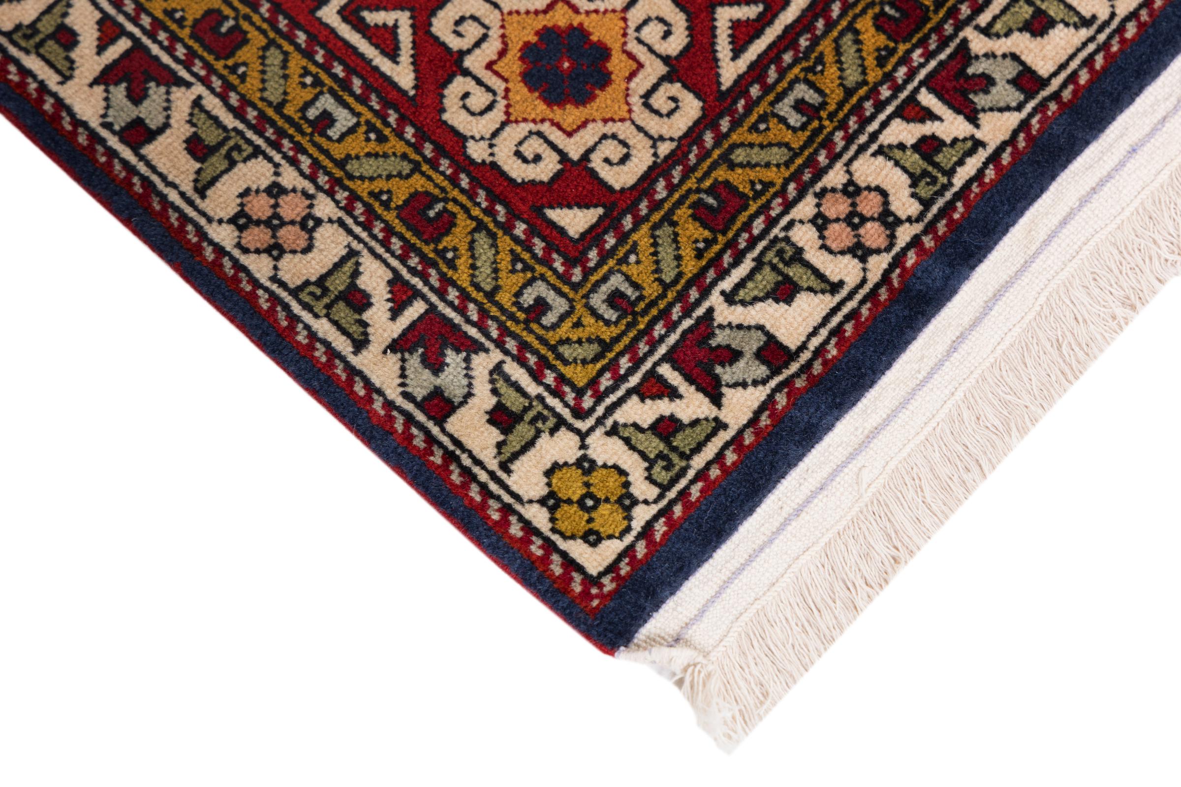 Denne håndknyttede Shirvan er en meget robust tæppe fra det østlige Kaukasus, der med sine pragtfulde farver og smukke dekorative elementer forkæler øjnene. Takket være dens tætte vævning, at levetiden er meget lang.
