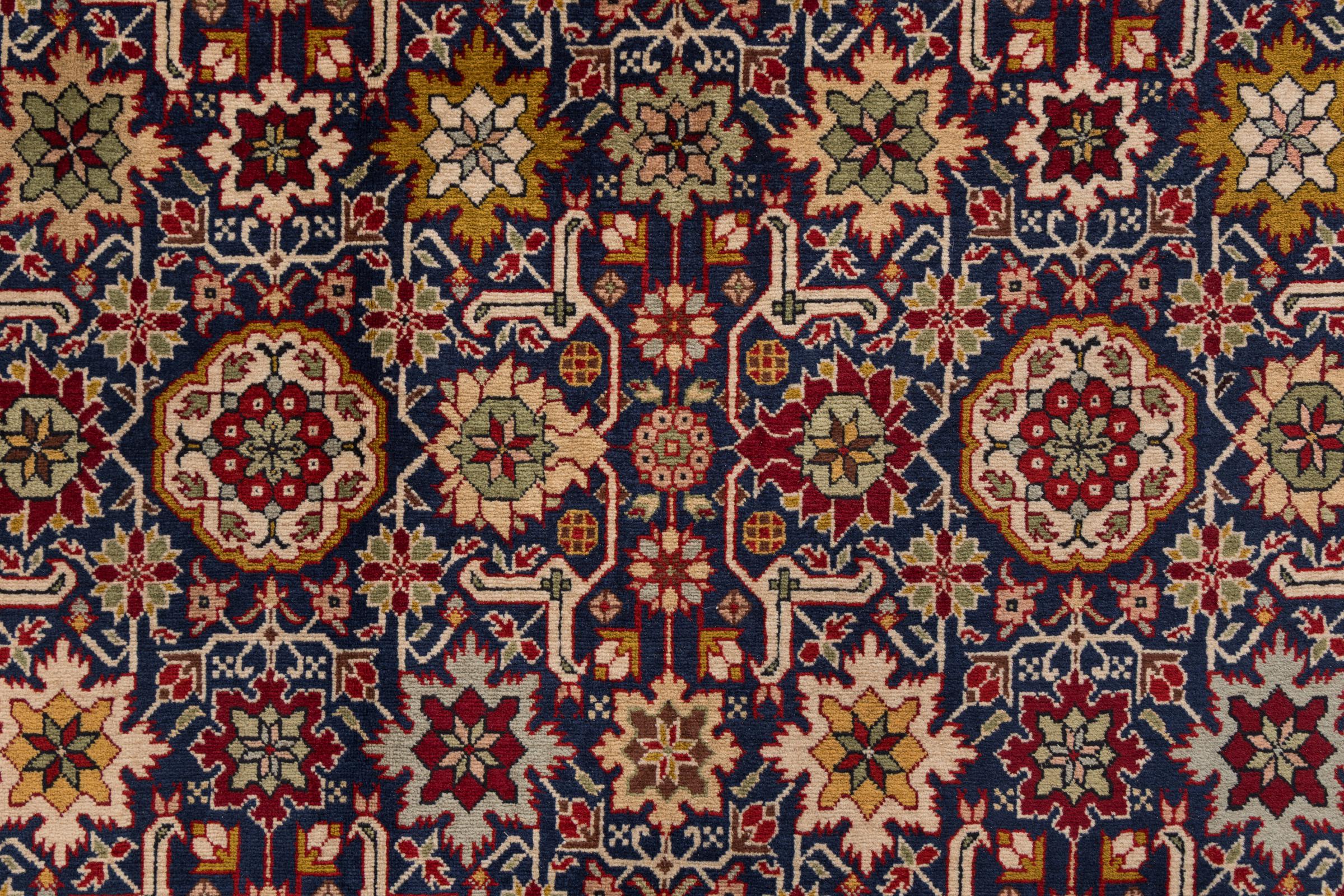 Dette tæppe består af håndspundet fåruld af højeste kvalitet. Især i Iran (tidligere Persien), Afghanistan og Pakistan spindes uld med hånden, før tæppet faktisk knuses. Uld har bevist sig som et naturligt og ekstremt slidstærkt materiale gennem århundreder. Det har blandt andet snavsafvisende og varmeisolerende egenskaber. Samtidig er uld uforlignelig blød og bringer en naturlig glans.