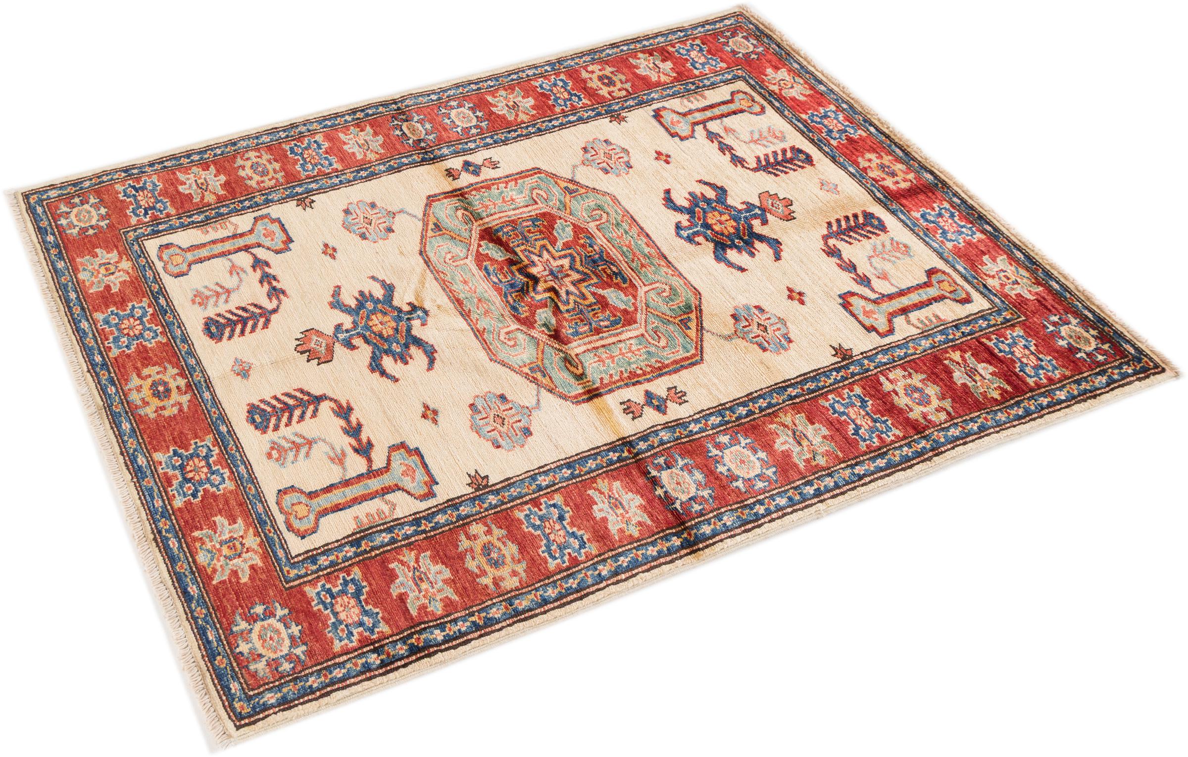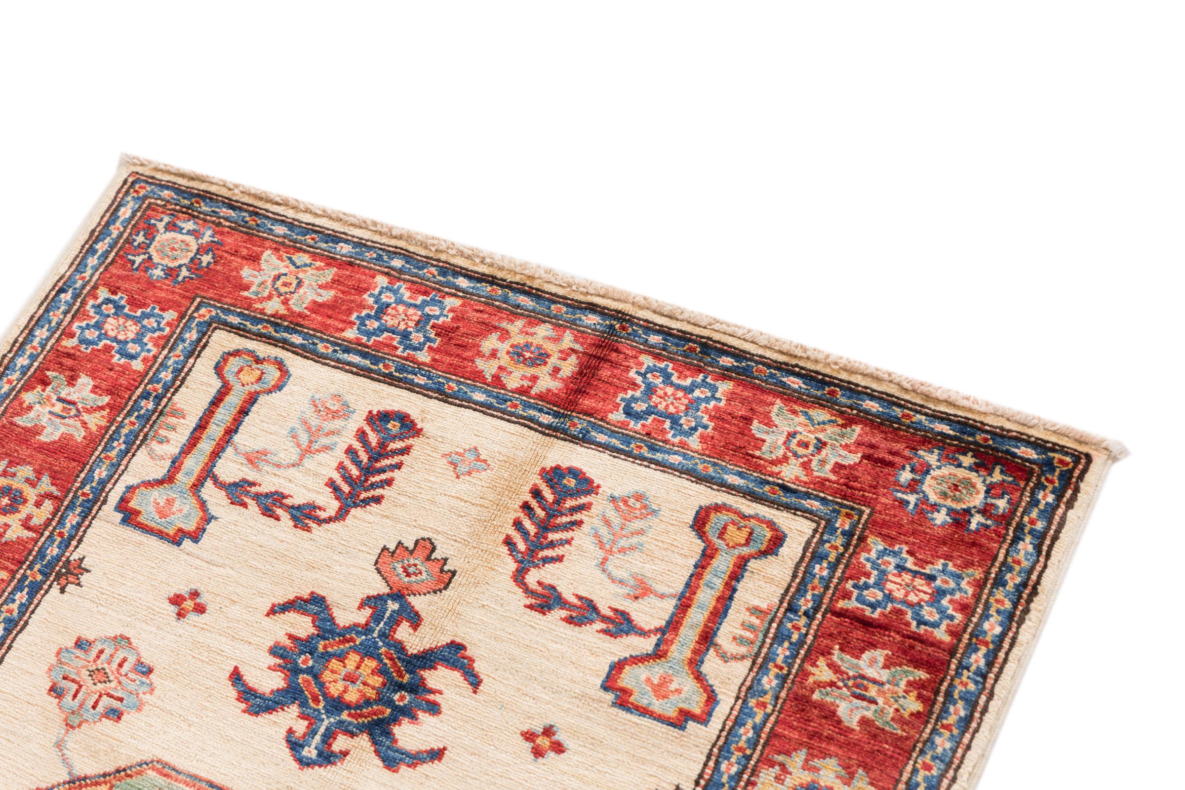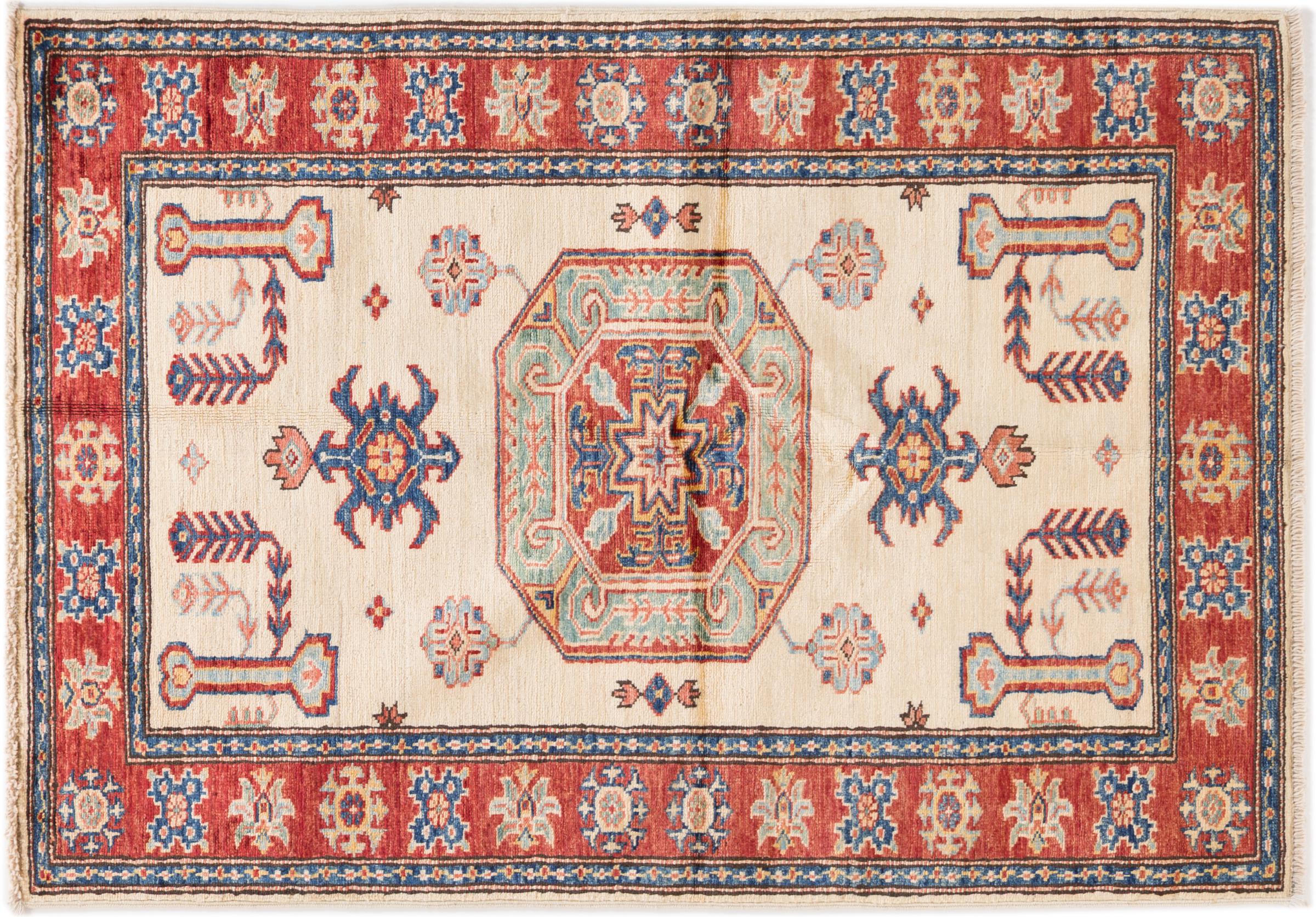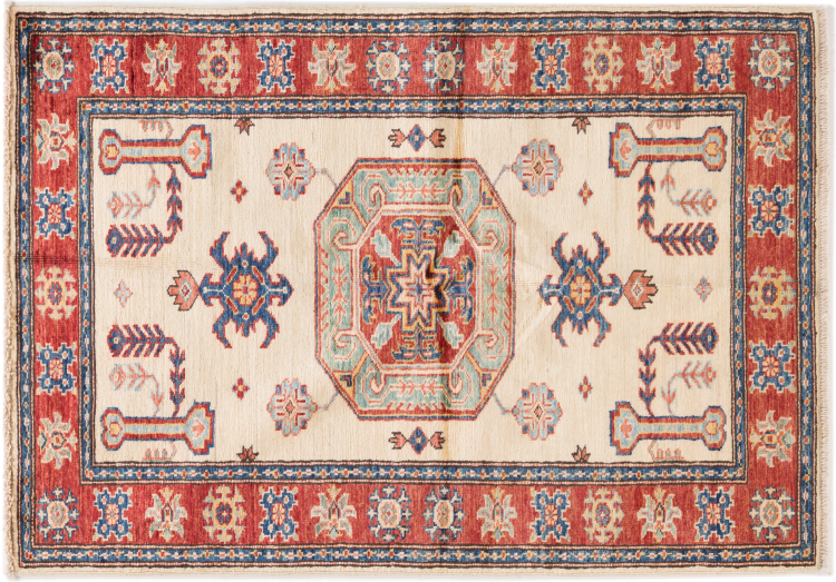 Dette håndknyttede Kazak er håndknyttet i stil med kaukasiske tæpper og imponerer med sin høje robusthed og levende farver. Det afspejler således kulturen i Kaukasus i en smuk komposition. En kultur, der i århundreder har mestret kunsten at væve tæpper og præsenterer den for omverdenen med charmerende enkle former i imponerende levende farver.