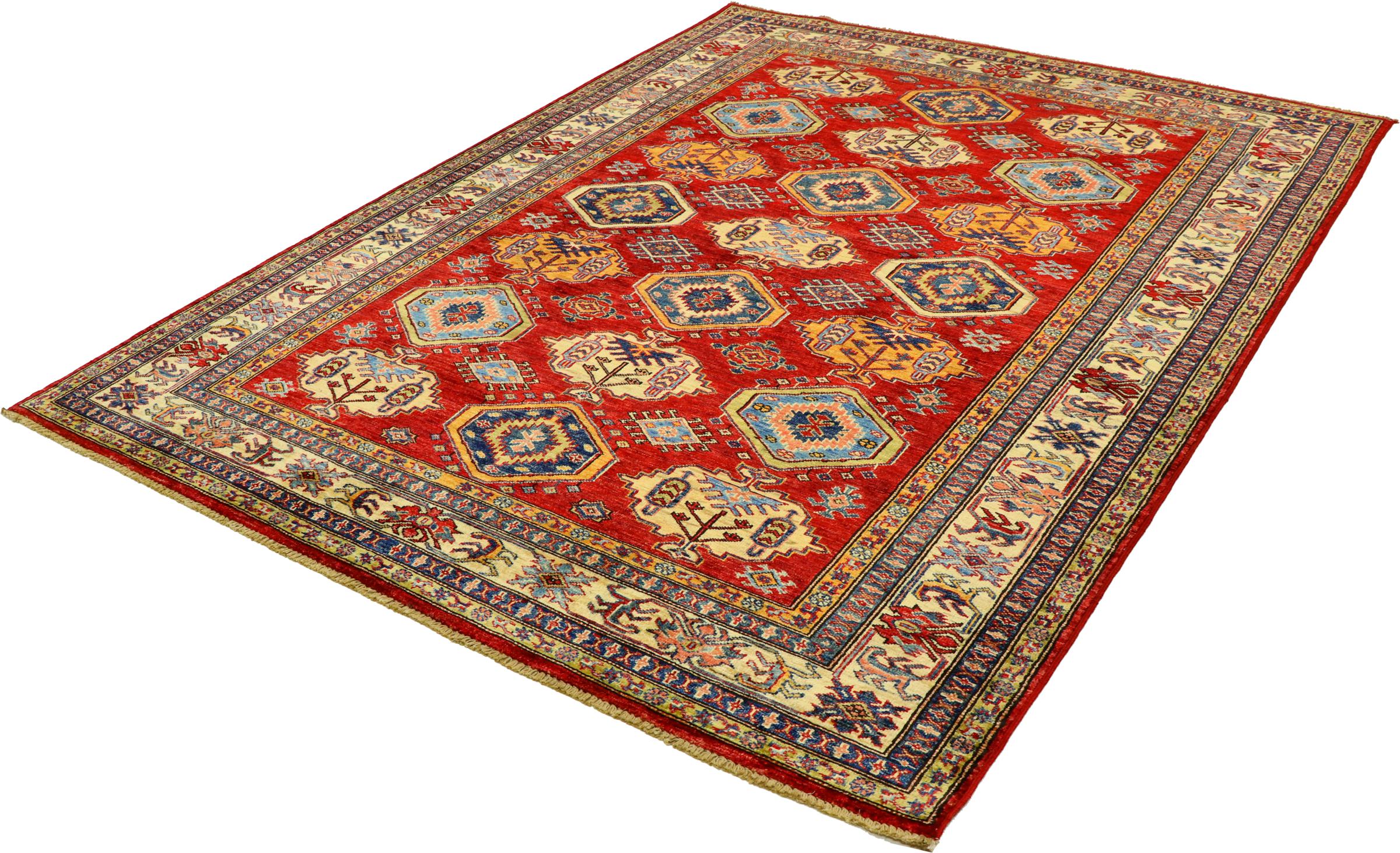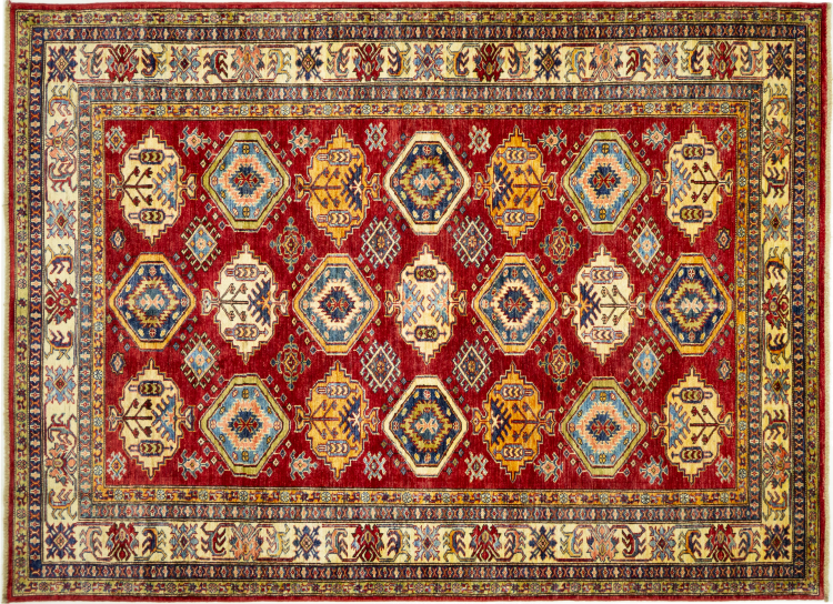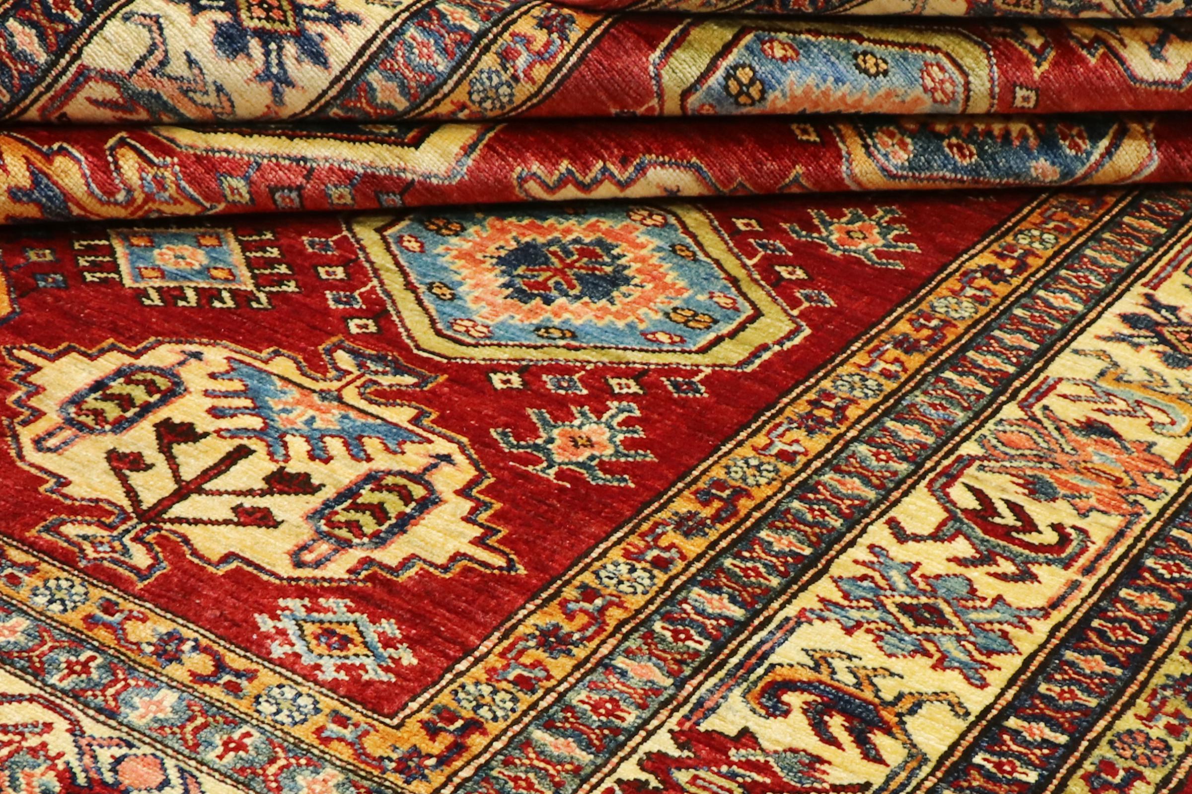 Dette håndknyttede Kazak er håndknyttet i stil med kaukasiske tæpper og imponerer med sin høje robusthed og levende farver. Det afspejler således kulturen i Kaukasus i en smuk komposition. En kultur, der i århundreder har mestret kunsten at væve tæpper og præsenterer den for omverdenen med charmerende enkle former i imponerende levende farver.