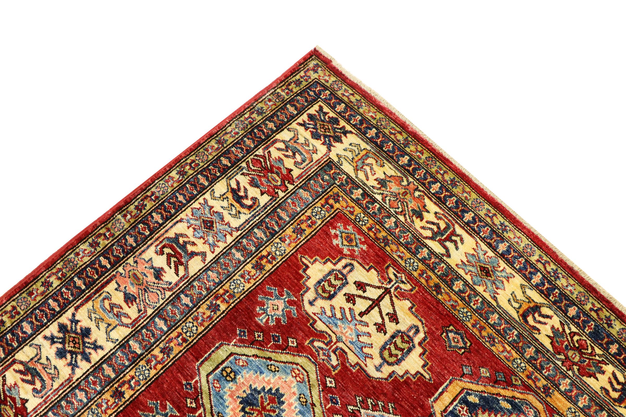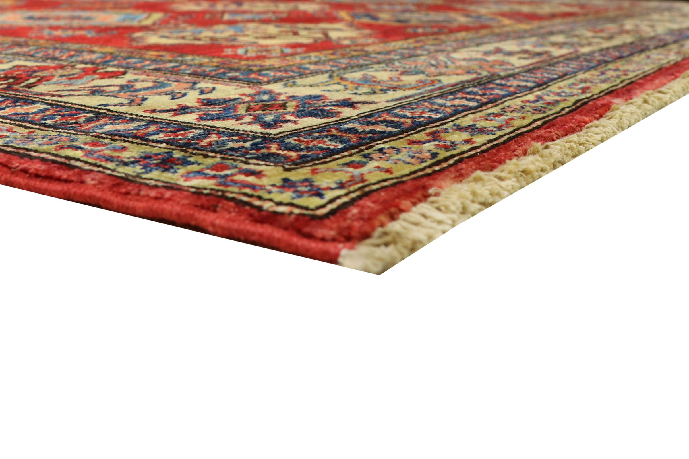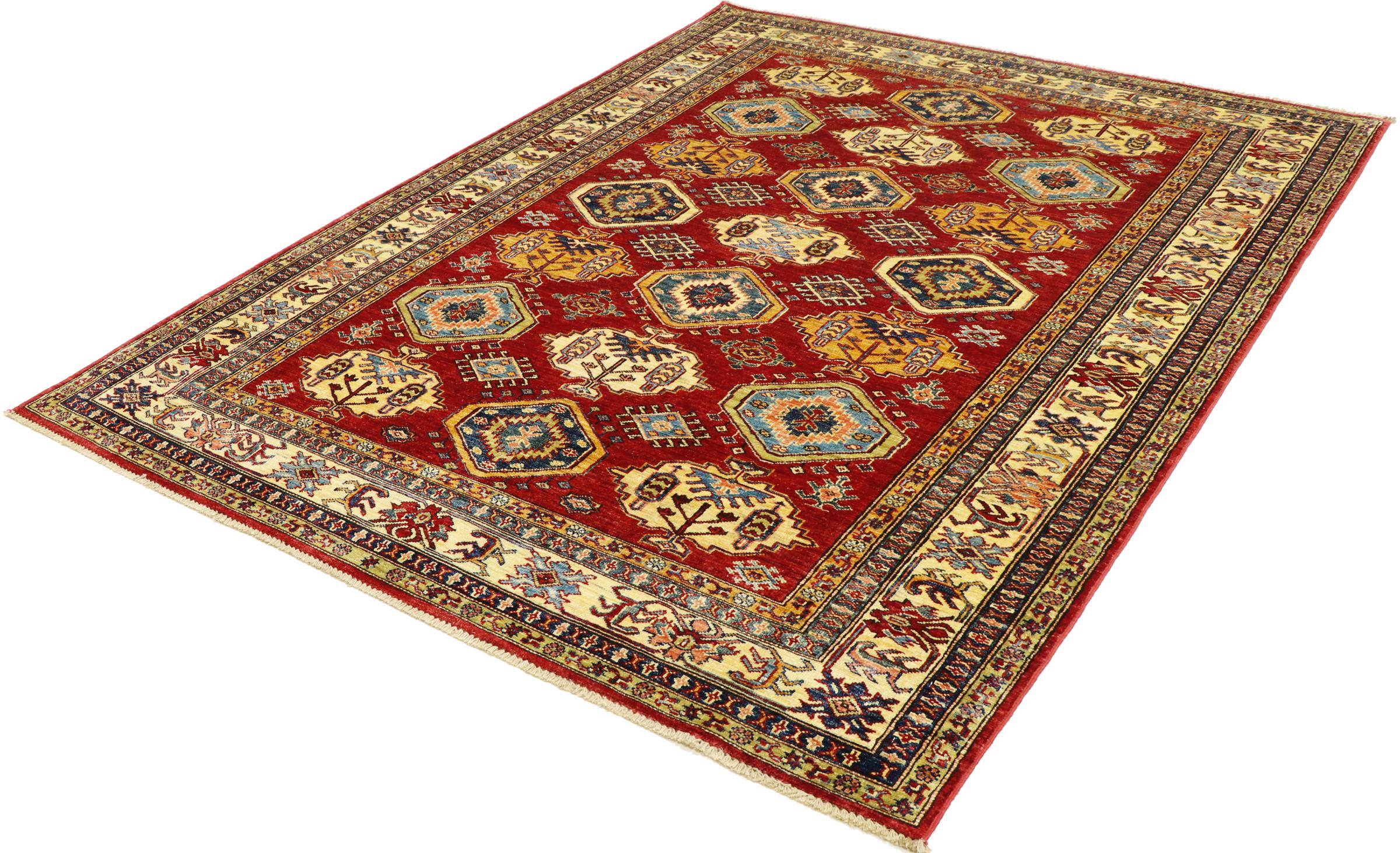 Dette håndknyttede Kazak er håndknyttet i stil med kaukasiske tæpper og imponerer med sin høje robusthed og levende farver. Det afspejler således kulturen i Kaukasus i en smuk komposition. En kultur, der i århundreder har mestret kunsten at væve tæpper og præsenterer den for omverdenen med charmerende enkle former i imponerende levende farver.