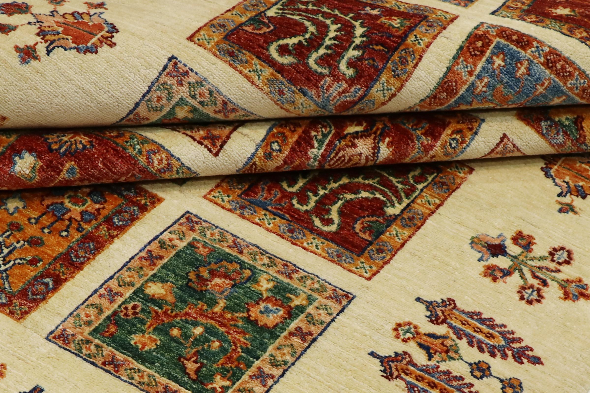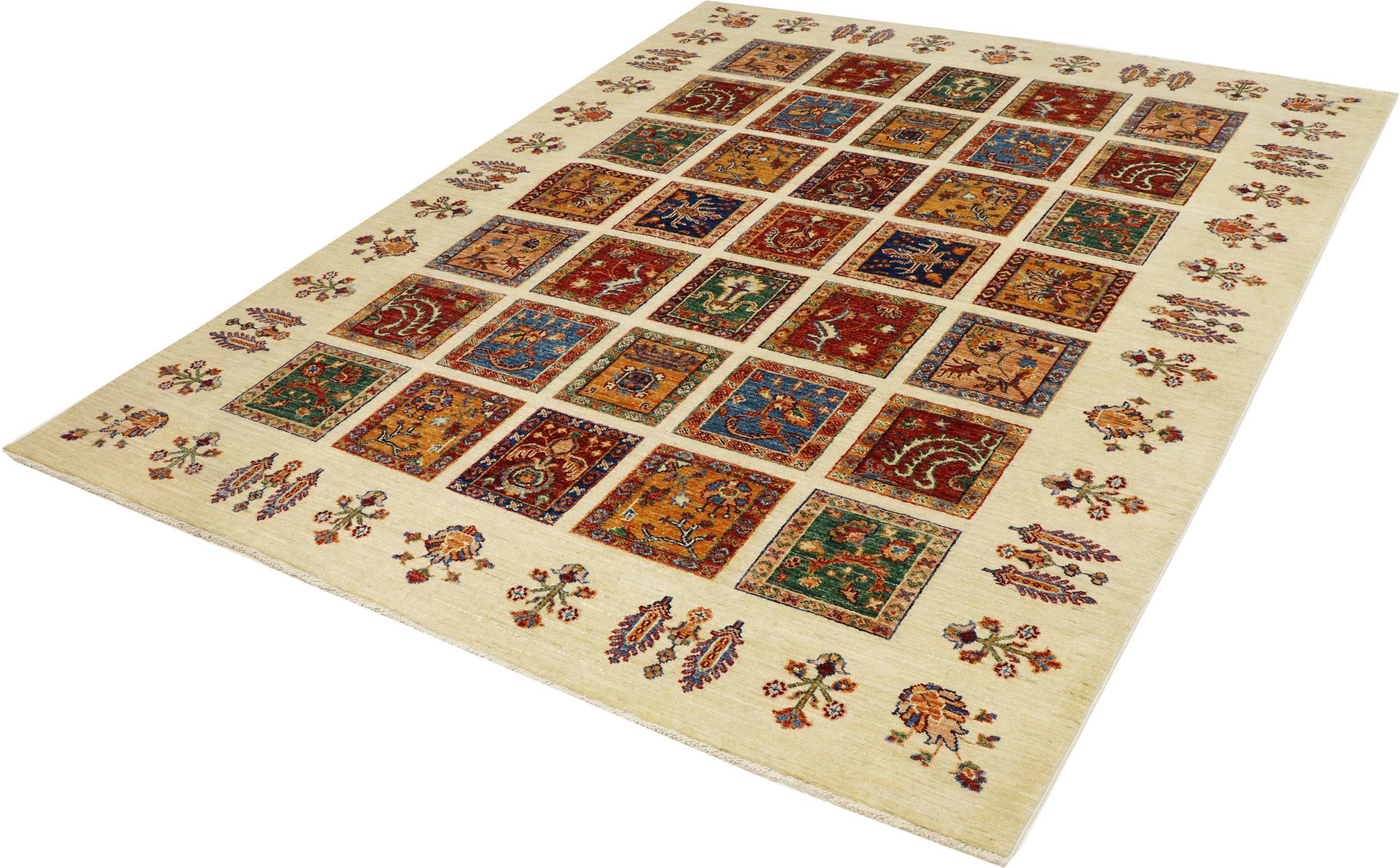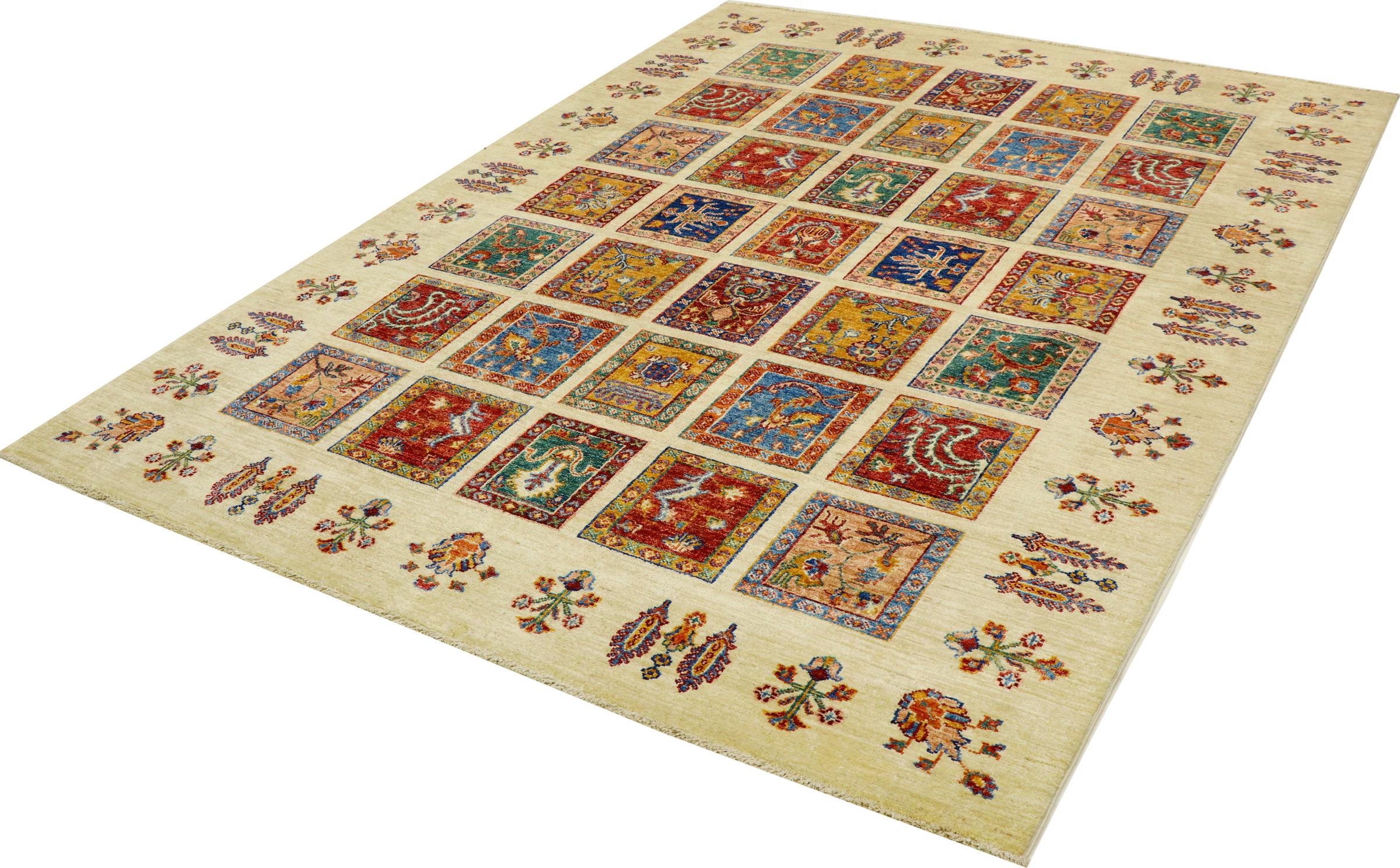 Dette tæppe består af håndspundet fåruld af højeste kvalitet. Især i Iran (tidligere Persien), Afghanistan og Pakistan spindes uld med hånden, før tæppet faktisk knuses. Uld har bevist sig som et naturligt og ekstremt slidstærkt materiale gennem århundreder. Det har blandt andet snavsafvisende og varmeisolerende egenskaber. Samtidig er uld uforlignelig blød og bringer en naturlig glans.