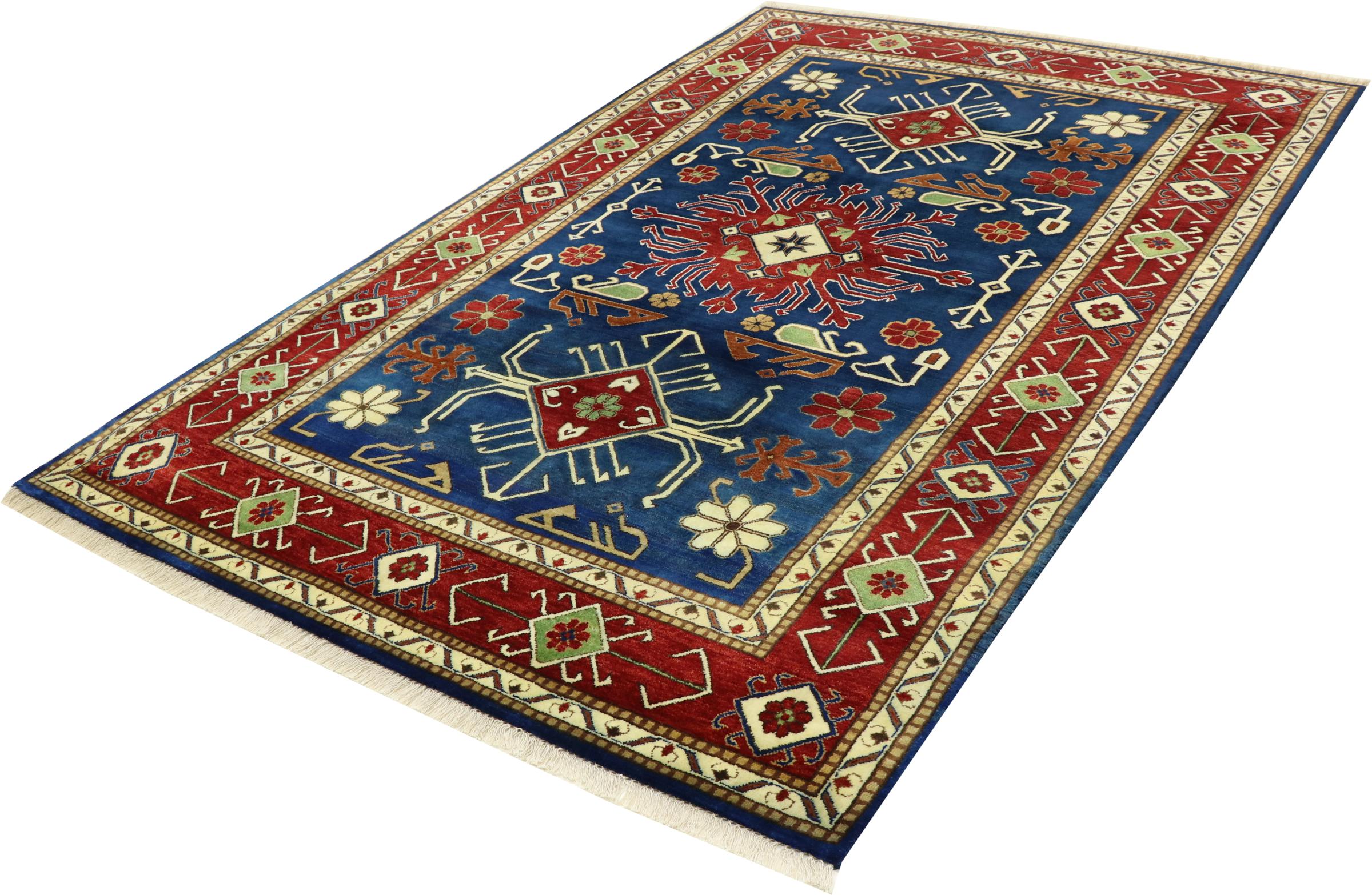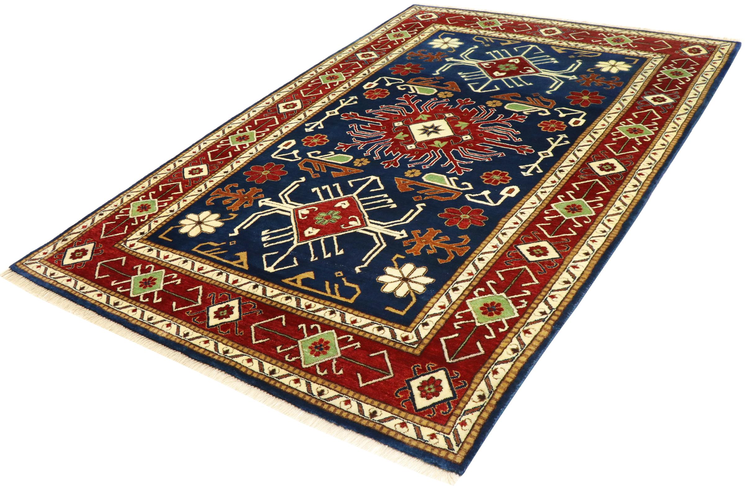 Dette håndknyttede Kazak er håndknyttet i stil med kaukasiske tæpper og imponerer med sin høje robusthed og levende farver. Det afspejler således kulturen i Kaukasus i en smuk komposition. En kultur, der i århundreder har mestret kunsten at væve tæpper og præsenterer den for omverdenen med charmerende enkle former i imponerende levende farver.