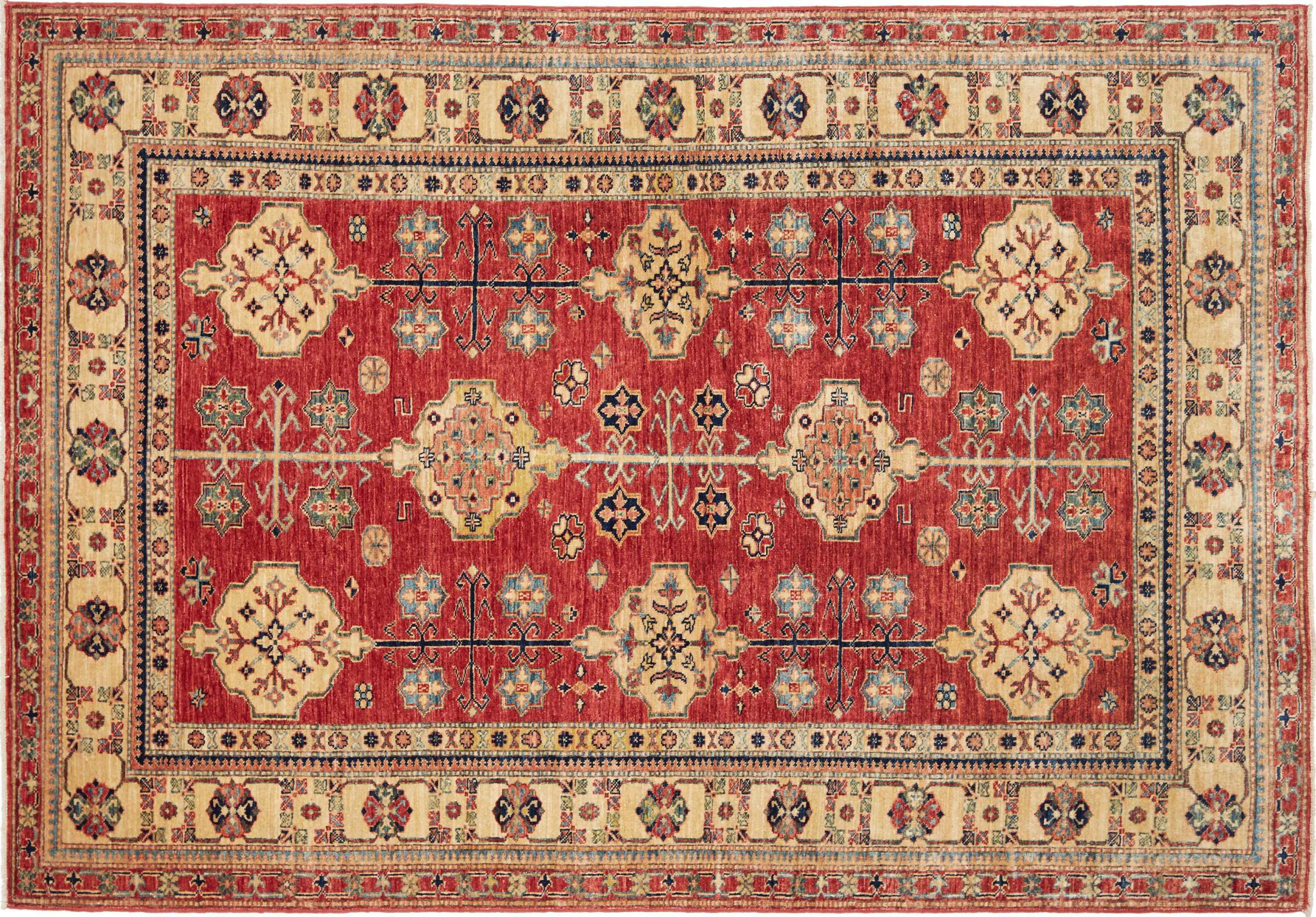 Dette håndknyttede Kazak er håndknyttet i stil med kaukasiske tæpper og imponerer med sin høje robusthed og levende farver. Det afspejler således kulturen i Kaukasus i en smuk komposition. En kultur, der i århundreder har mestret kunsten at væve tæpper og præsenterer den for omverdenen med charmerende enkle former i imponerende levende farver.