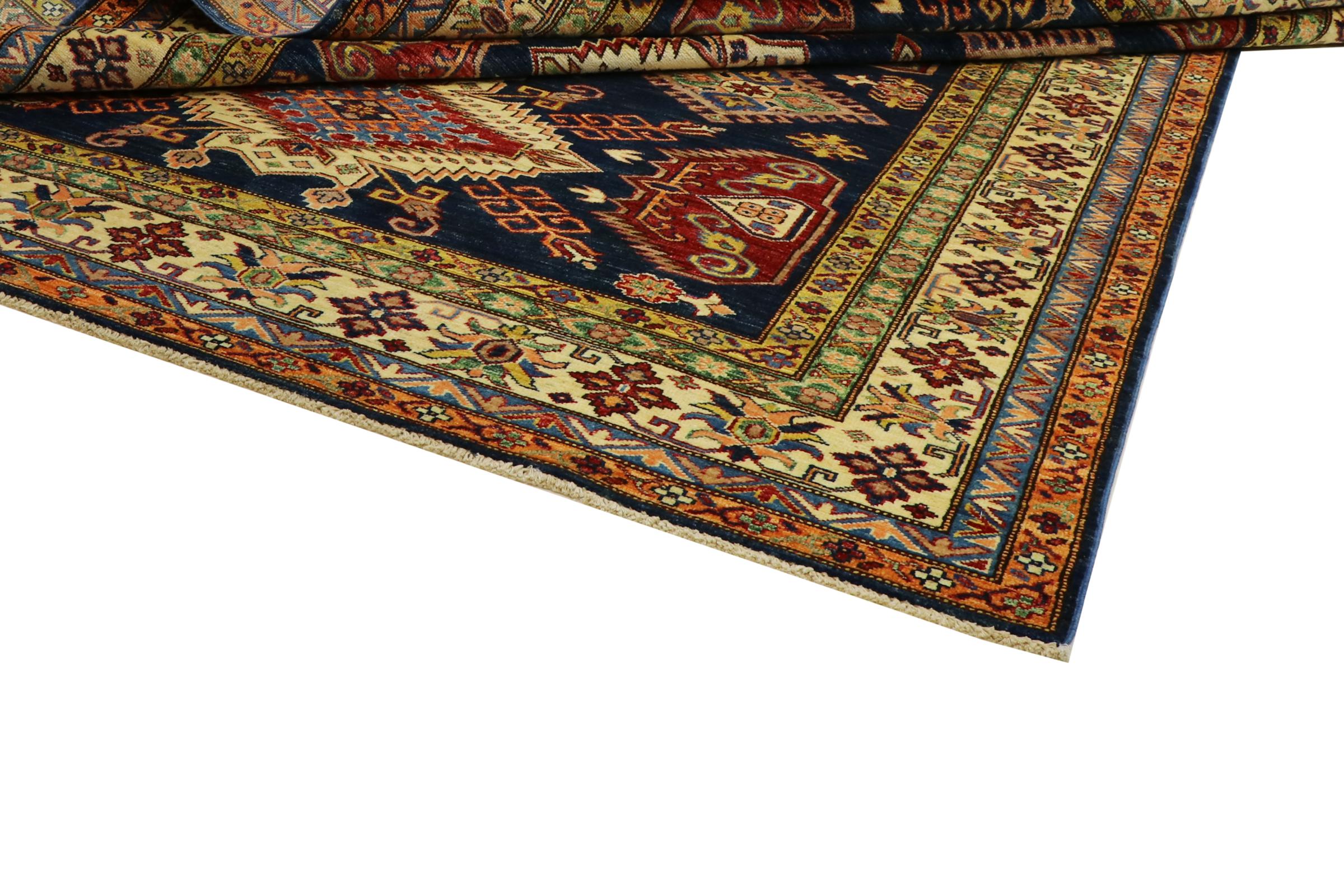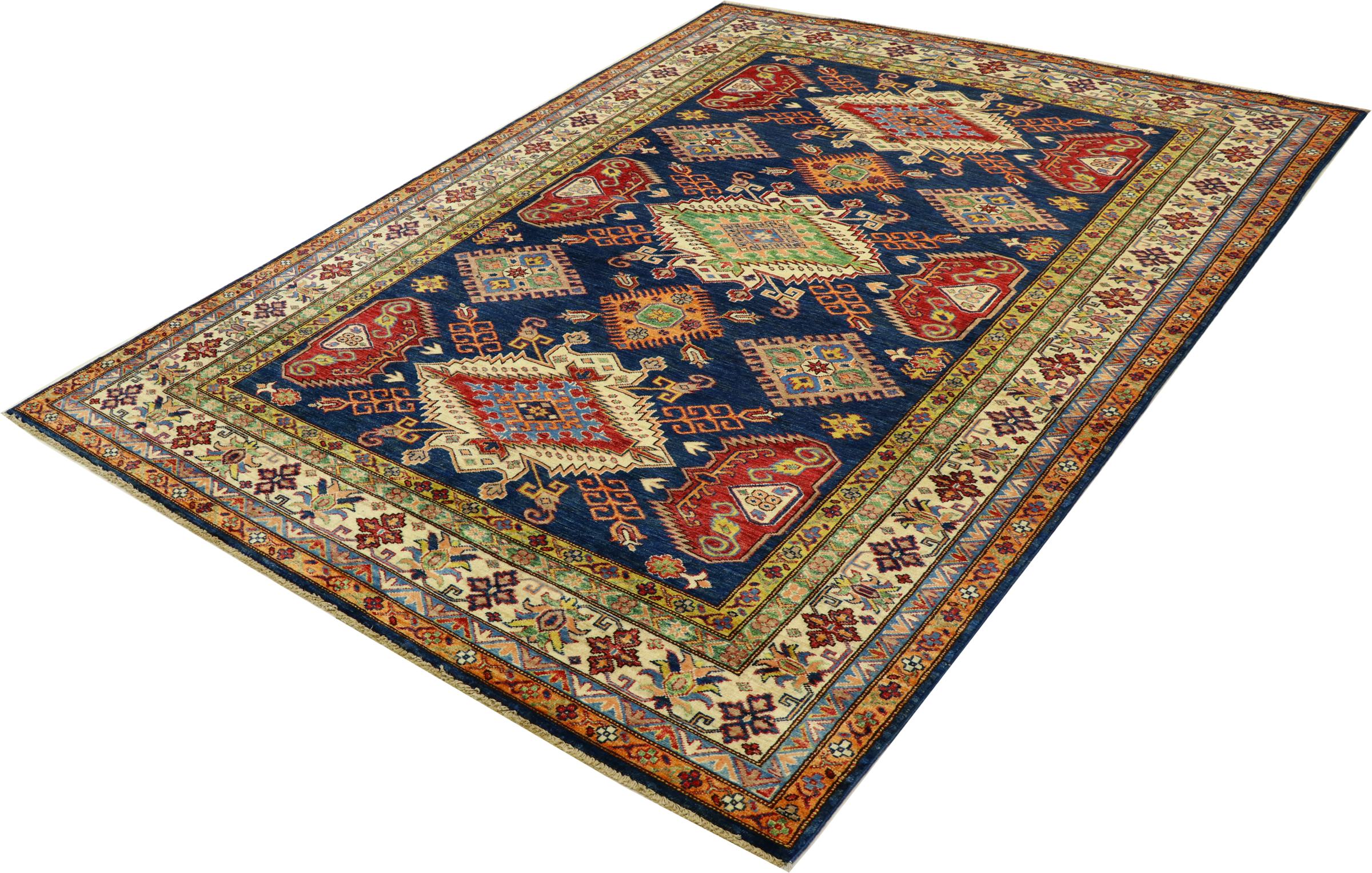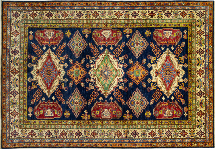Dette håndknyttede Kazak er håndknyttet i stil med kaukasiske tæpper og imponerer med sin høje robusthed og levende farver. Det afspejler således kulturen i Kaukasus i en smuk komposition. En kultur, der i århundreder har mestret kunsten at væve tæpper og præsenterer den for omverdenen med charmerende enkle former i imponerende levende farver.