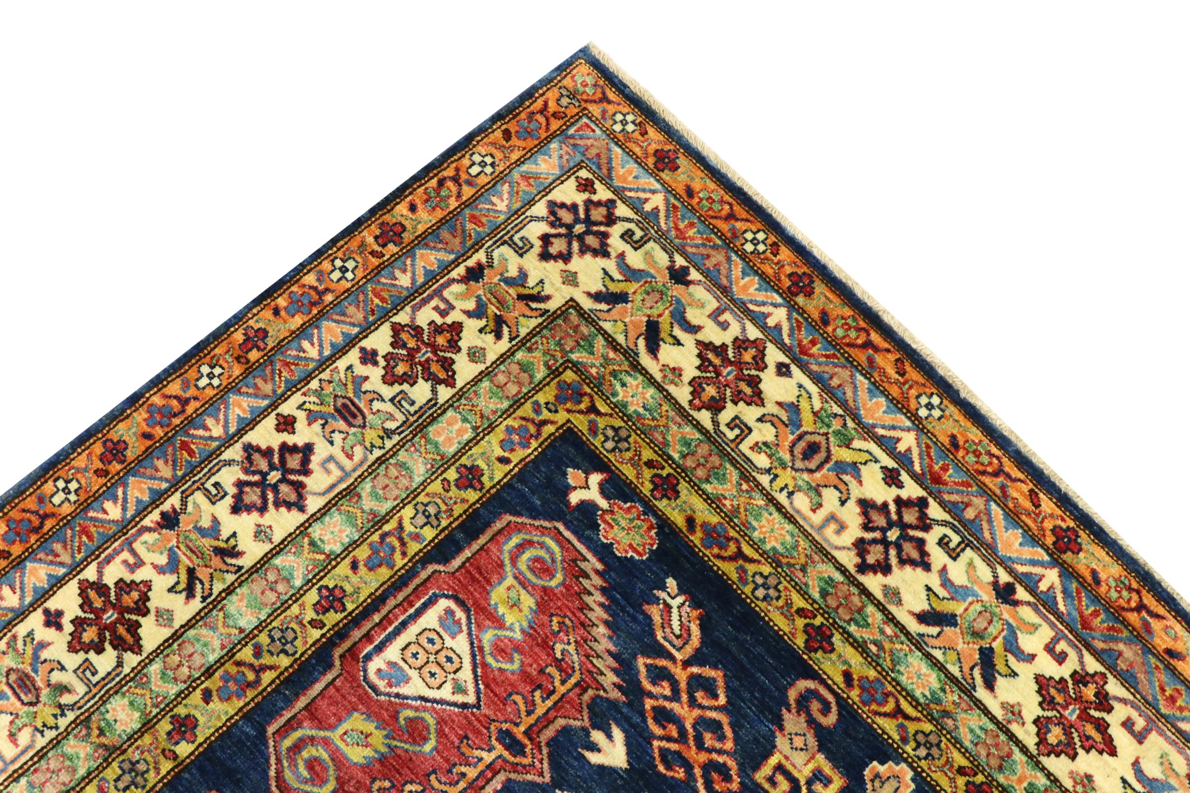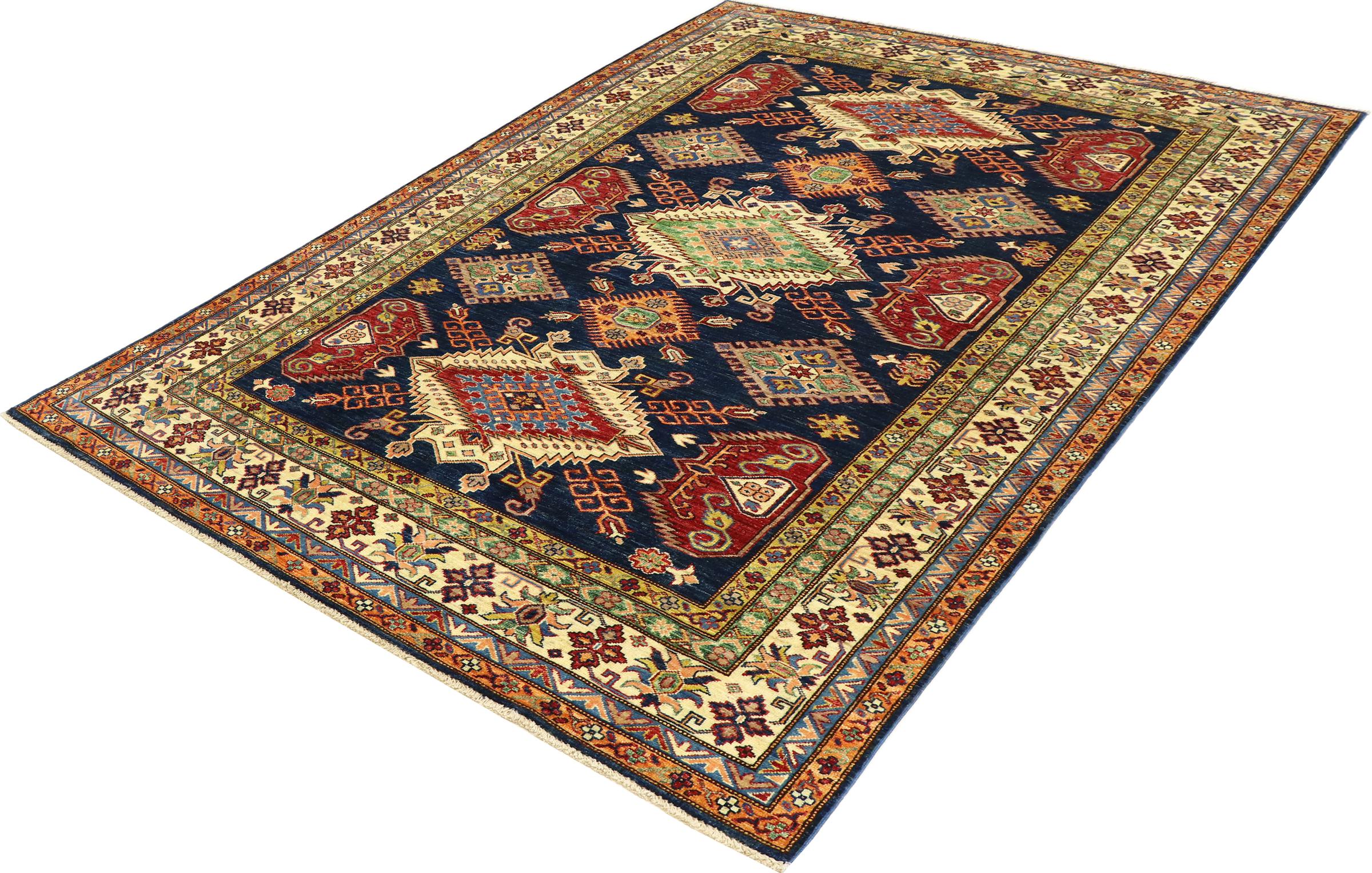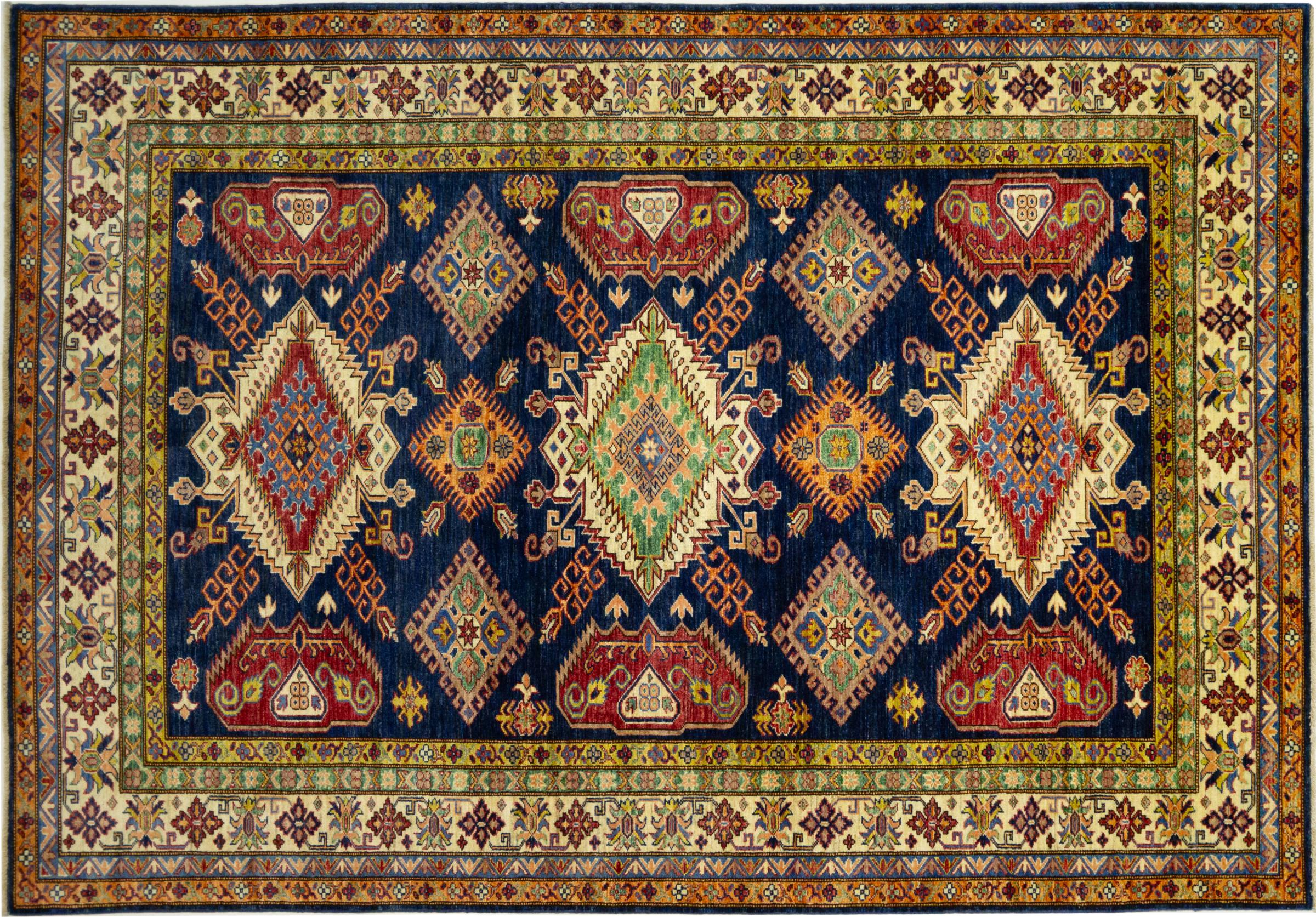 Dette håndknyttede Kazak er håndknyttet i stil med kaukasiske tæpper og imponerer med sin høje robusthed og levende farver. Det afspejler således kulturen i Kaukasus i en smuk komposition. En kultur, der i århundreder har mestret kunsten at væve tæpper og præsenterer den for omverdenen med charmerende enkle former i imponerende levende farver.