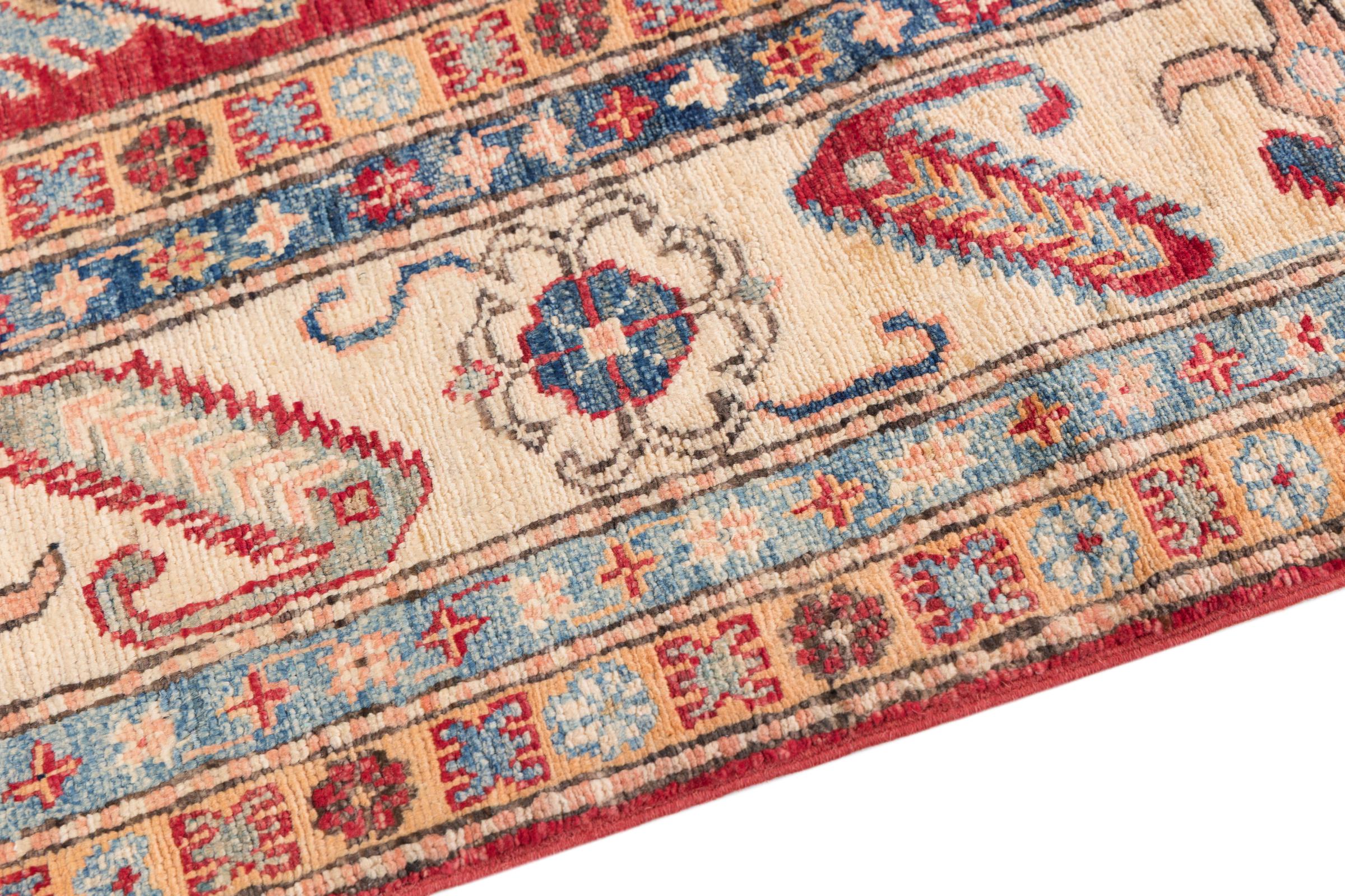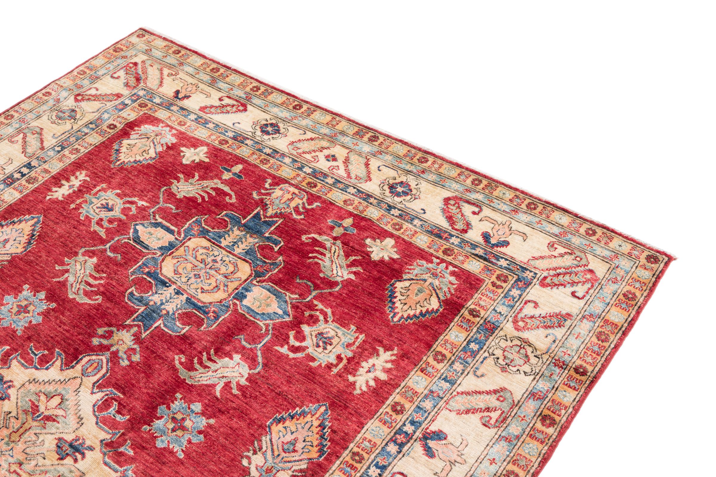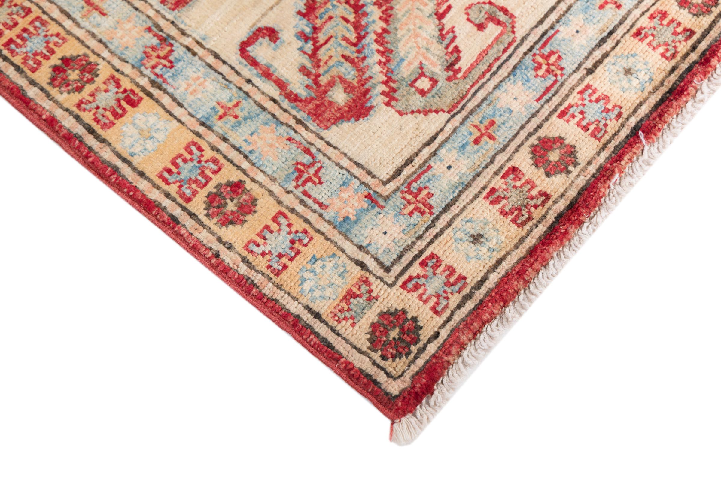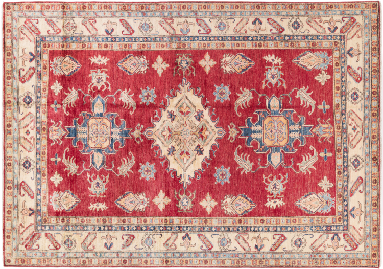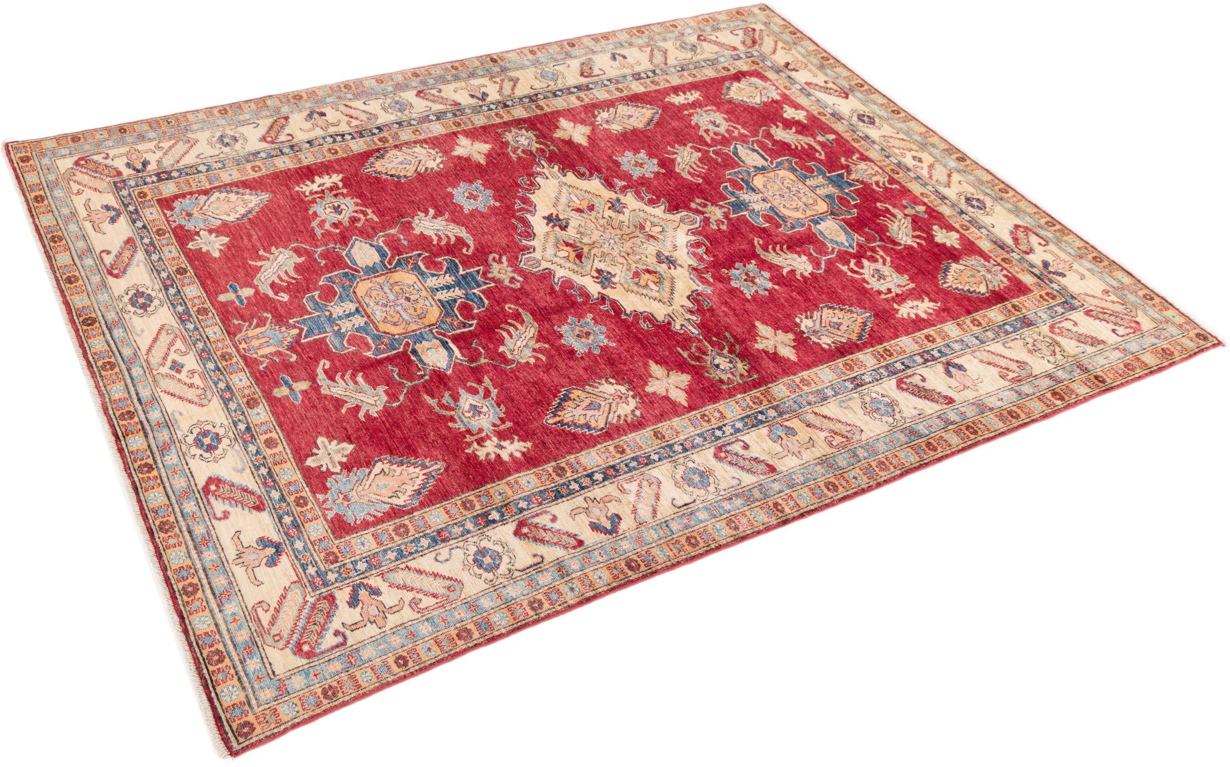 Dette håndknyttede Kazak er håndknyttet i stil med kaukasiske tæpper og imponerer med sin høje robusthed og levende farver. Det afspejler således kulturen i Kaukasus i en smuk komposition. En kultur, der i århundreder har mestret kunsten at væve tæpper og præsenterer den for omverdenen med charmerende enkle former i imponerende levende farver.
