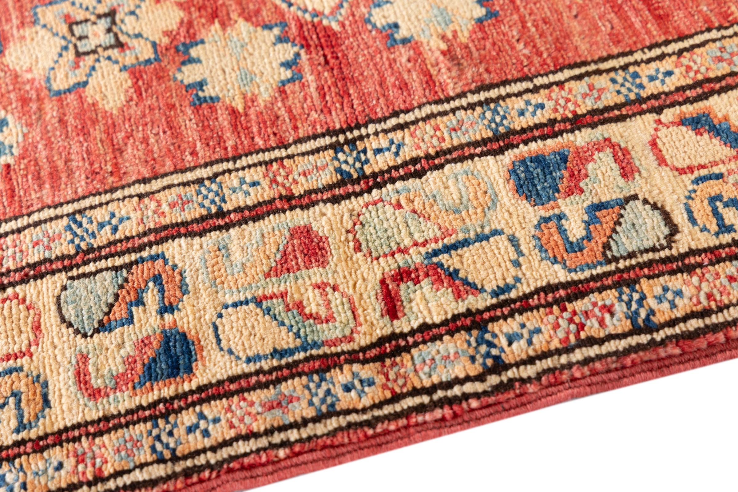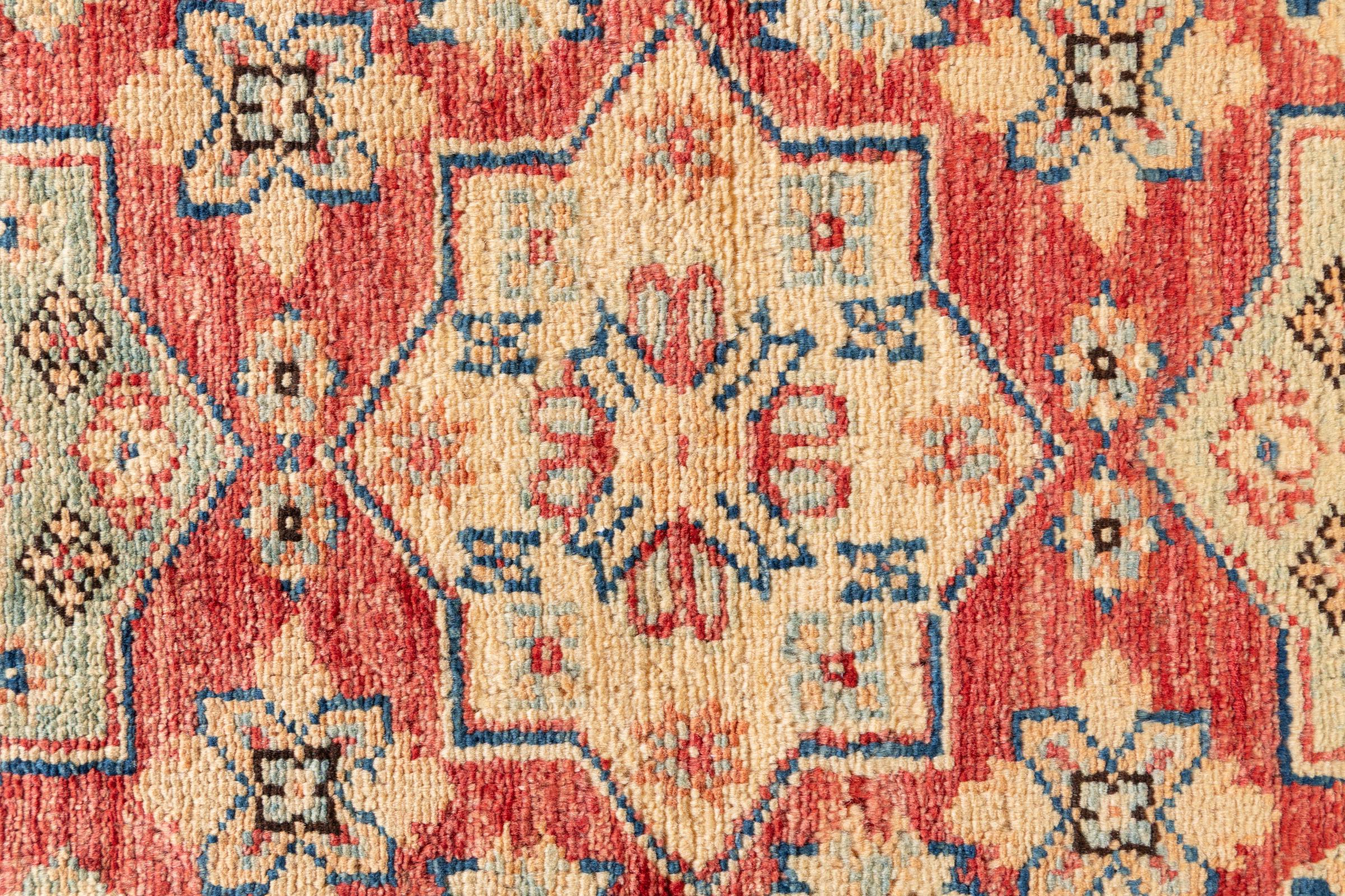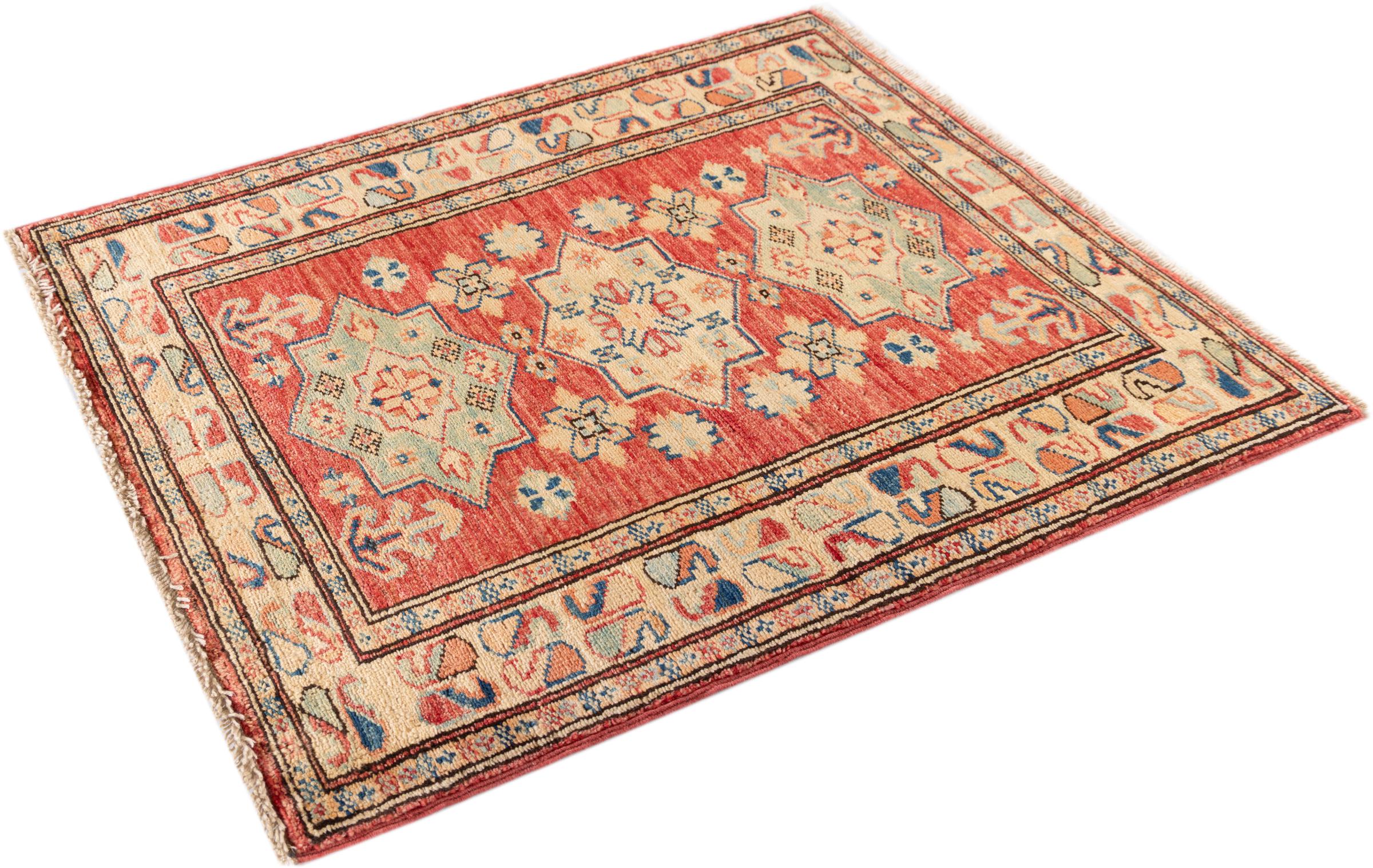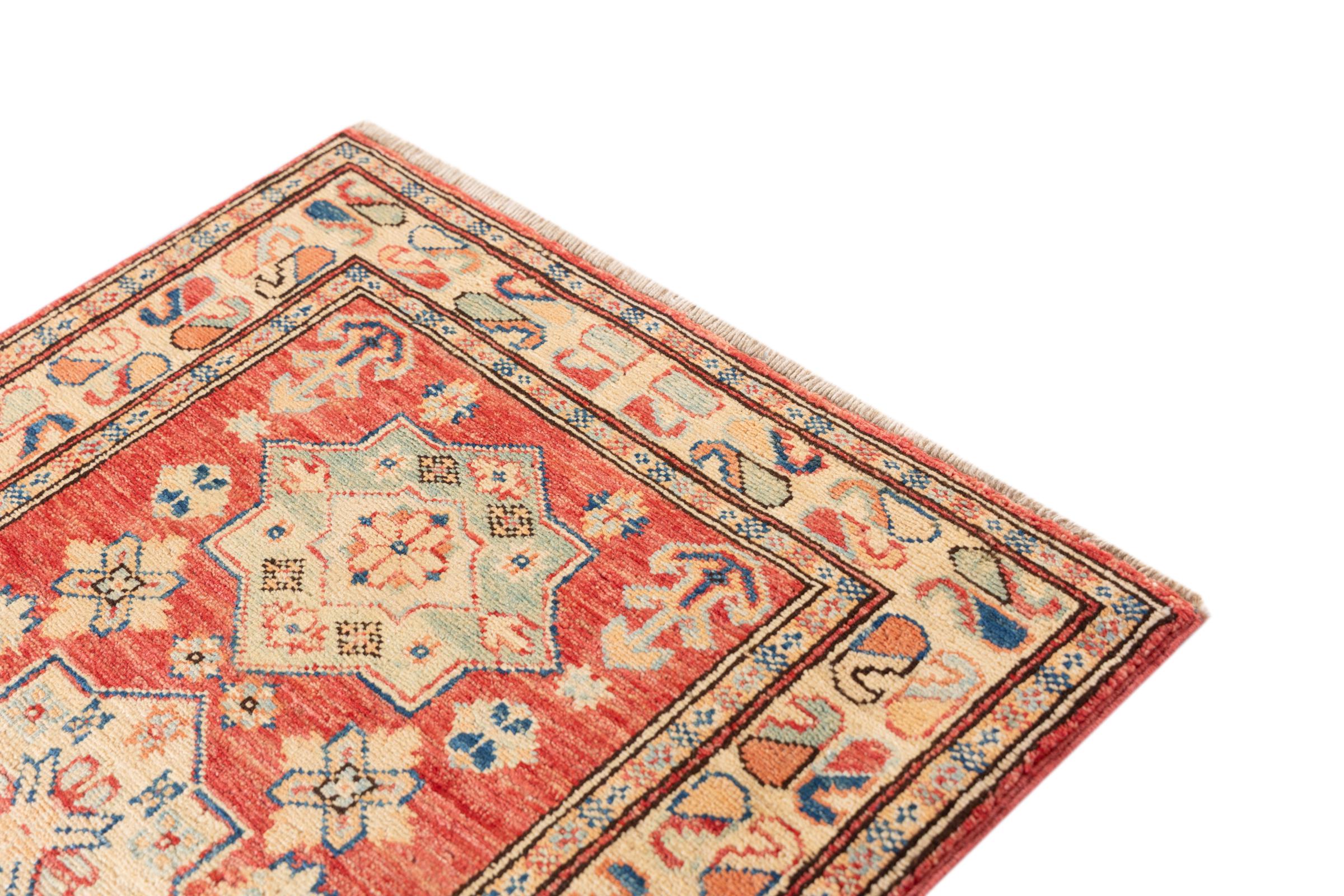Dette håndknyttede Kazak er håndknyttet i stil med kaukasiske tæpper og imponerer med sin høje robusthed og levende farver. Det afspejler således kulturen i Kaukasus i en smuk komposition. En kultur, der i århundreder har mestret kunsten at væve tæpper og præsenterer den for omverdenen med charmerende enkle former i imponerende levende farver.