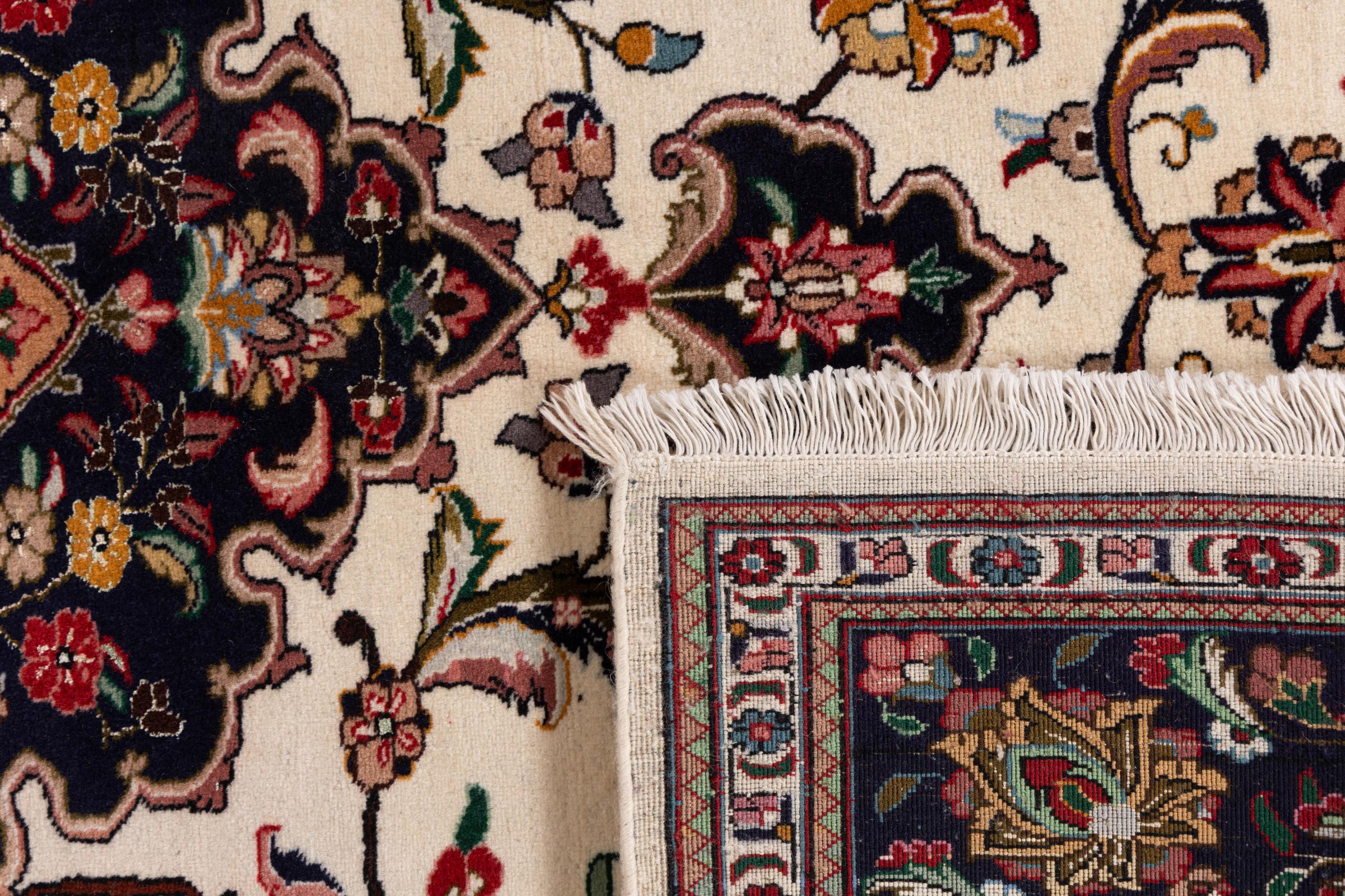 Tæppe-nr.: 31255004997797 Størrelse: 195x154 cm Tykkelse: ca. 12 mm Knuder: 320 000 - 360 000 / m² Forarbejdelse: Knyttet i hånden Luv: Uld med silke Kæde: Uld Oprindelse: Persien / Iran Alder: Ny Vægt: ca. 12 kg Også kendt som Tabris, Tabriz, Tebris, Tebriz, Täbris, Village Antal på lager: Unik - Kun 1 tilbage på lager