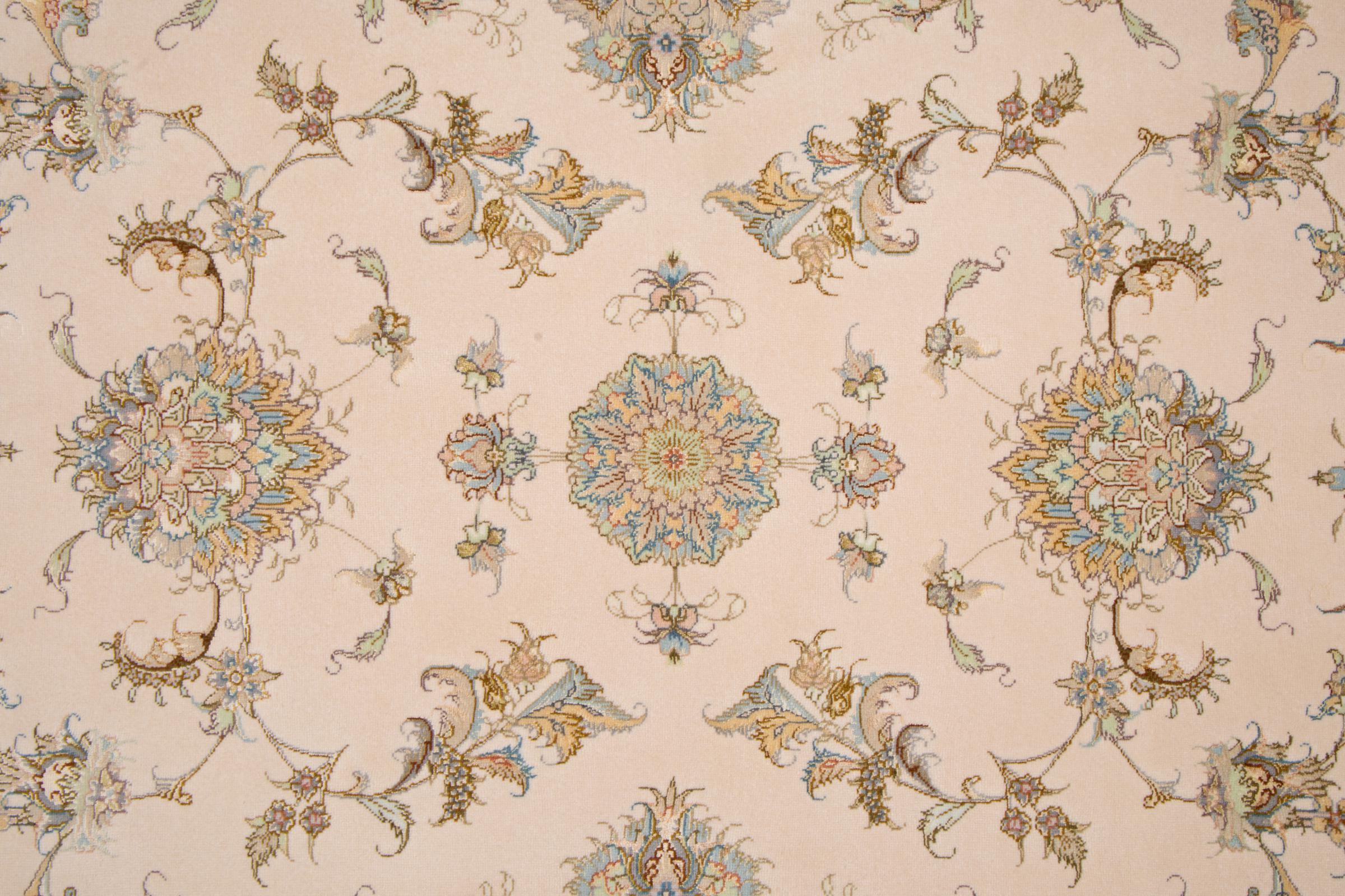 Tæppe-nr.: 293097009949022 Størrelse: 281x228 cm Tykkelse: ca. 10 mm Knuder: 320 000 - 360 000 / m² Forarbejdelse: Knyttet i hånden Luv: Uld med silke Kæde: Bomuld Oprindelse: Persien / Iran Alder: Ny Vægt: ca. 22 kg Også kendt som Tabris, Tabriz, Tebris, Tebriz, Täbris, Village Antal på lager: Unik - Kun 1 tilbage på lager