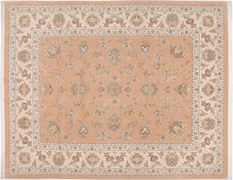 Tæppe-nr.: 293104003228416 Størrelse: 289x228 cm Tykkelse: ca. 10 mm Knuder: 320 000 - 360 000 / m² Forarbejdelse: Knyttet i hånden Luv: Uld med silke Kæde: Bomuld Oprindelse: Persien / Iran Alder: Ny Vægt: ca. 23 kg Også kendt som Tabris, Tabriz, Tebris, Tebriz, Täbris, Village Antal på lager: Unik - Kun 1 tilbage på lager