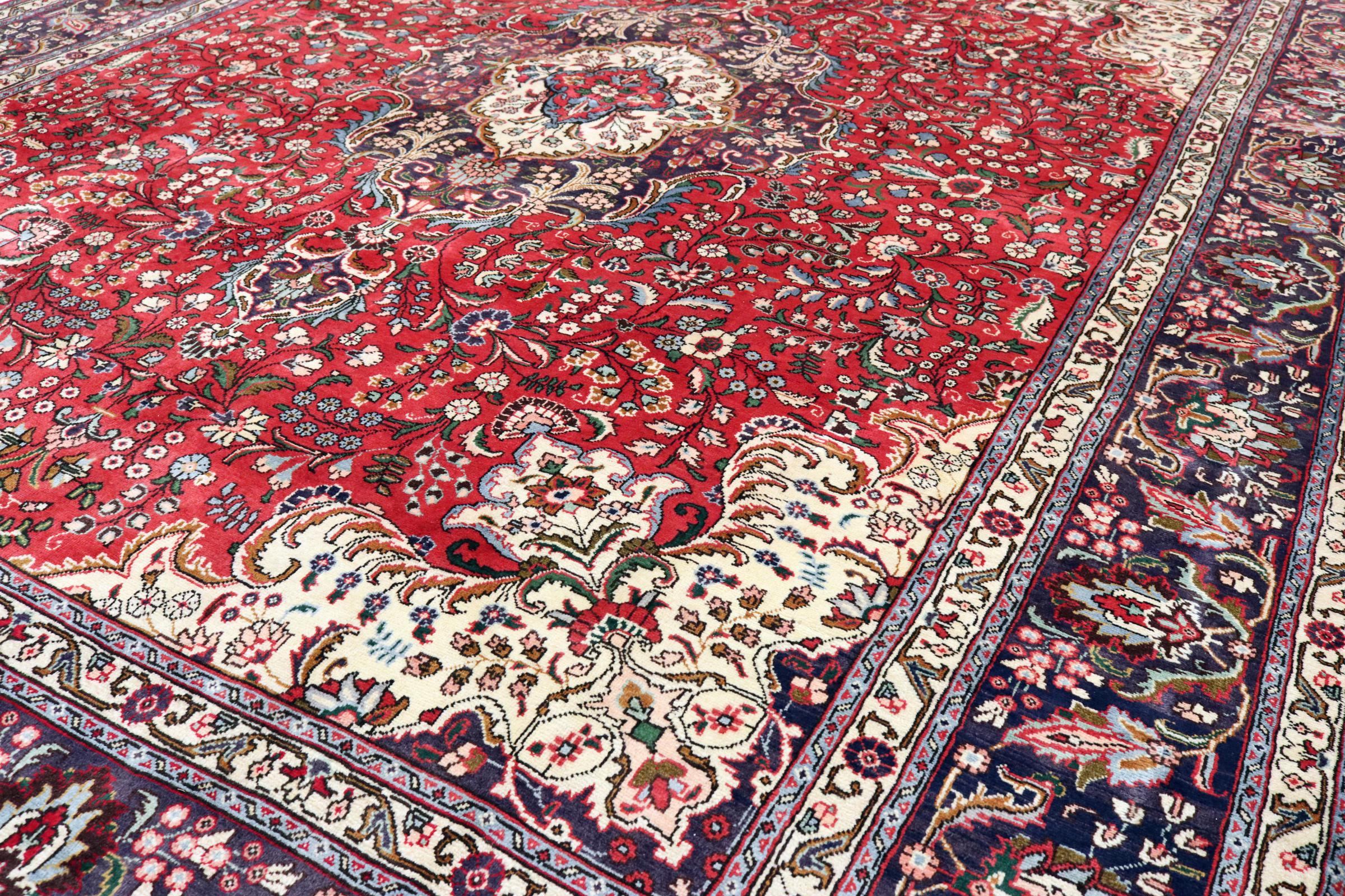 Tæppe-nr.: 128241009528819 Størrelse: 396x294 cm Tykkelse: ca. 10 mm Knuder: 200 000 - 250 000 / m² Forarbejdelse: Knyttet i hånden Luv: Håndspunden uld Kæde: Uld Oprindelse: Persien / Iran Alder: Ny Vægt: ca. 41 kg Også kendt som Tabris, Tabriz, Tebris, Tebriz, Täbris, Village Antal på lager: Unik - Kun 1 tilbage på lager