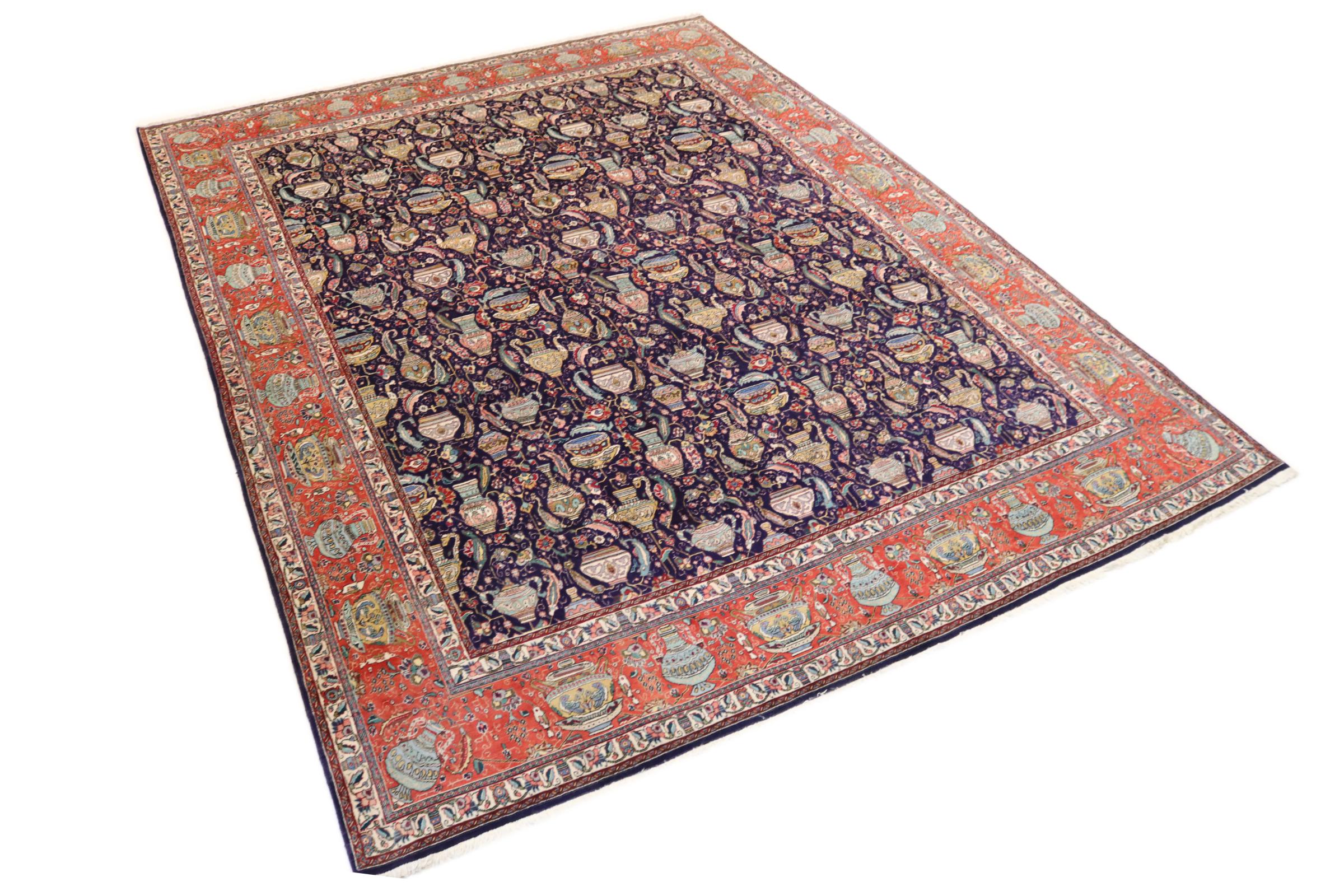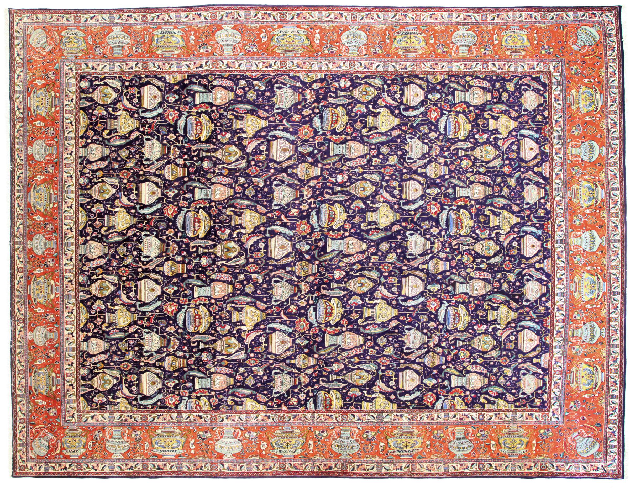 Tæppe-nr.: 167874007596700 Størrelse: 416x319 cm Tykkelse: ca. 10 mm Knuder: 128 000 - 160 000 / m² Forarbejdelse: Knyttet i hånden Luv: Håndspunden uld Kæde: Bomuld Oprindelse: Persien / Iran Alder: Ny Vægt: ca. 46 kg Også kendt som Tabris, Tabriz, Tebris, Tebriz, Täbris, Village Antal på lager: Unik - Kun 1 tilbage på lager