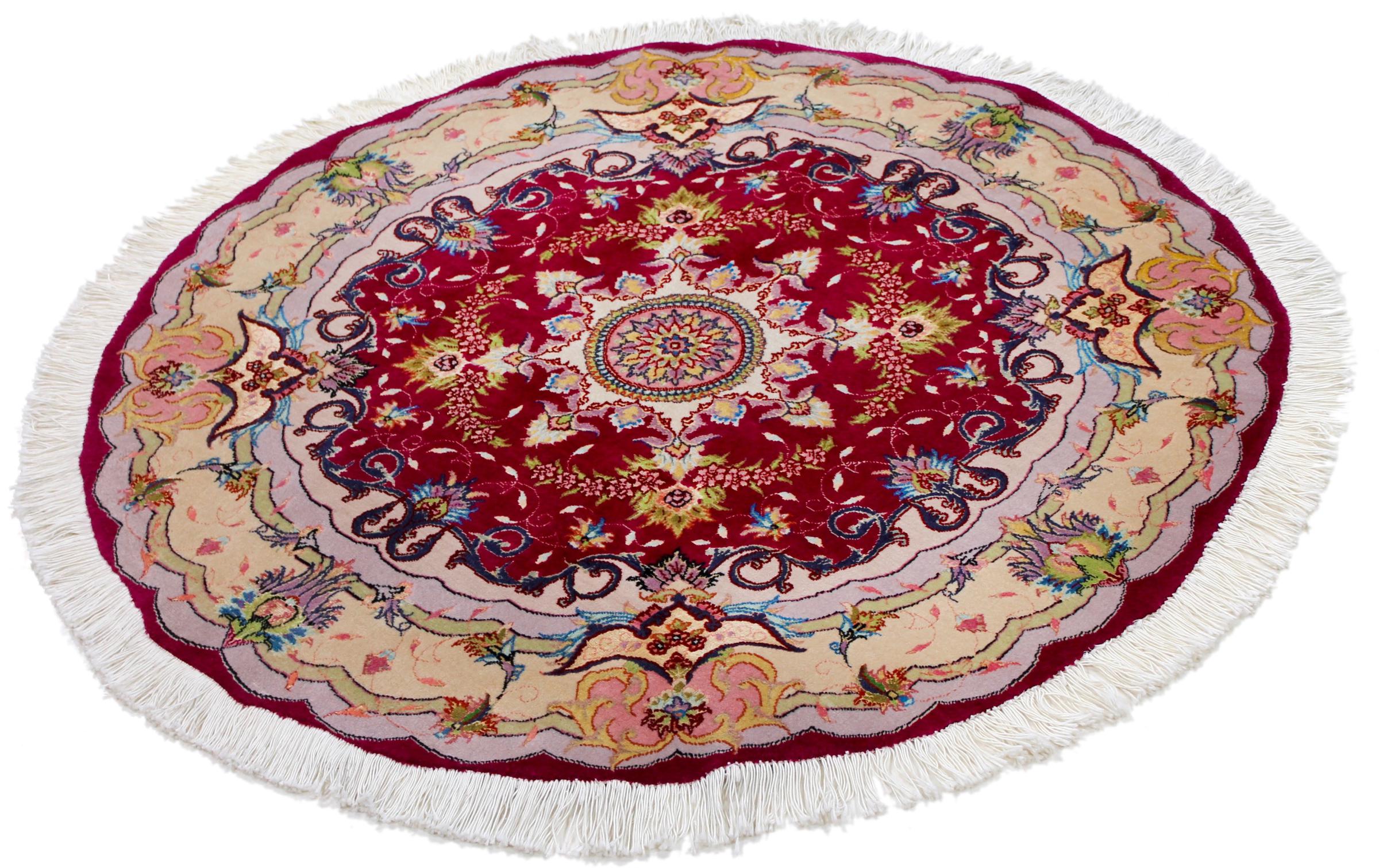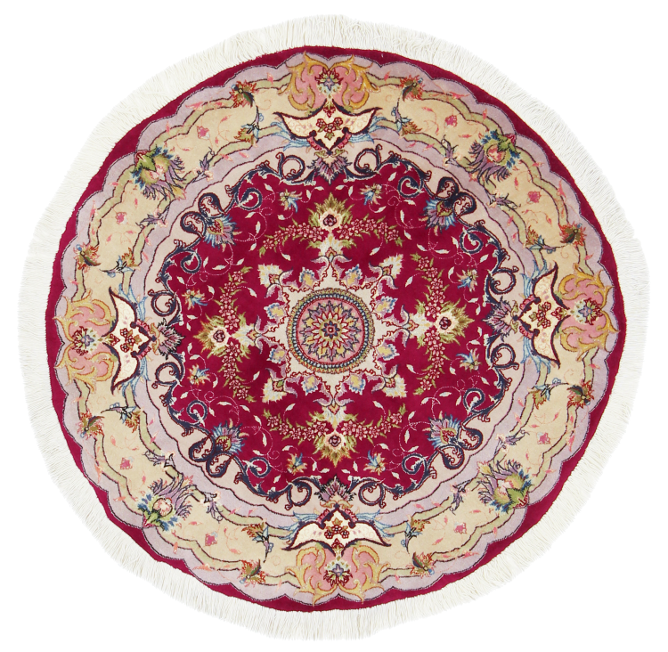 Tæppe-nr.: 165123007963578 Størrelse: 104x104 cm Tykkelse: ca. 7 mm Knuder: 440 000 - 490 000 / m² Forarbejdelse: Knyttet i hånden Luv: Uld med silke Kæde: Bomuld Oprindelse: Persien / Iran Alder: Ny Vægt: ca. 3 kg Også kendt som Tabriz, Tabris, Täbris, Tebriz, Tebris, 40Raj, 50Raj Antal på lager: Unik - Kun 1 tilbage på lager