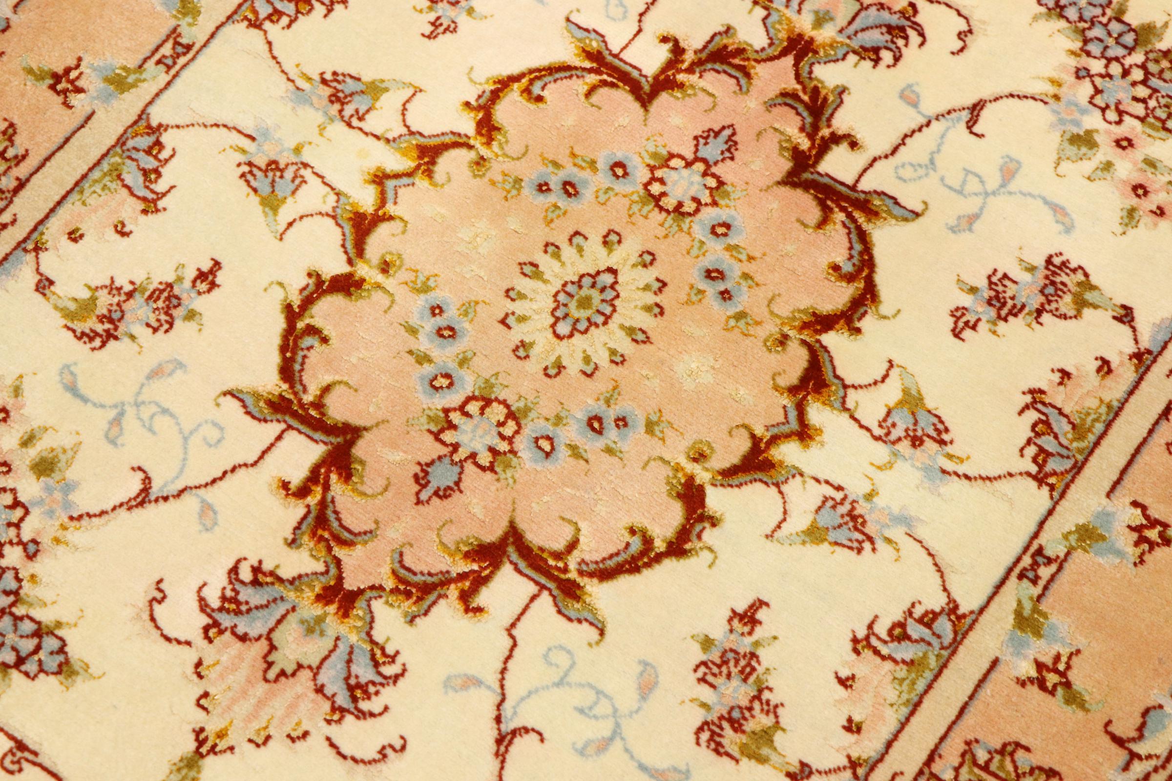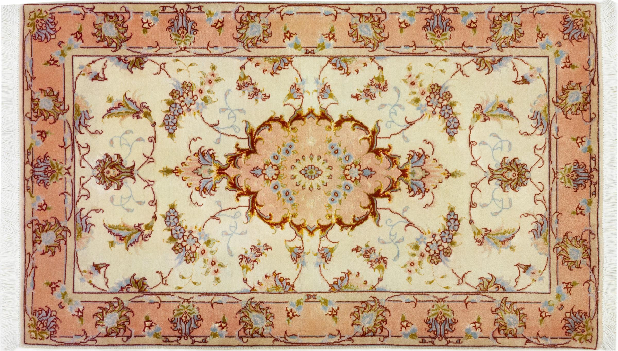 Tæppe-nr.: 303306004501263 Størrelse: 114x68 cm Tykkelse: ca. 5 mm Knuder: 440 000 - 490 000 / m² Forarbejdelse: Knyttet i hånden Luv: Korkuld med silke Kæde: Bomuld Oprindelse: Persien / Iran Alder: Ny Vægt: ca. 3 kg Også kendt som Tabriz, Tabris, Täbris, Tebriz, Tebris, 40Raj, 50Raj Antal på lager: Unik - Kun 1 tilbage på lager