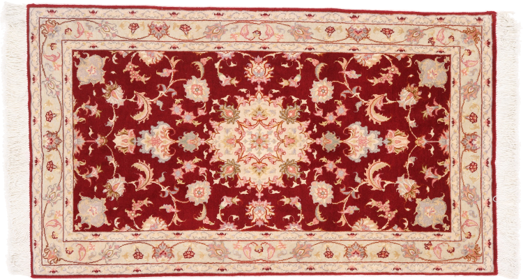 Tæppe-nr.: 35231005715498 Størrelse: 117x65 cm Tykkelse: ca. 7 mm Knuder: 450 000 - 500 000 / m² Forarbejdelse: Knyttet i hånden Luv: Uld med silke Kæde: Bomuld Oprindelse: Persien / Iran Alder: Ny Vægt: ca. 2 kg Også kendt som Tabriz, Tabris, Täbris, Tebriz, Tebris, 40Raj, 50Raj Antal på lager: Unik - Kun 1 tilbage på lager