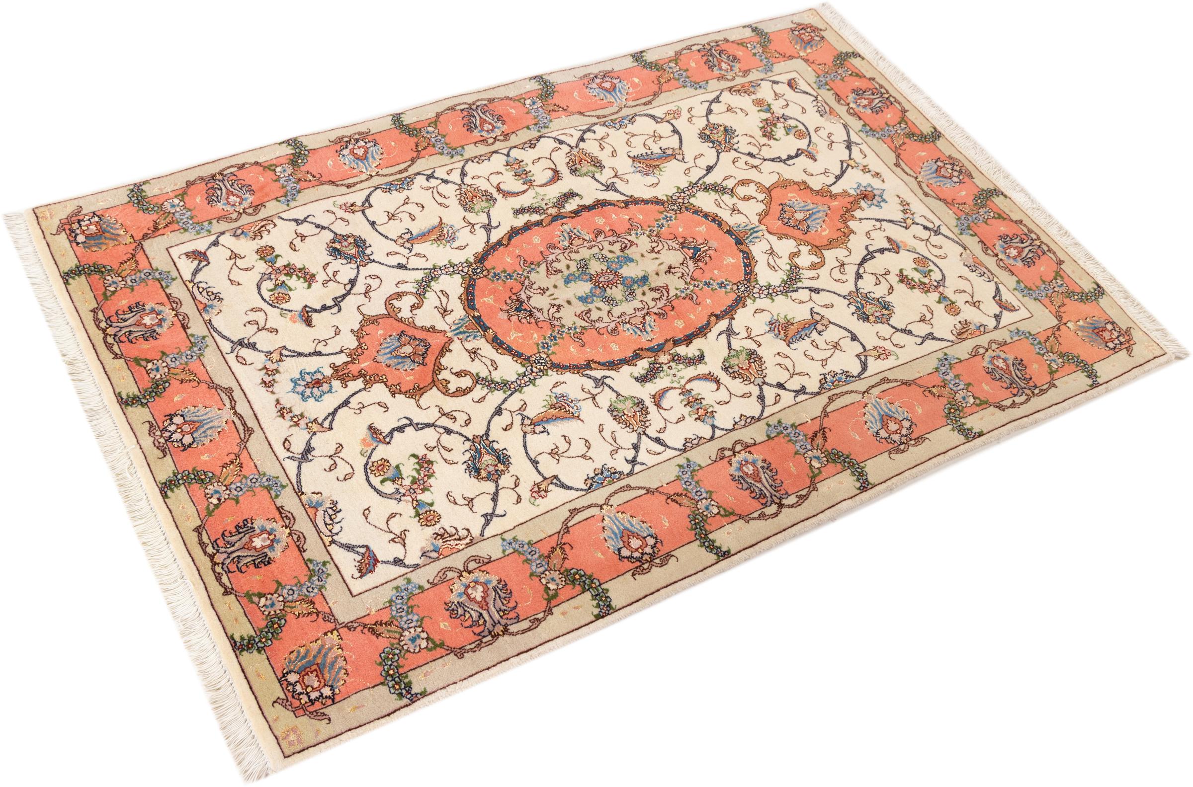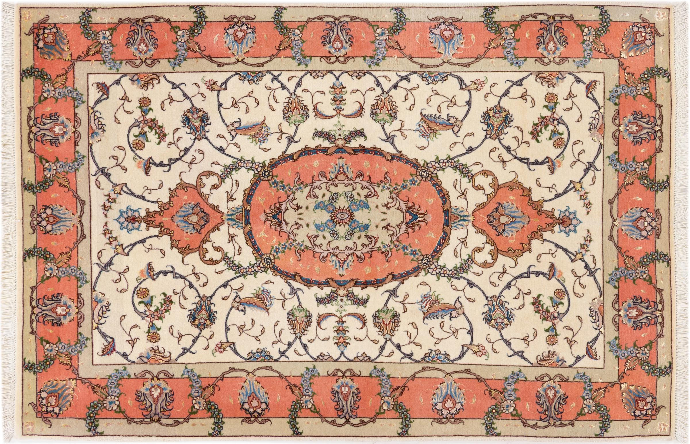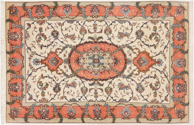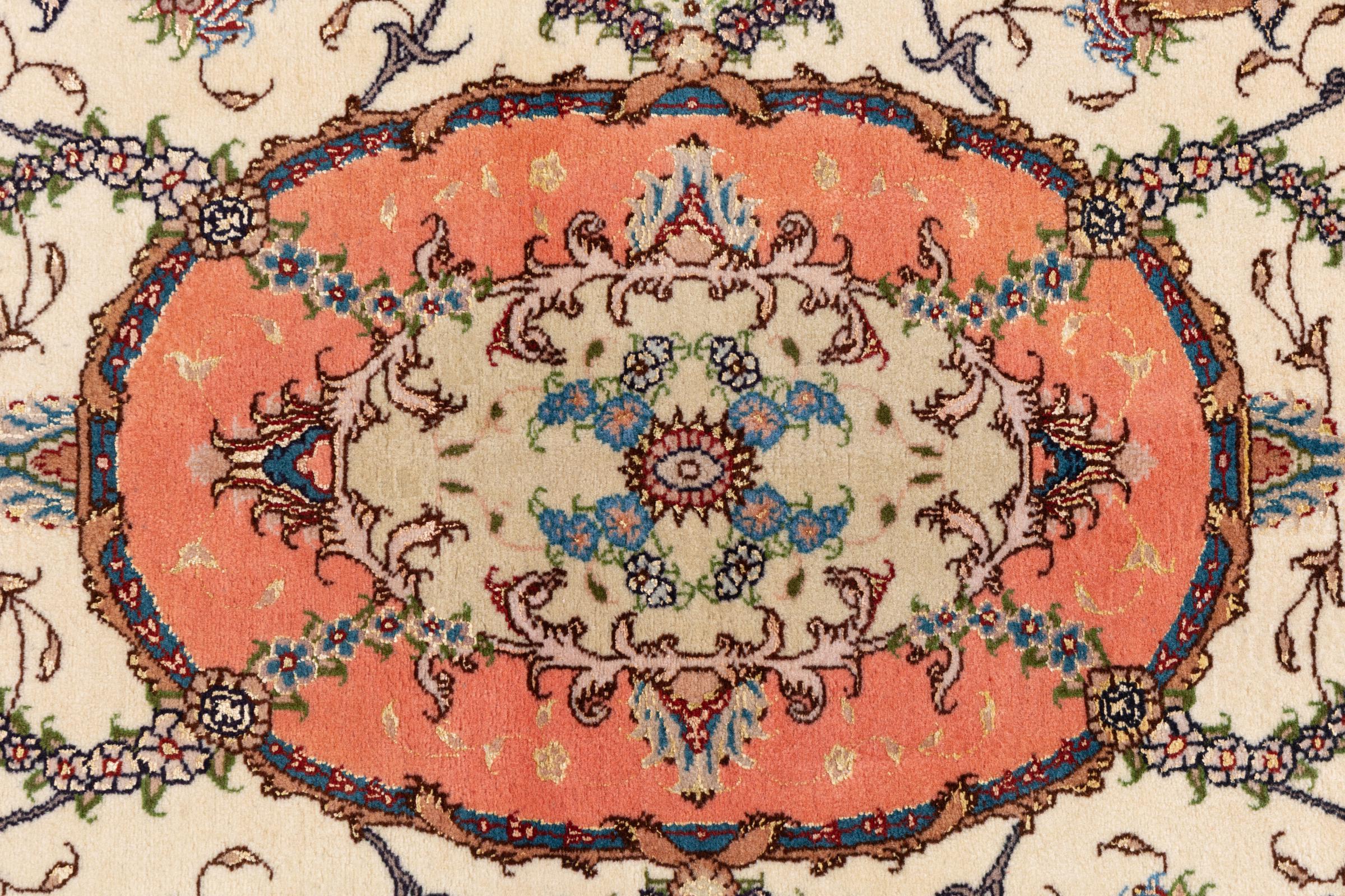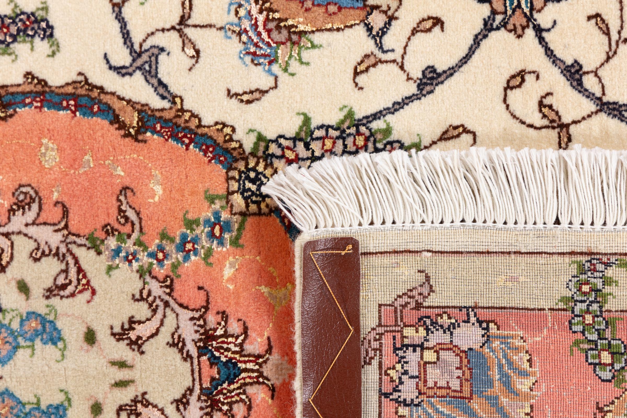 Tæppe-nr.: 24680015602 Størrelse: 144x100 cm Tykkelse: ca. 9 mm Knuder: 450 000 - 500 000 / m² Forarbejdelse: Knyttet i hånden Luv: Uld med silke Kæde: Bomuld Oprindelse: Persien / Iran Alder: Ny Vægt: ca. 4 kg Også kendt som Tabriz, Tabris, Täbris, Tebriz, Tebris, 40Raj, 50Raj Antal på lager: Unik - Kun 1 tilbage på lager