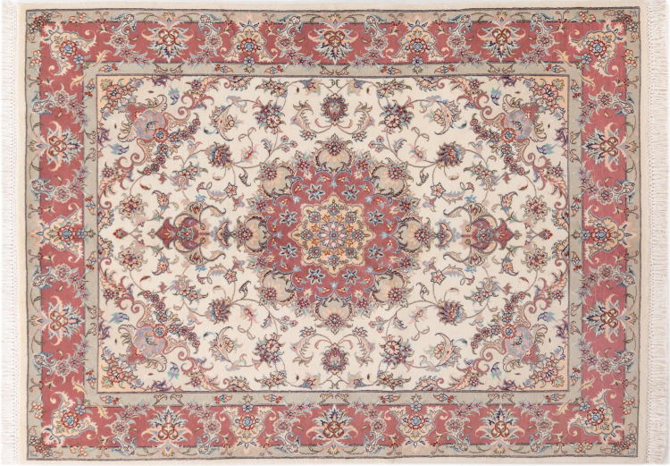 Tæppe-nr.: 2777000101 Størrelse: 204x148 cm Tykkelse: ca. 9 mm Knuder: 450 000 - 500 000 / m² Forarbejdelse: Knyttet i hånden Luv: Håndspunden uld Kæde: Bomuld Oprindelse: Persien / Iran Alder: Ny Vægt: ca. 8 kg Også kendt som Tabriz, Tabris, Täbris, Tebriz, Tebris, 40Raj, 50Raj Antal på lager: Unik - Kun 1 tilbage på lager