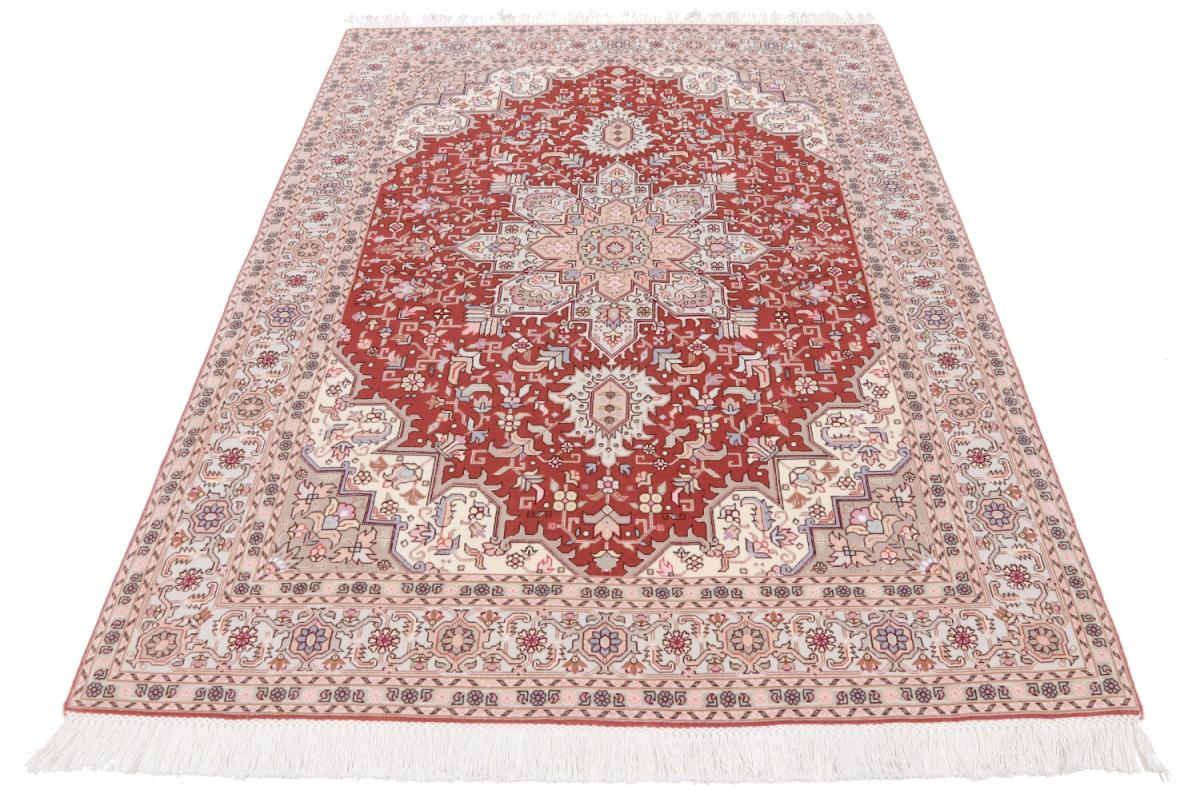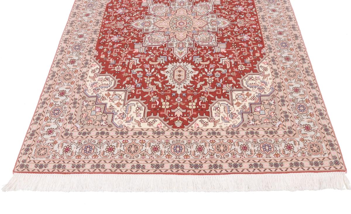 Tæppe-nr.: 40120055876 Størrelse: 204x152 cm Tykkelse: ca. 7 mm Knuder: 450 000 - 500 000 / m² Forarbejdelse: Knyttet i hånden Luv: Uld med silke Kæde: Bomuld Oprindelse: Persien / Iran Alder: Ny Vægt: ca. 9 kg Også kendt som Tabriz, Tabris, Täbris, Tebriz, Tebris, 40Raj, 50Raj Antal på lager: Unik - Kun 1 tilbage på lager