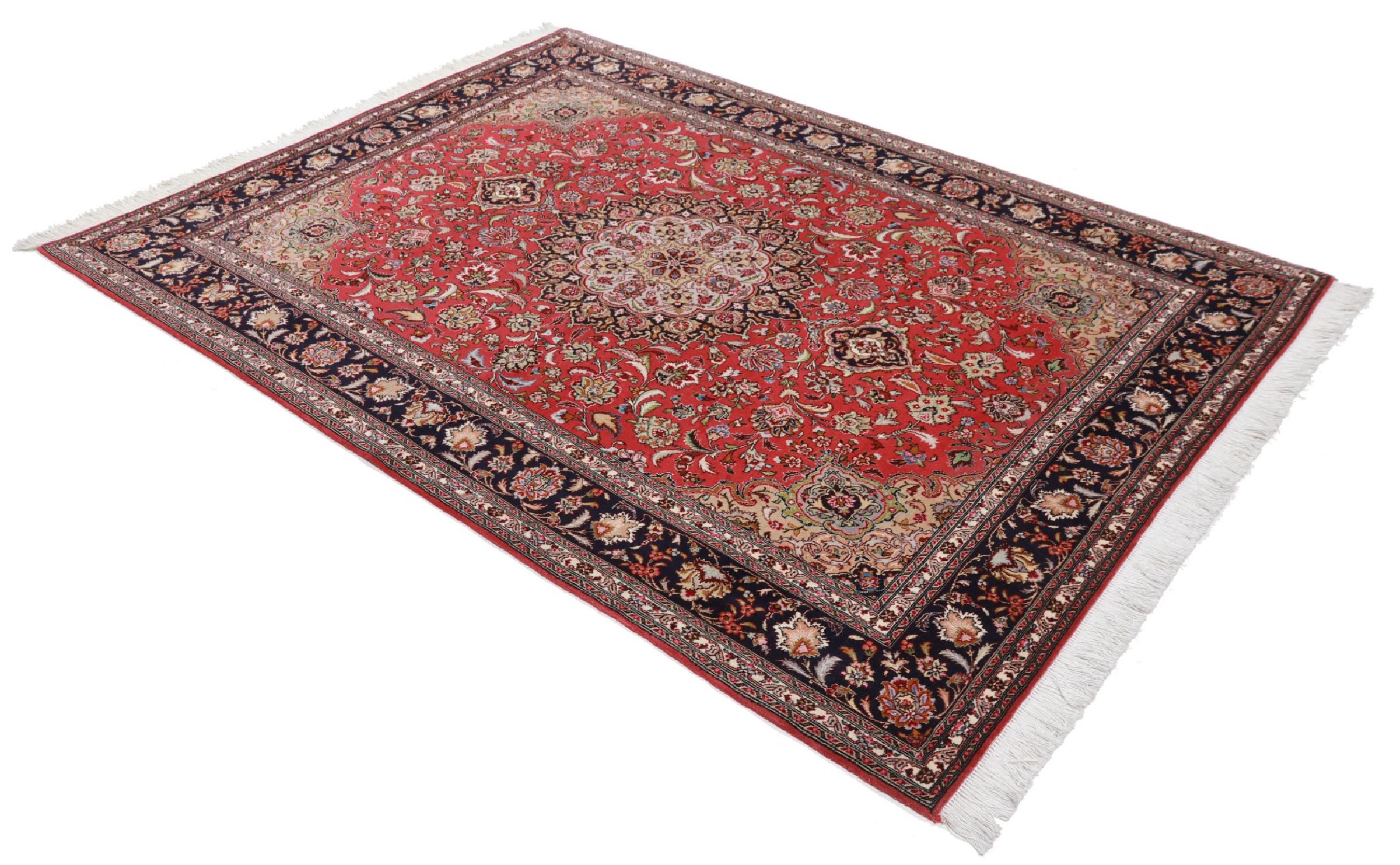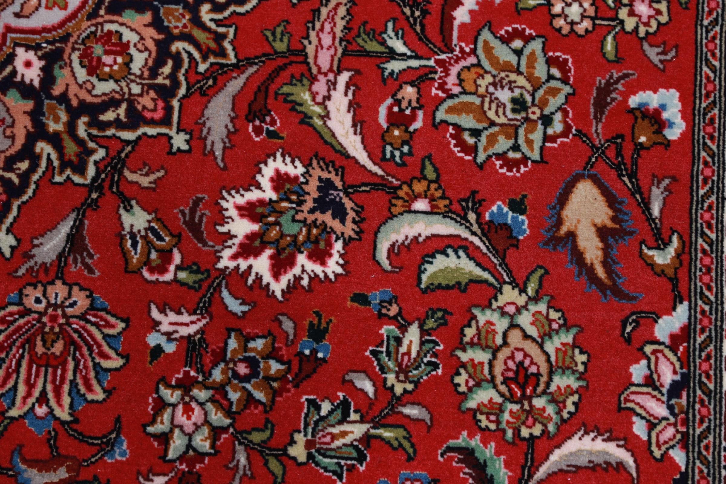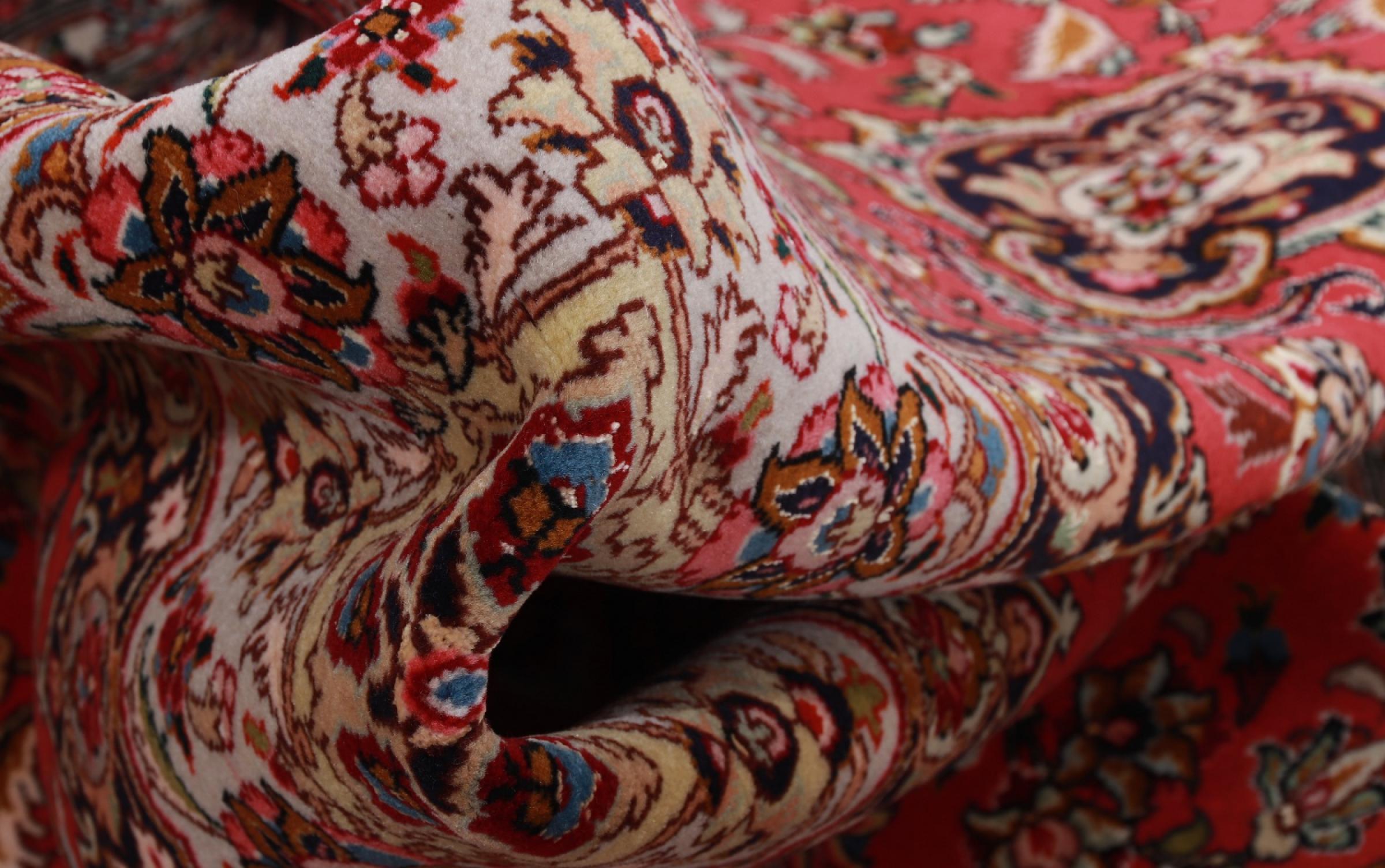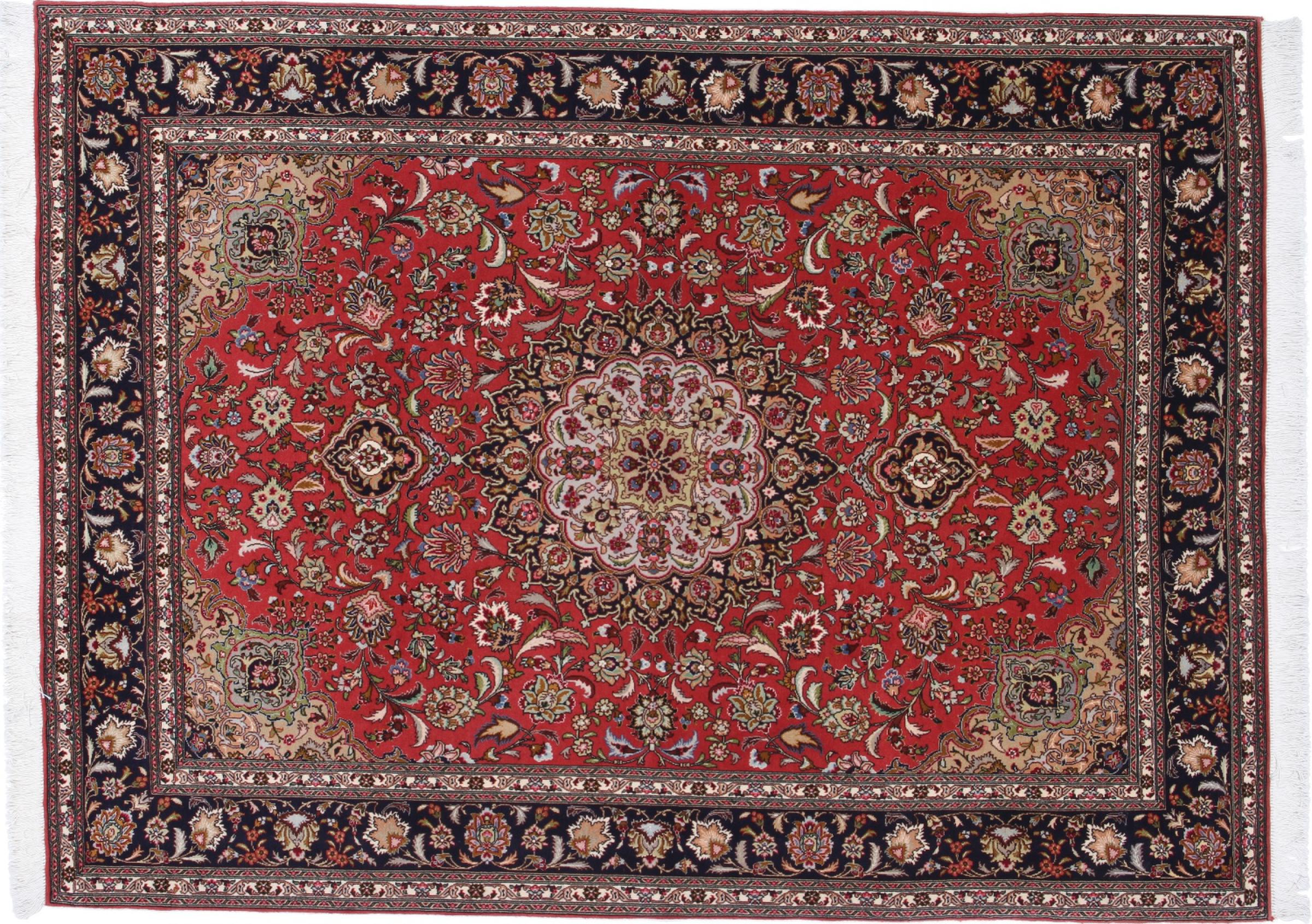 Tæppe-nr.: 41730049639 Størrelse: 212x156 cm Tykkelse: ca. 9 mm Knuder: 450 000 - 500 000 / m² Forarbejdelse: Knyttet i hånden Luv: Uld med silke Kæde: Bomuld Oprindelse: Persien / Iran Alder: Ny Vægt: ca. 8 kg Også kendt som Tabriz, Tabris, Täbris, Tebriz, Tebris, 40Raj, 50Raj Antal på lager: Unik - Kun 1 tilbage på lager