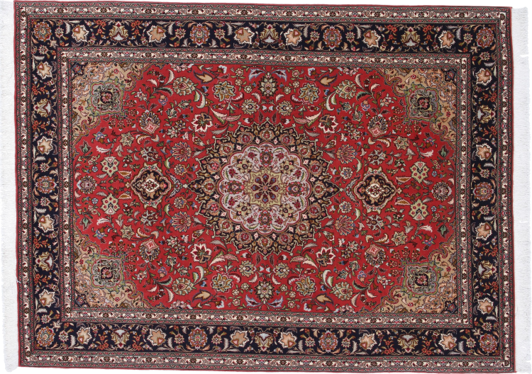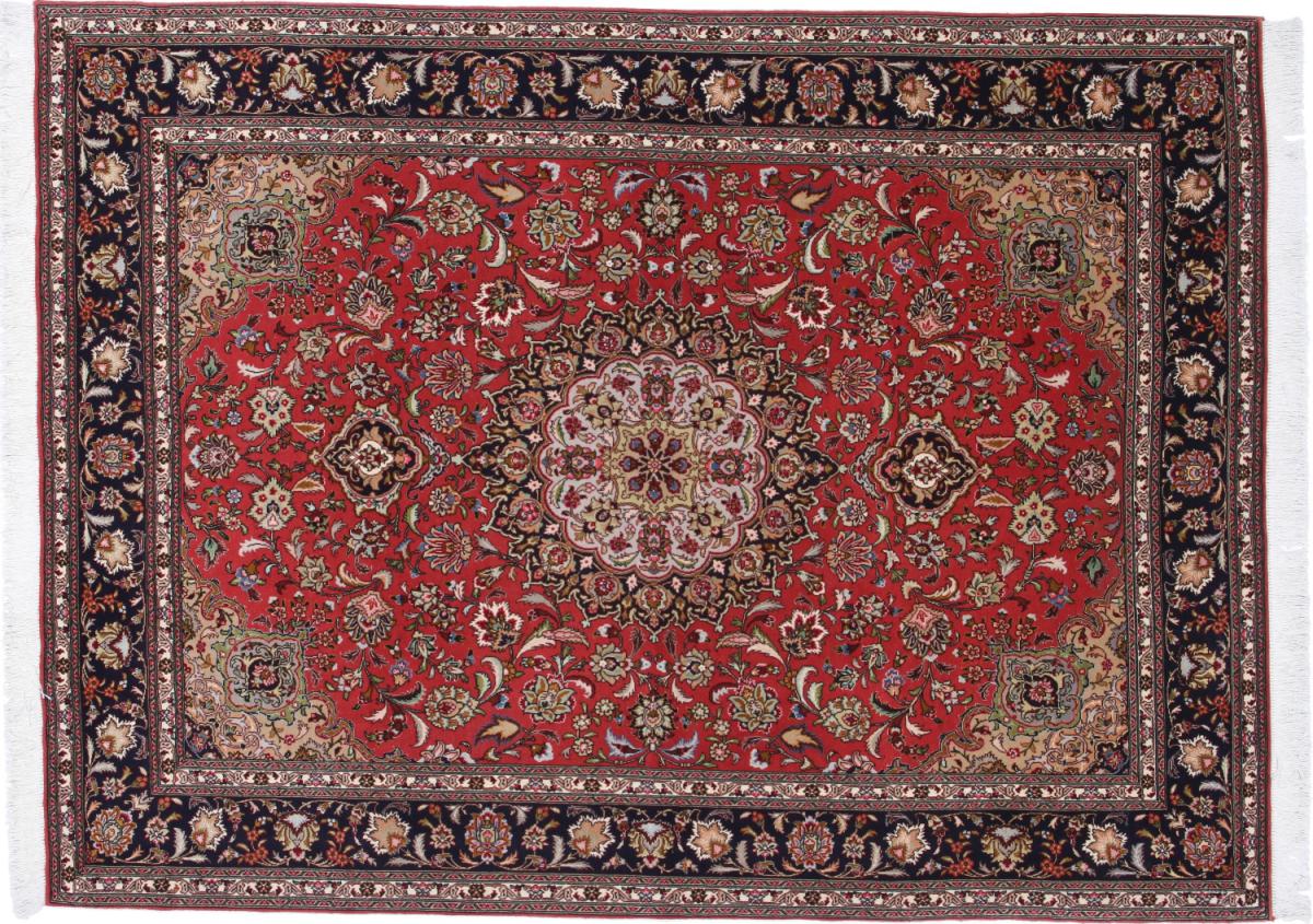 Tæppe-nr.: 41730049639 Størrelse: 212x156 cm Tykkelse: ca. 7 mm Knuder: 450 000 - 500 000 / m² Forarbejdelse: Knyttet i hånden Luv: Uld med silke Kæde: Bomuld Oprindelse: Persien / Iran Alder: Ny Vægt: ca. 10 kg Også kendt som Tabriz, Tabris, Täbris, Tebriz, Tebris, 40Raj, 50Raj Antal på lager: Unik - Kun 1 tilbage på lager