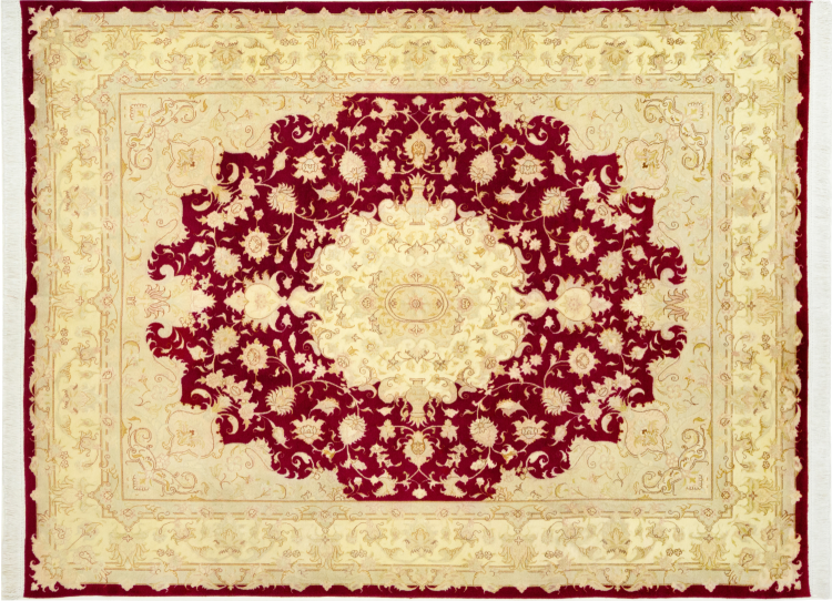 Tæppe-nr.: 30354600832775 Størrelse: 227x171 cm Tykkelse: ca. 5 mm Knuder: 440 000 - 490 000 / m² Forarbejdelse: Knyttet i hånden Luv: Korkuld med silke Kæde: Bomuld Oprindelse: Persien / Iran Alder: Ny Vægt: ca. 14 kg Også kendt som Tabriz, Tabris, Täbris, Tebriz, Tebris, 40Raj, 50Raj Antal på lager: Unik - Kun 1 tilbage på lager